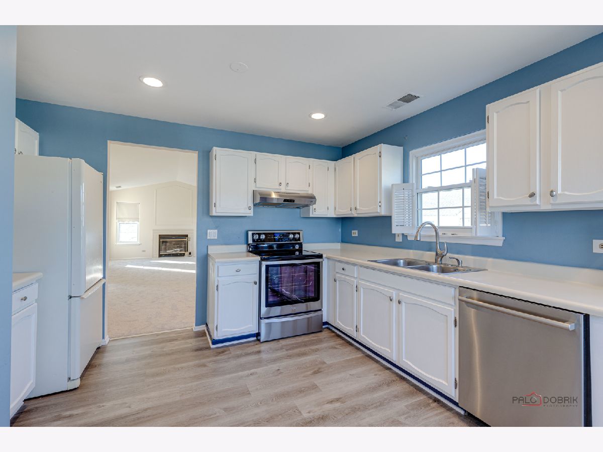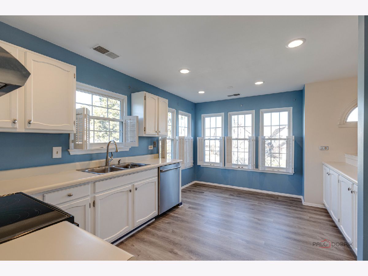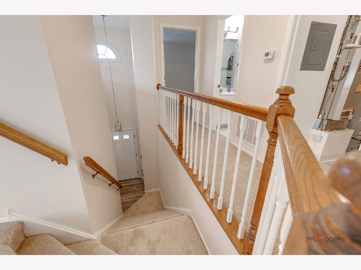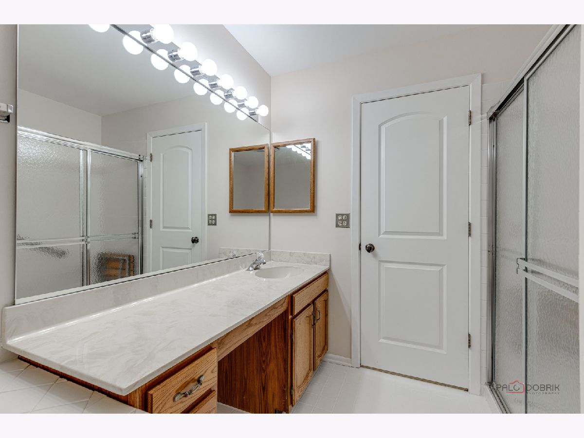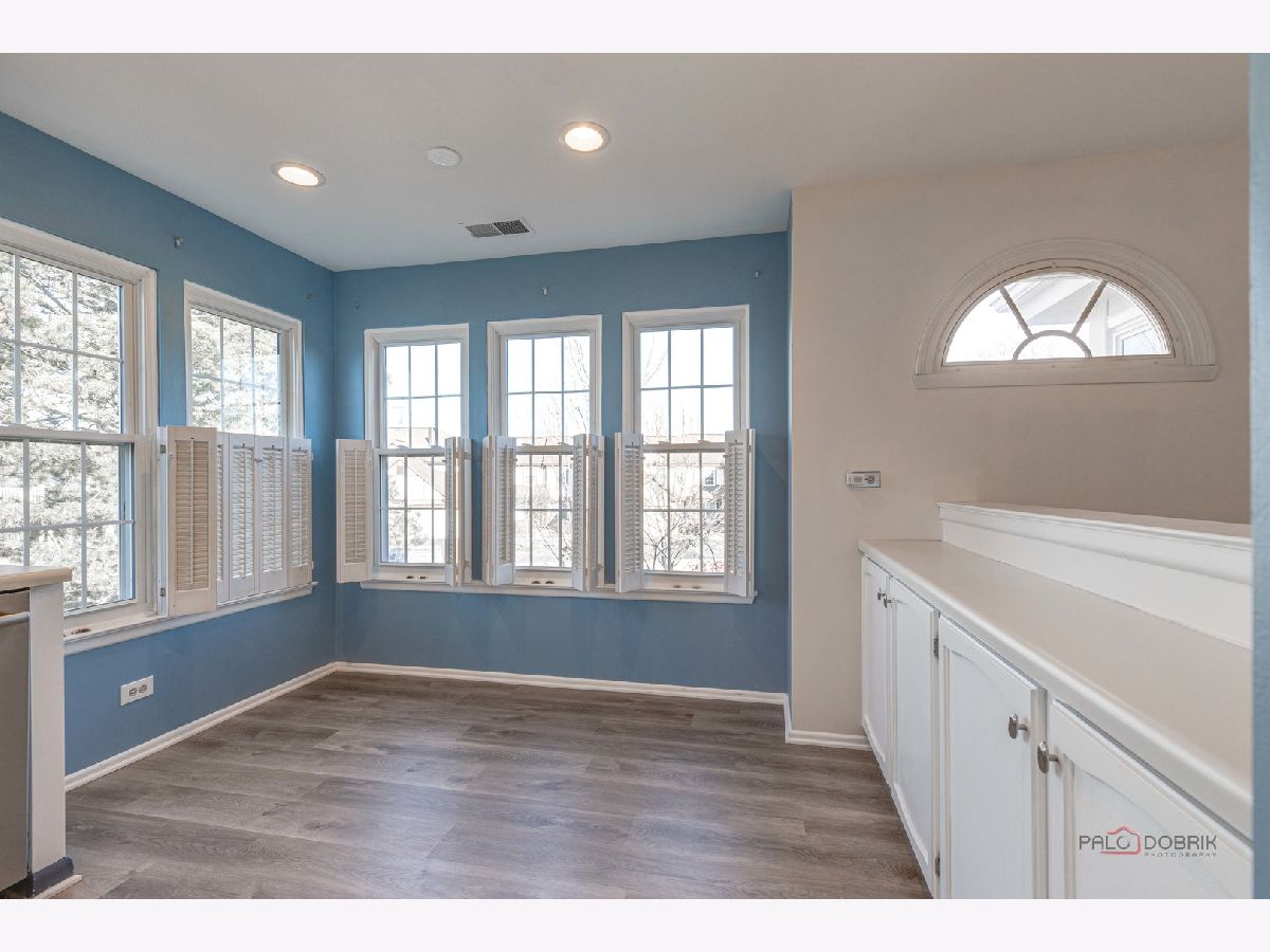Second-floor end unit ranch is fabulous with vaulted ceilings, an open floor plan, and a fireplace! A spacious primary ensuite has a walk-in closet and a luxury bath with a separate shower and soaking tub. The second bedroom has easy access to the hall bath. The den has built-in shelving and doors and is easily the third bedroom. The kitchen is updated with stainless appliances and cabinets painted. HVAC @ 6 years old and serviced every year, water heater @ 5 years, Windows installed with a lifetime warranty over 3 years from 2016 -2018. The association fee is $336/month including pool and clubhouse. New flooring and fresh paint are currently highlights! Close to schools, shopping, Metra Train, ice rink, restaurants, and parks. Lots of guest parking is available. Bus service to all award-winning schools