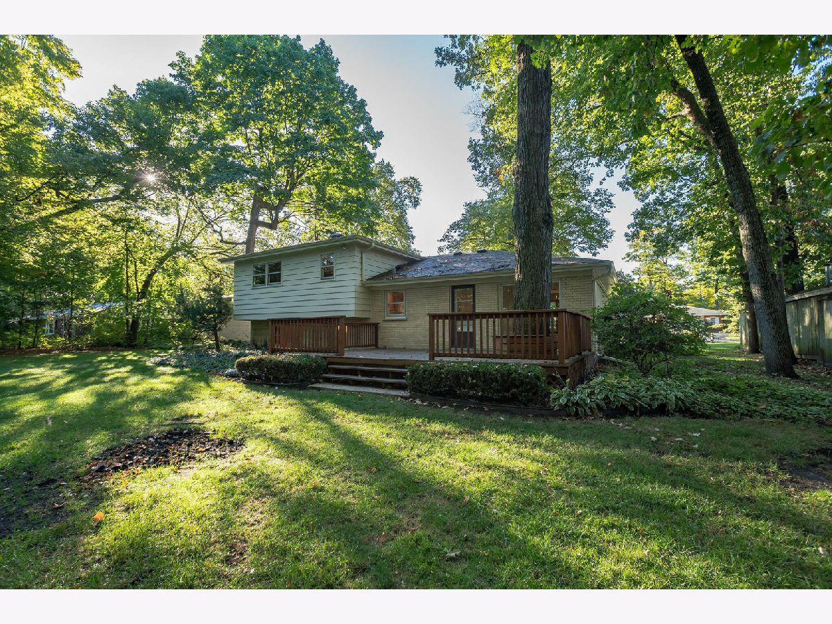 Large split-level home on a gorgeous 1/2-acre lot surrounded by mature trees in the sought after Forest Estates subdivision. Freshly painted throughout. Beautiful hardwood floors. Bright living room with big picture window overlooking the yard. Formal dining room. Eat-in kitchen with new vinyl plank floors, ceramic backsplash & pantry. Lower level features family room with stone wood burning fireplace, 4th bedroom, laundry room, 1/2 bath, storage, & crawl space. Updated full bathroom. Master bedroom with double closets, private bathroom with double sinks & walk-in shower. Backyard with large deck overlooking the beautiful yard. Deep 2 car garage. Amazing location! Minutes to Woodfield mall & restaurants. Excellent schools including award winning Fremd high school. Just move right in!