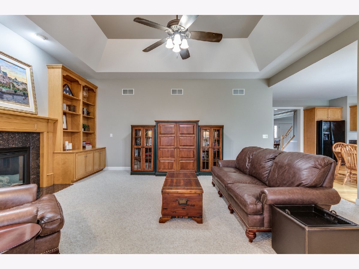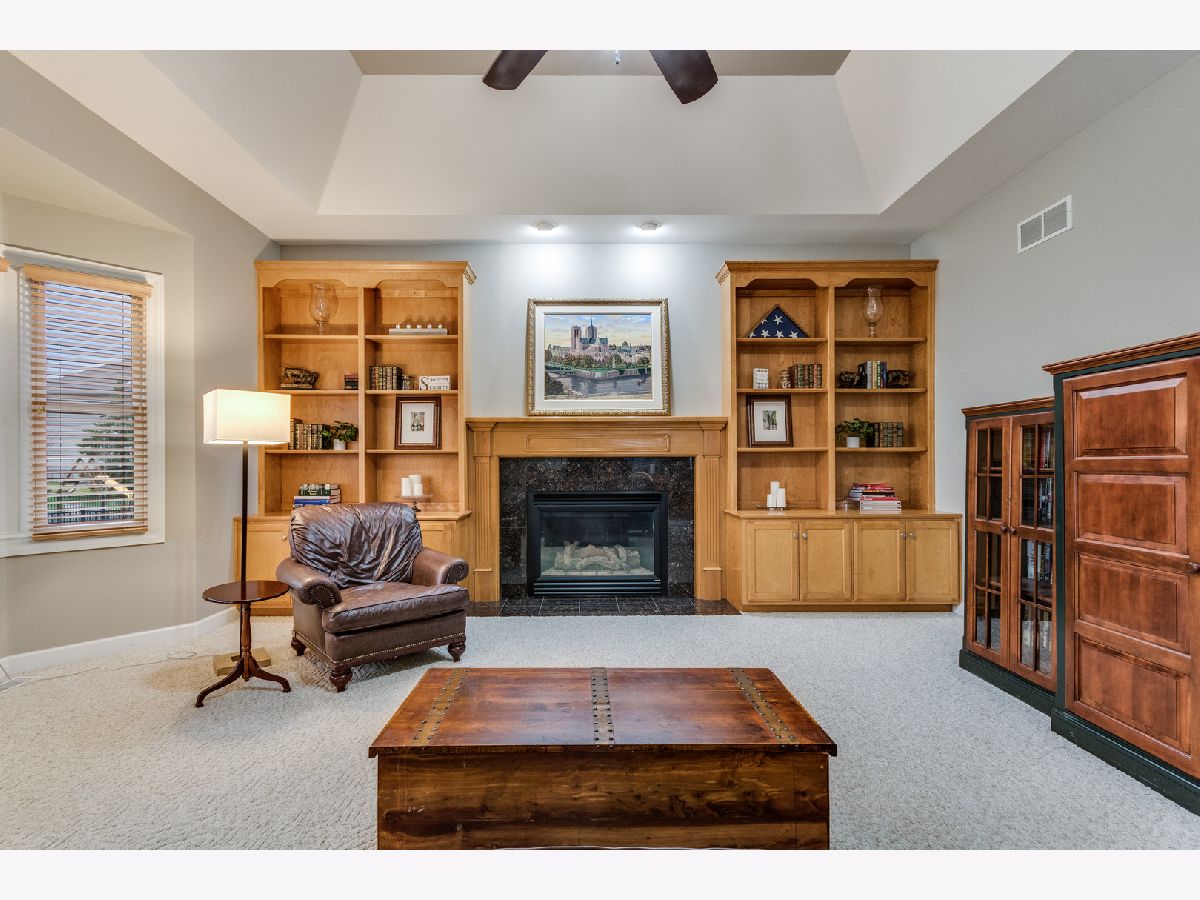 Stately brick front custom home in move ready condition! Welcoming 2 story foyer. Fresh paint, hardwood floors and 9' ceilings. Spacious eat in kitchen with island, double oven, granite and custom cabinets opens to eating area and family room beyond. Family room features tray ceiling, built in bookshelves fireplace with granite surround. 1st floor den and full bath on main level. Huge master suite with tray ceiling, sitting area and huge walk in closet with custom organization build out. Luxury master bath with dual sinks, walk in shower and separate soaking tub. Professionally finished 1600sqft full basement with maintenance free vinyl plank flooring and features a media room, wine closet, game area with wet bar, full bath and bedroom. Spacious patio in backyard. Irrigation system. Brand new roof 2020. Many newer windows. 1 year home warranty Pool and clubhouse. Come see.