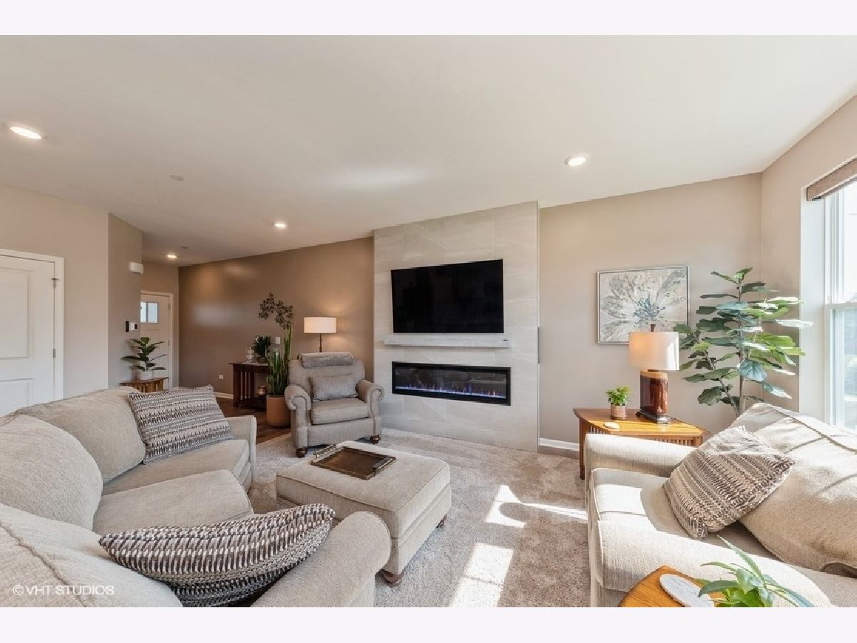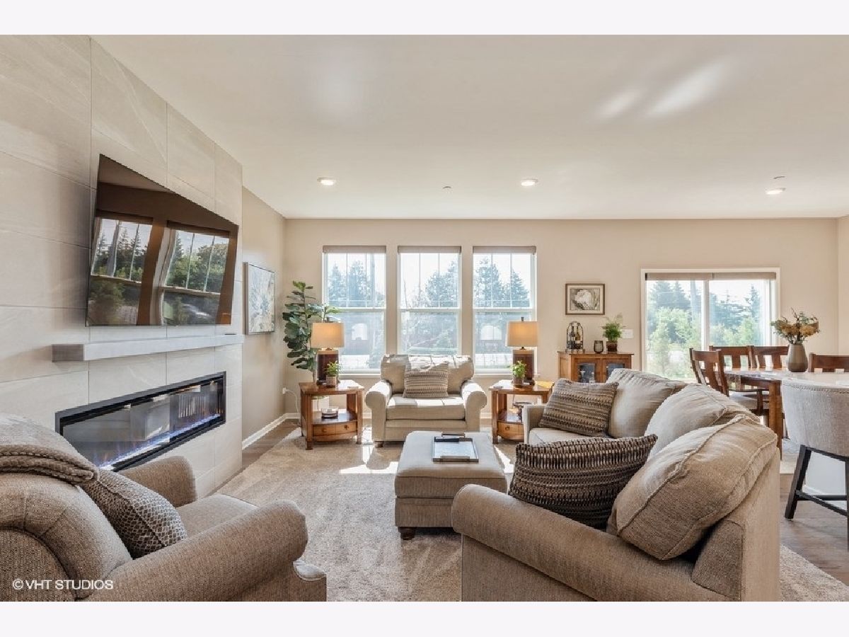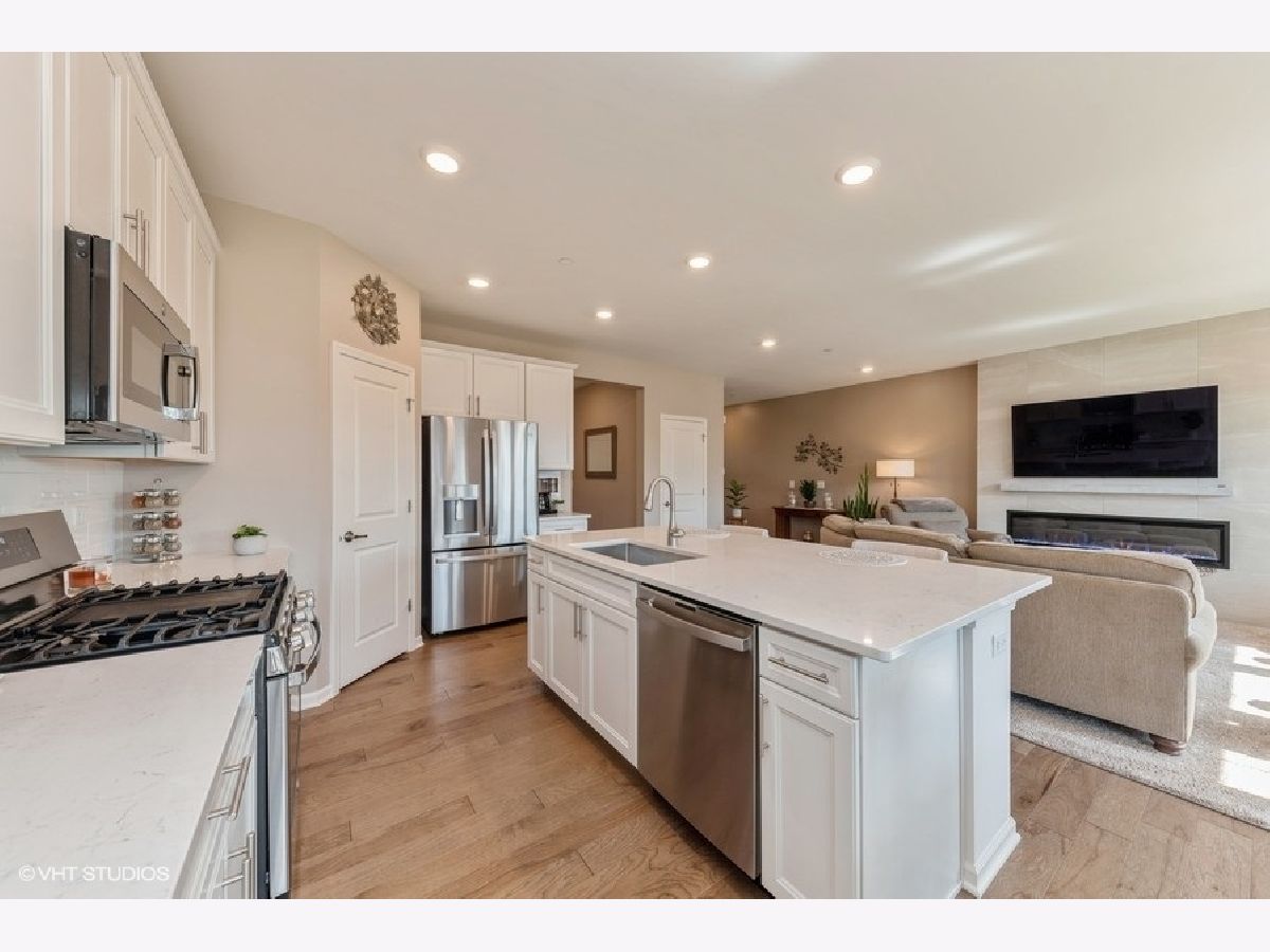 Amazing Charlotte model Smart Home in The Crossings of Mundelein! With this offering, you get the best of both worlds...a beautiful newly constructed traditional model (largest of its type), without the wait. Completely finished and ready to move in immediately, this 3 bed, 2.5 bath two-story townhome features several builder upgrades as well as others added by the current homeowners. Enter on the main level to a thoughtful open lay-out floor plan featuring a spacious living room and gourmet kitchen with large dining space. The kitchen is highlighted by 42" shaker kitchen white cabinets, stainless steel appliances and a subway tile backsplash complimenting the huge island with quartz countertops. Homeowners added a gorgeous modern fireplace in the living room, already laden with a stunning with French Oak luxury vinyl flooring and automated window blinds. Upstairs you'll find the primary bedroom with walk-in closet and sleek ensuite with walk-in shower. Also located upstairs are two additional large bedrooms and the conveniently located laundry room. This unit also has a huge unfinished basement for storage or ready to be finished for loads of additional living space. Exterior back patio can be extended further and can be bordered by landscaping for privacy. The Crossings of Mundelein is built by Lennar and conveniently located near shopping, dining, entertainment and schools. This home is truly a gem!