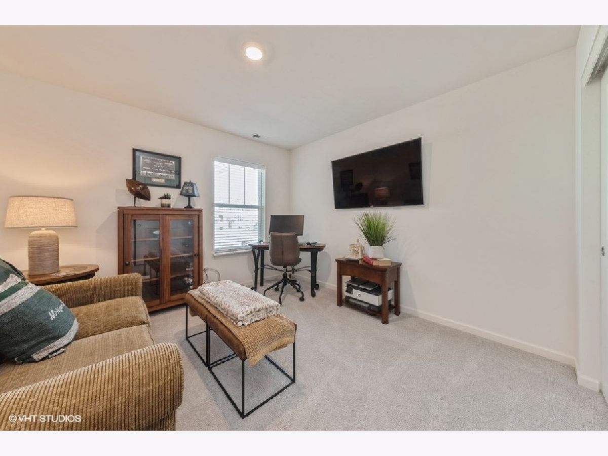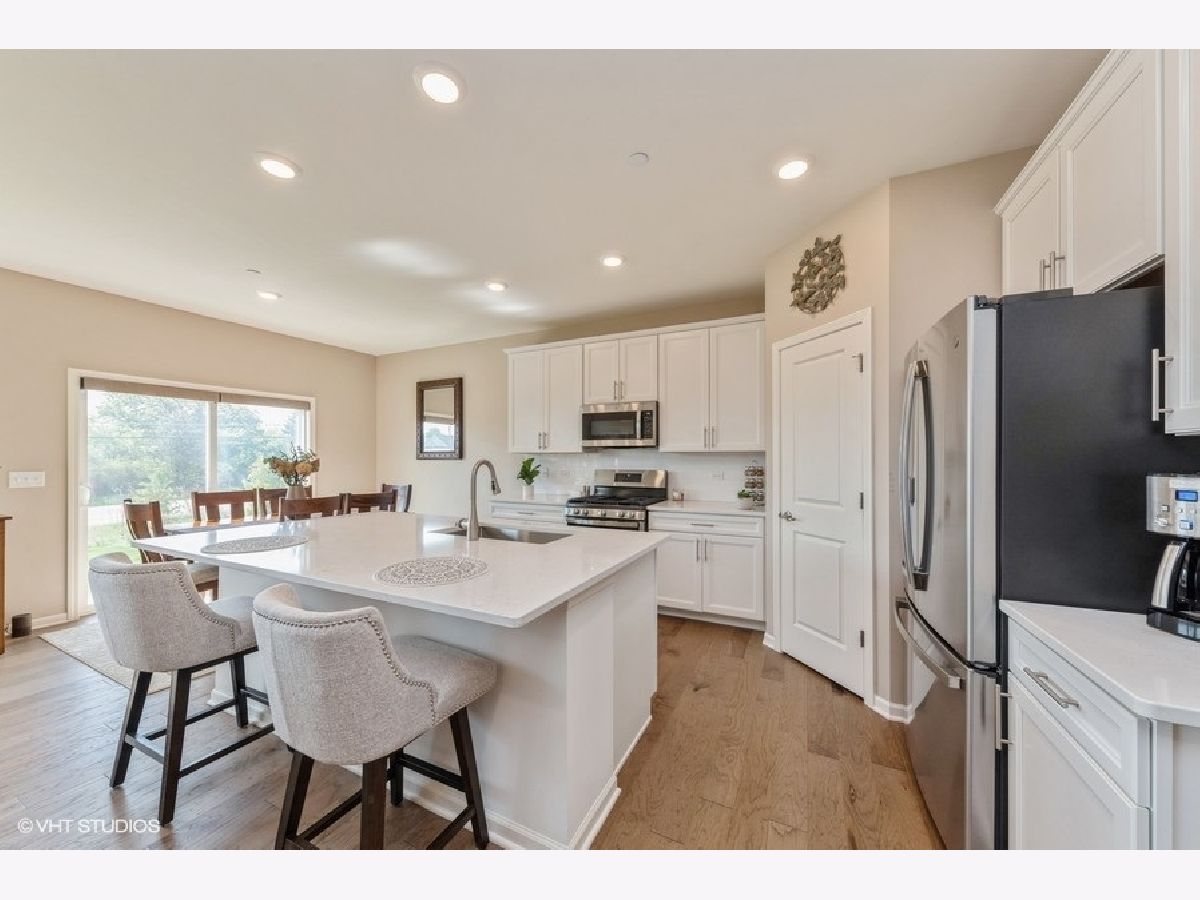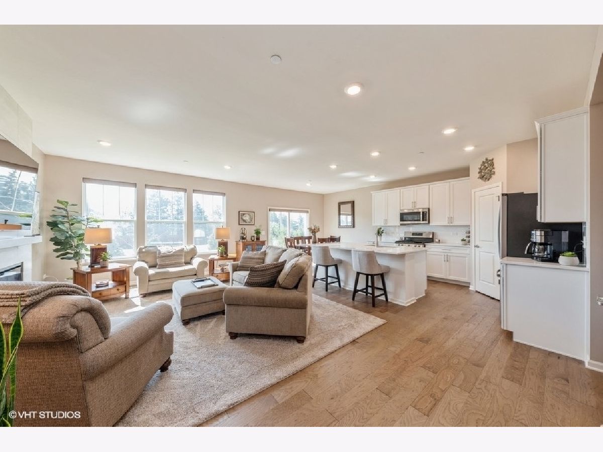 Amazing Charlotte model Smart Home in The Crossings of Mundelein! With this offering, you get the best of both worlds...a beautiful newly constructed traditional model (largest of its type), without the wait. Completely finished and ready to move in immediately, this 3 bed, 2.5 bath two-story townhome features several builder upgrades as well as others added by the current homeowners. Enter on the main level to a thoughtful open lay-out floor plan featuring a spacious living room and gourmet kitchen with large dining space. The kitchen is highlighted by 42" shaker kitchen white cabinets, stainless steel appliances and a subway tile backsplash complimenting the huge island with quartz countertops. Homeowners added a gorgeous modern fireplace in the living room, already laden with a stunning with French Oak luxury vinyl flooring and automated window blinds. Upstairs you'll find the primary bedroom with walk-in closet and sleek ensuite with walk-in shower. Also located upstairs are two additional large bedrooms and the conveniently located laundry room. This unit also has a huge unfinished basement for storage or ready to be finished for loads of additional living space. Exterior back patio can be extended further and can be bordered by landscaping for privacy. The Crossings of Mundelein is built by Lennar and conveniently located near shopping, dining, entertainment and schools. This home is truly a gem!