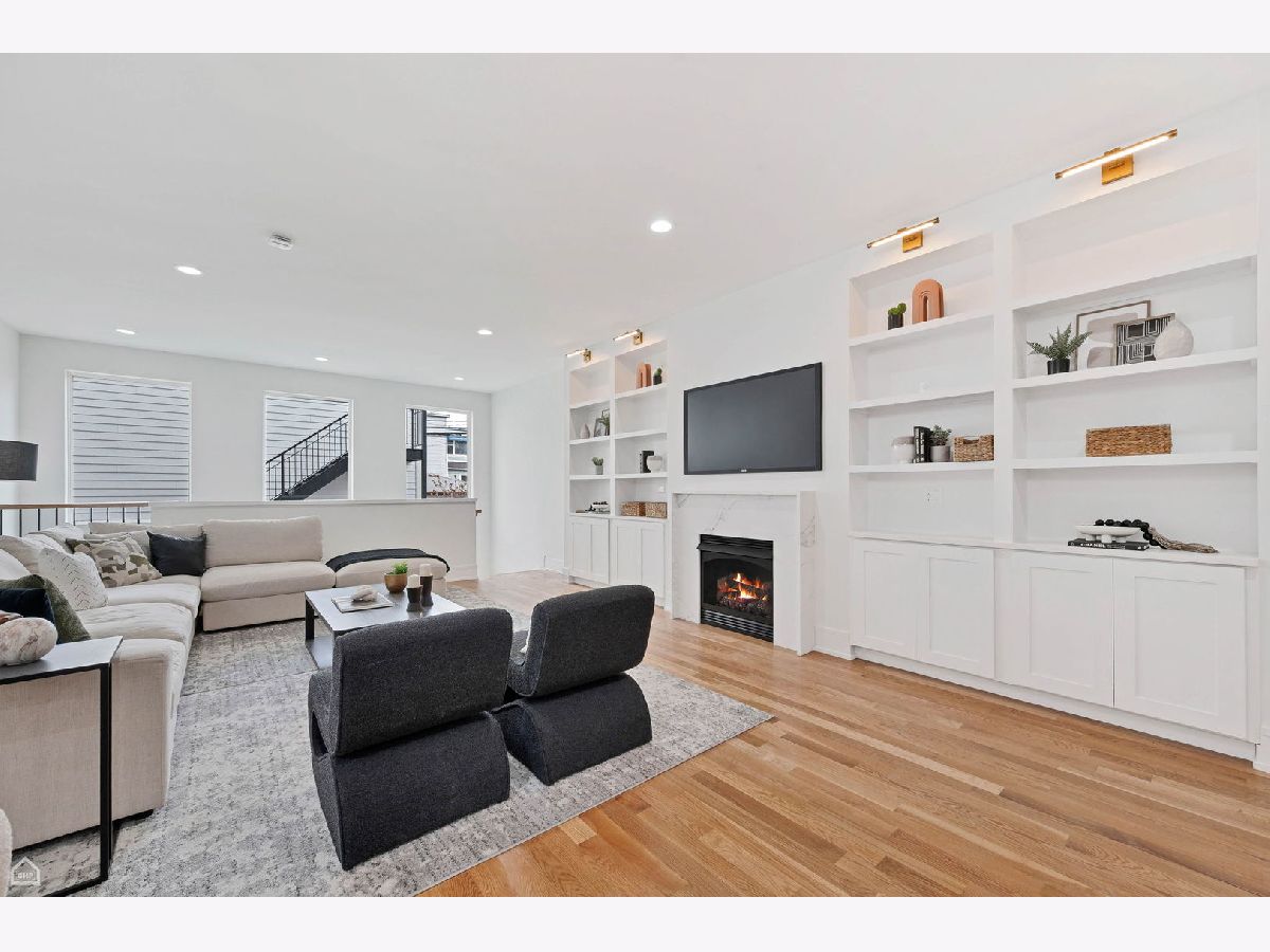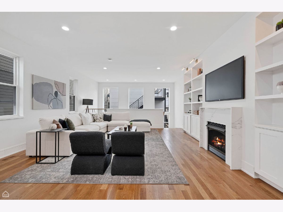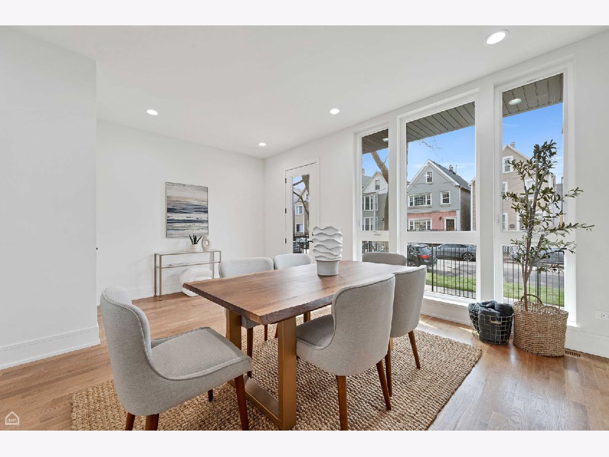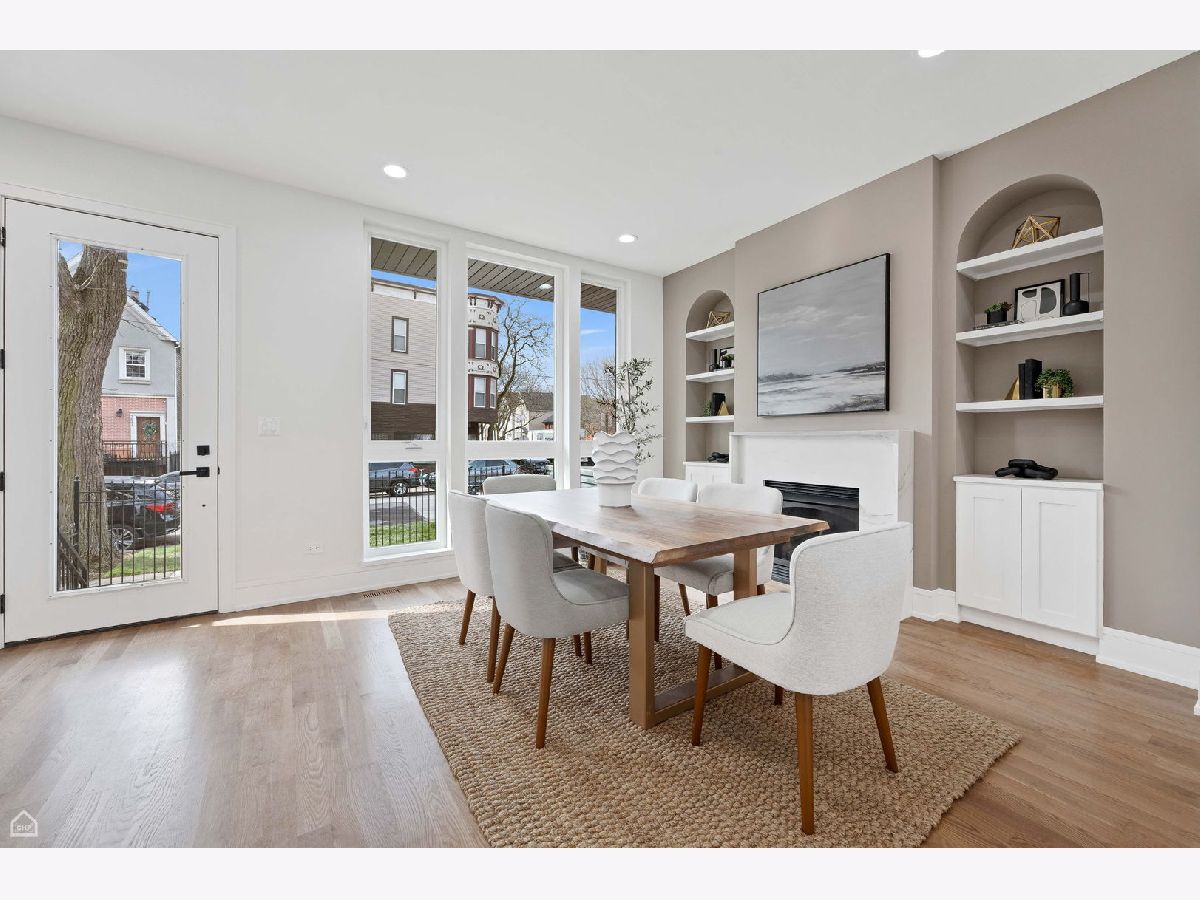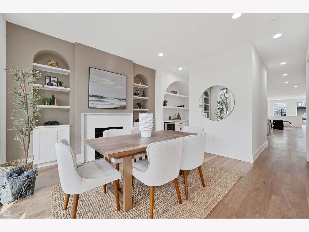 Experience the perfect blend of modern design and classic details in this fully renovated 6 bedroom, 3.1 bathroom single family home, ideally located on a tree lined street in Bucktown. The main level features soaring ceilings, white oak hardwood floors, and custom millwork. A gas fireplace with a sleek quartz surround and arched built-ins anchors the dining area, while oversized windows fill the space with natural light. The chef's kitchen is outfitted with double stacked custom cabinetry, a wood wrapped hood, high end appliances, and a 5-foot wide waterfall island. It opens to a spacious living area with a built-in entertainment center and a second fireplace. Upstairs, the primary suite impresses with vaulted ceilings, a large dressing room, and a spa-like bath with floor-to-ceiling Calacatta marble, soaking tub, rain shower, and double vanity. Three additional bedrooms and a full laundry room with custom cabinetry complete the level. The fully finished lower level offers endless possibilities with tall ceilings, a spacious recreation room featuring a stylish wet bar with quartz countertops and a wine fridge. Two additional bedrooms and a full bathroom make this level perfect for guests, a home office, or a workout space. Outdoor living is just as inviting, with a private garage rooftop deck and pergola perfect for entertaining. A mudroom off the back entrance and a 2 car garage add functionality, while dual zone HVAC ensures year round comfort. Located just minutes from Bucktown's top restaurants, shopping, and public transit, this home delivers an unbeatable combination of luxury and convenience. Don't miss the opportunity to make it yours!