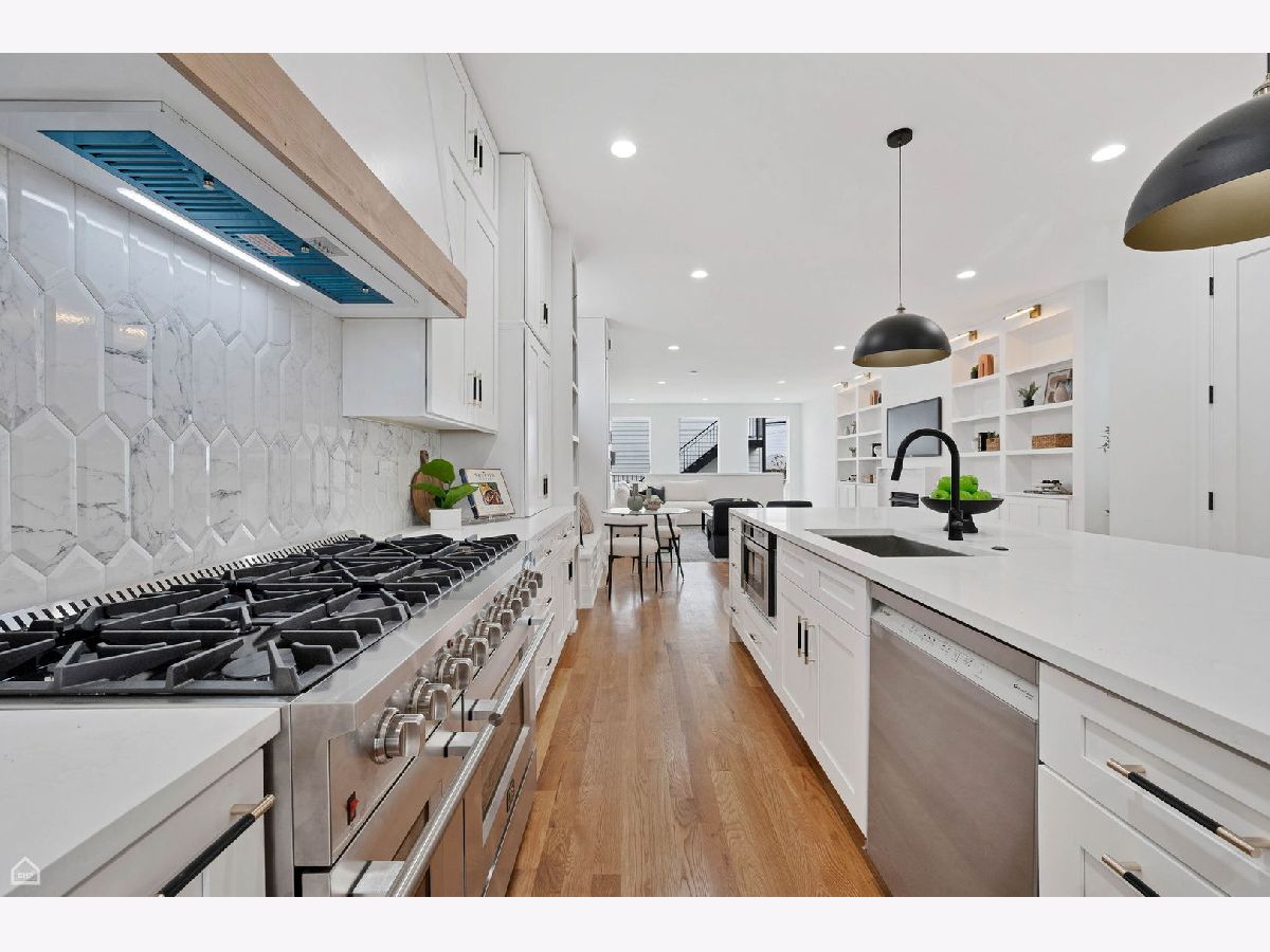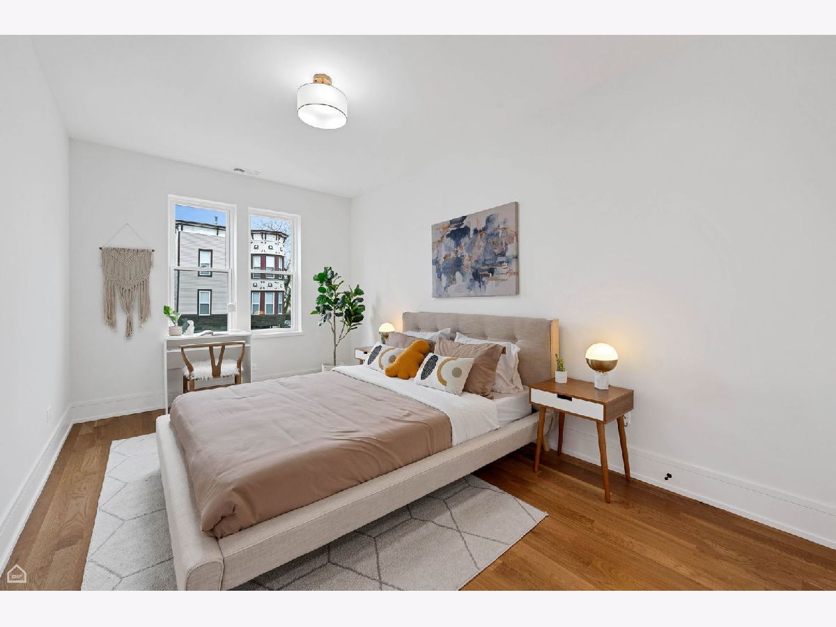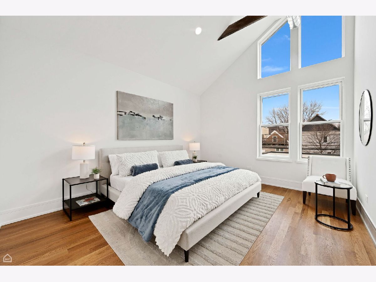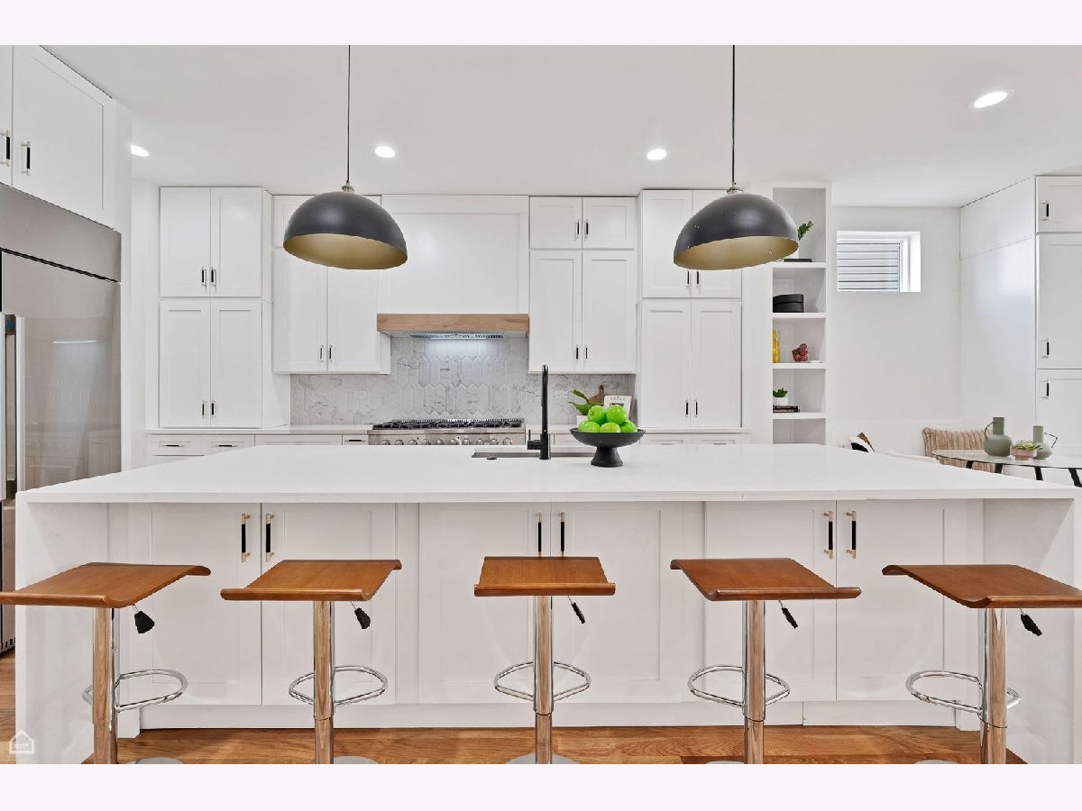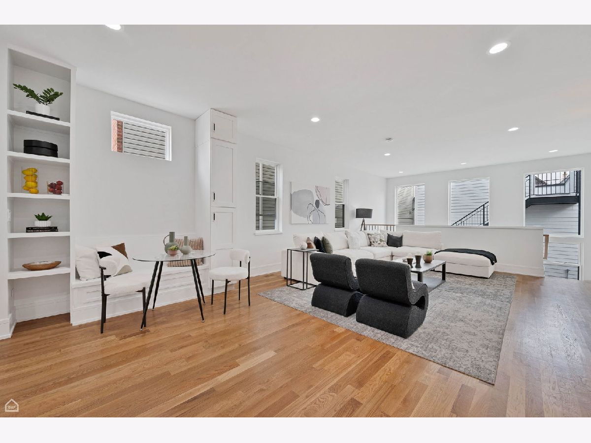 Experience the perfect blend of modern design and classic details in this fully renovated 6 bedroom, 3.1 bathroom single family home, ideally located on a tree lined street in Bucktown. The main level features soaring ceilings, white oak hardwood floors, and custom millwork. A gas fireplace with a sleek quartz surround and arched built-ins anchors the dining area, while oversized windows fill the space with natural light. The chef's kitchen is outfitted with double stacked custom cabinetry, a wood wrapped hood, high end appliances, and a 5-foot wide waterfall island. It opens to a spacious living area with a built-in entertainment center and a second fireplace. Upstairs, the primary suite impresses with vaulted ceilings, a large dressing room, and a spa-like bath with floor-to-ceiling Calacatta marble, soaking tub, rain shower, and double vanity. Three additional bedrooms and a full laundry room with custom cabinetry complete the level. The fully finished lower level offers endless possibilities with tall ceilings, a spacious recreation room featuring a stylish wet bar with quartz countertops and a wine fridge. Two additional bedrooms and a full bathroom make this level perfect for guests, a home office, or a workout space. Outdoor living is just as inviting, with a private garage rooftop deck and pergola perfect for entertaining. A mudroom off the back entrance and a 2 car garage add functionality, while dual zone HVAC ensures year round comfort. Located just minutes from Bucktown's top restaurants, shopping, and public transit, this home delivers an unbeatable combination of luxury and convenience. Don't miss the opportunity to make it yours!
