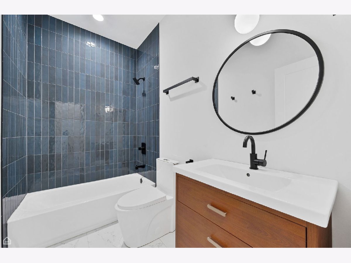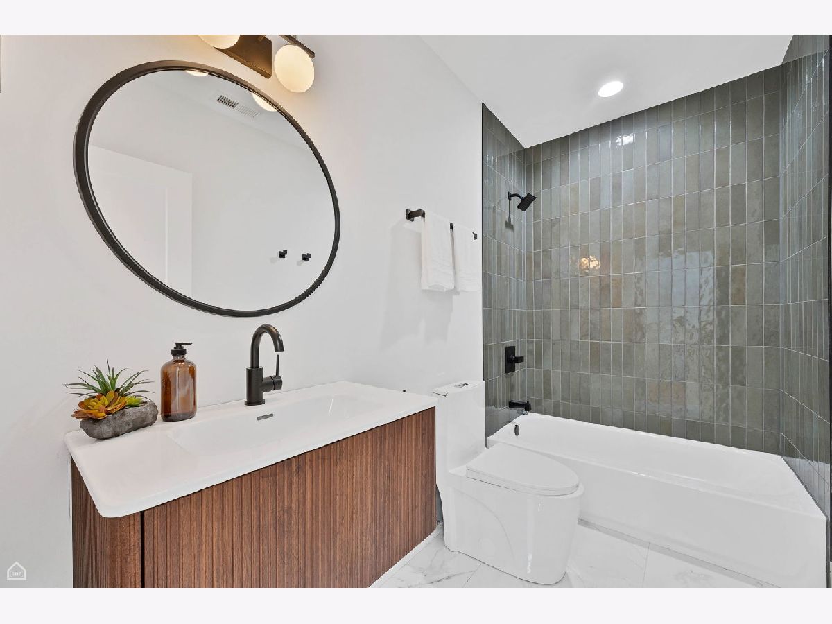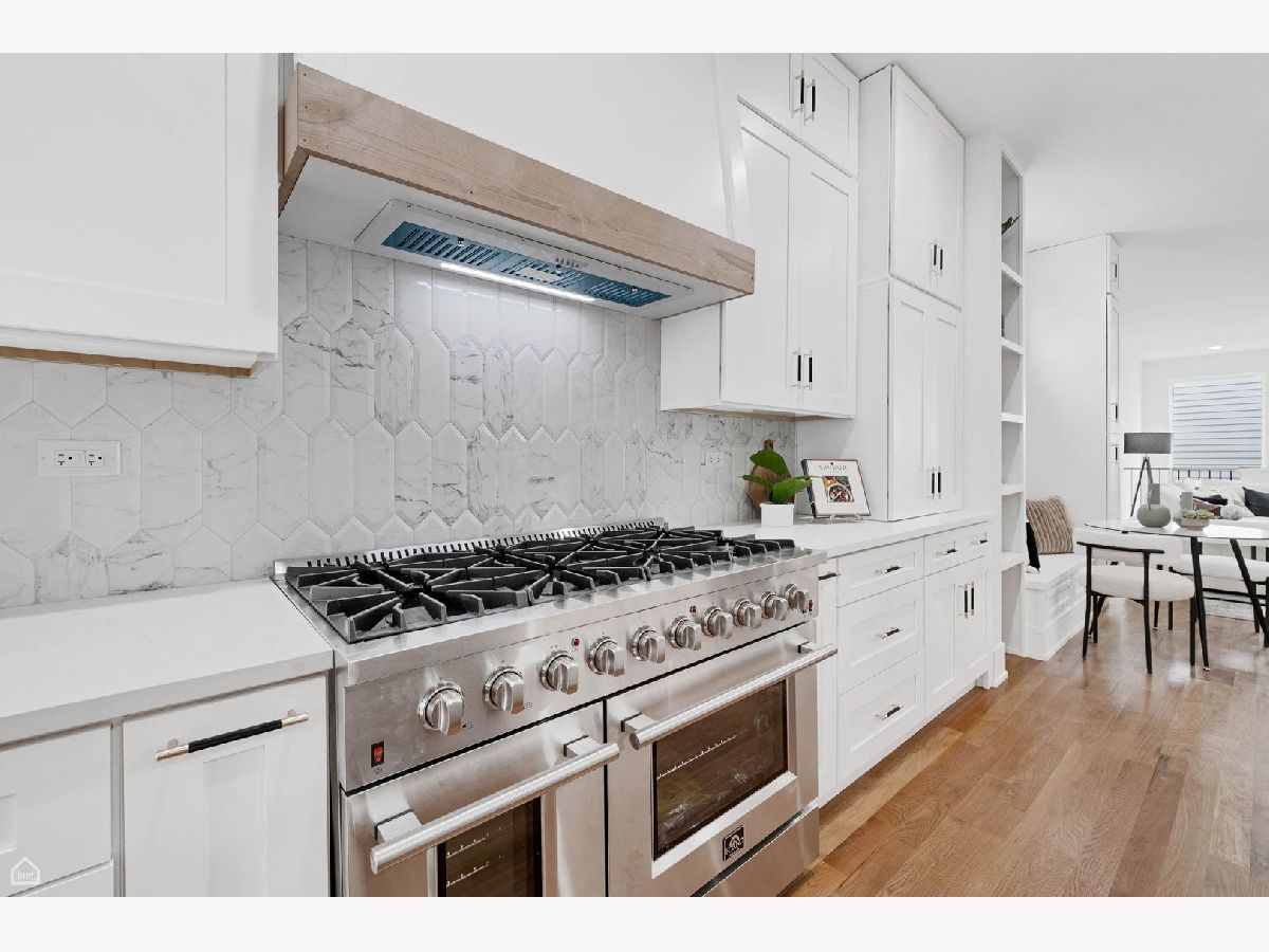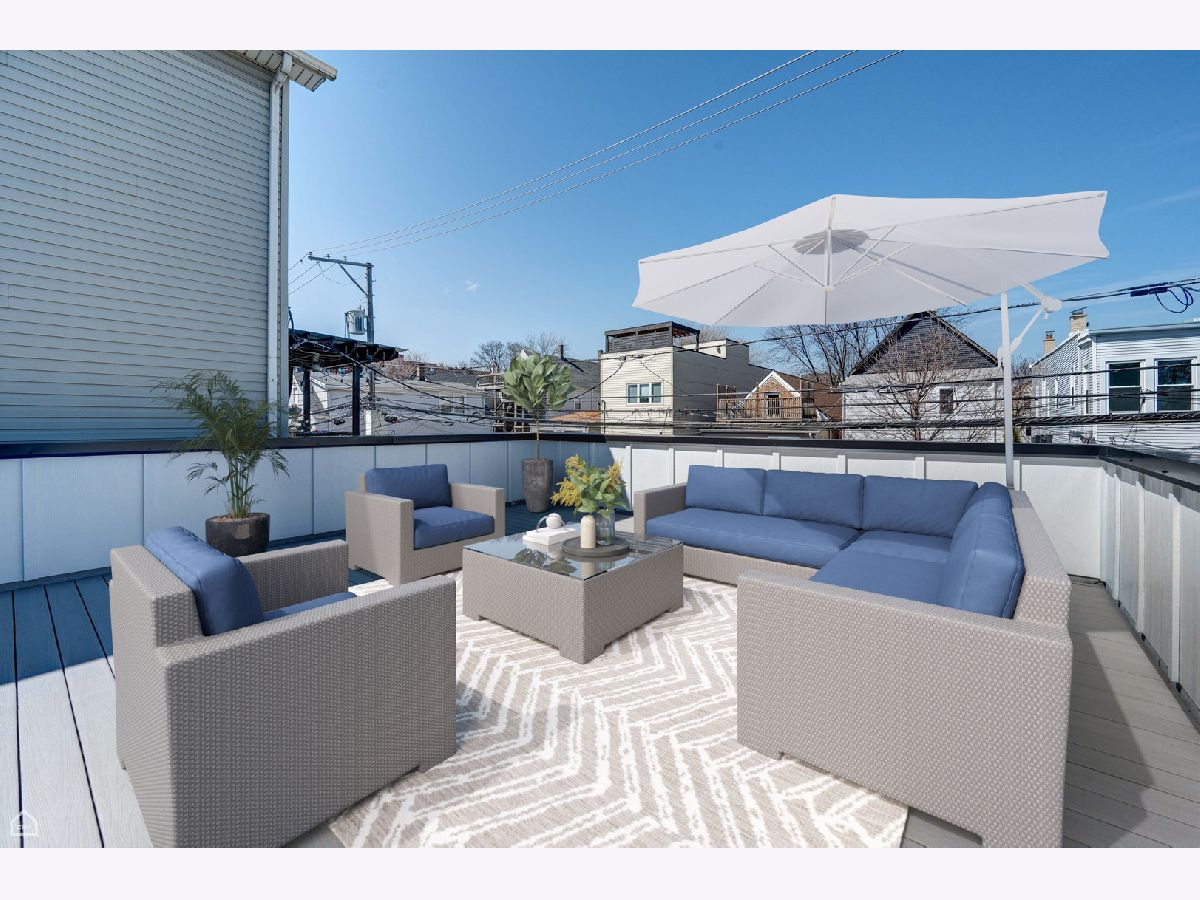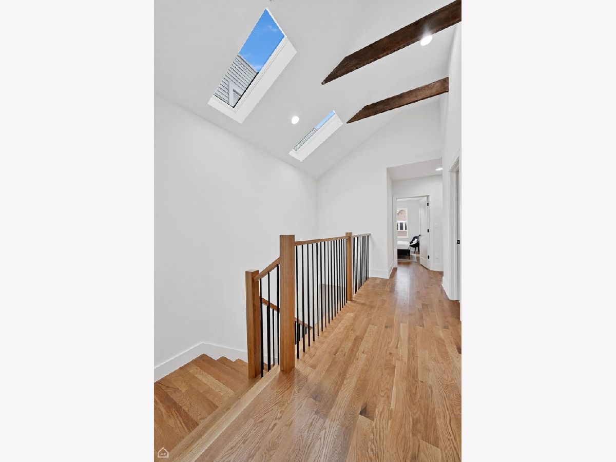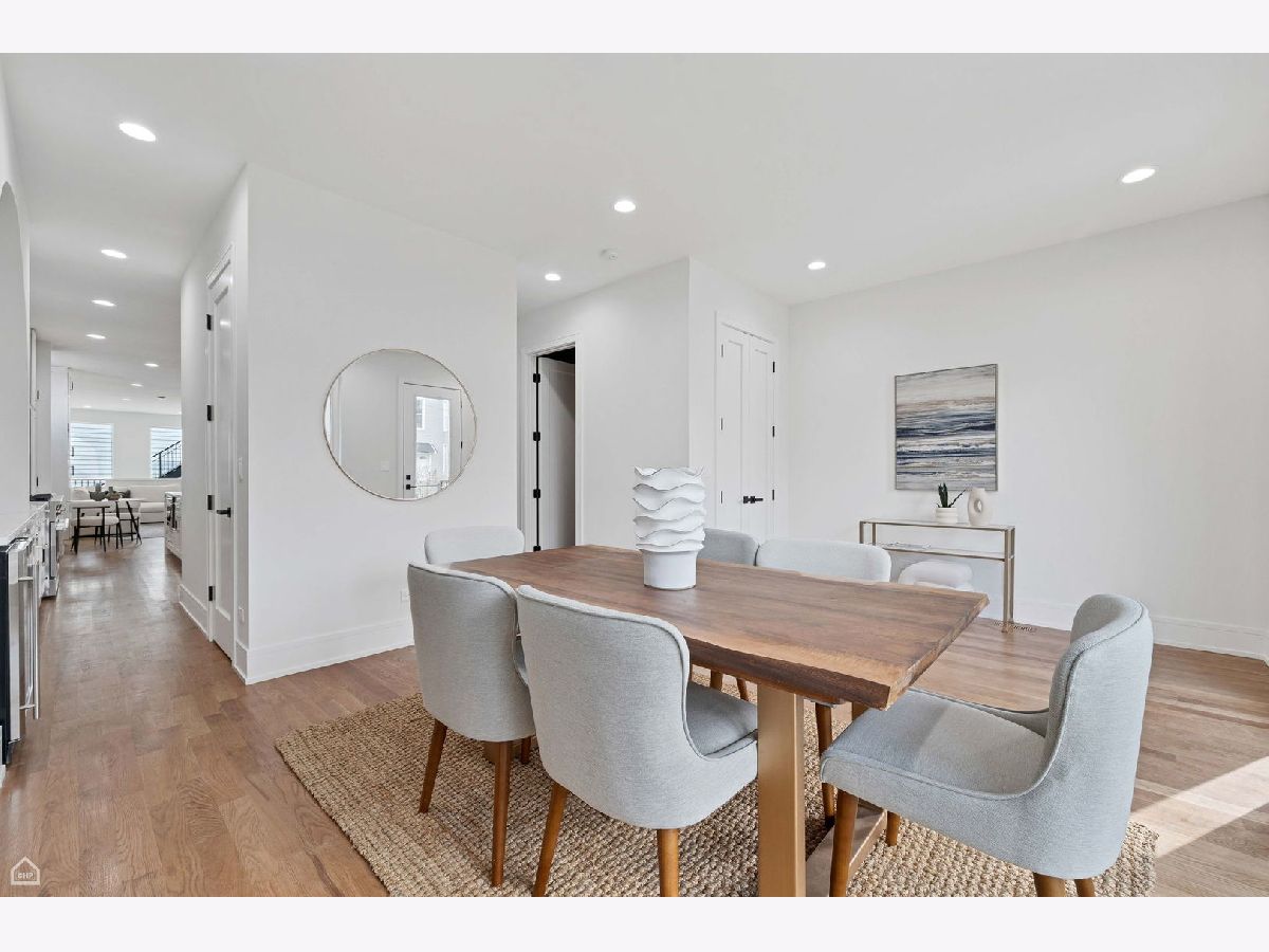 Experience the perfect blend of modern design and classic details in this fully renovated 6 bedroom, 3.1 bathroom single family home, ideally located on a tree lined street in Bucktown. The main level features soaring ceilings, white oak hardwood floors, and custom millwork. A gas fireplace with a sleek quartz surround and arched built-ins anchors the dining area, while oversized windows fill the space with natural light. The chef's kitchen is outfitted with double stacked custom cabinetry, a wood wrapped hood, high end appliances, and a 5-foot wide waterfall island. It opens to a spacious living area with a built-in entertainment center and a second fireplace. Upstairs, the primary suite impresses with vaulted ceilings, a large dressing room, and a spa-like bath with floor-to-ceiling Calacatta marble, soaking tub, rain shower, and double vanity. Three additional bedrooms and a full laundry room with custom cabinetry complete the level. The fully finished lower level offers endless possibilities with tall ceilings, a spacious recreation room featuring a stylish wet bar with quartz countertops and a wine fridge. Two additional bedrooms and a full bathroom make this level perfect for guests, a home office, or a workout space. Outdoor living is just as inviting, with a private garage rooftop deck and pergola perfect for entertaining. A mudroom off the back entrance and a 2 car garage add functionality, while dual zone HVAC ensures year round comfort. Located just minutes from Bucktown's top restaurants, shopping, and public transit, this home delivers an unbeatable combination of luxury and convenience. Don't miss the opportunity to make it yours!