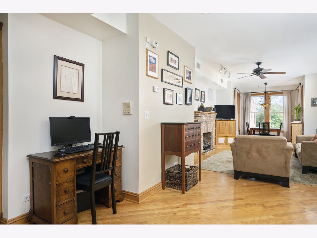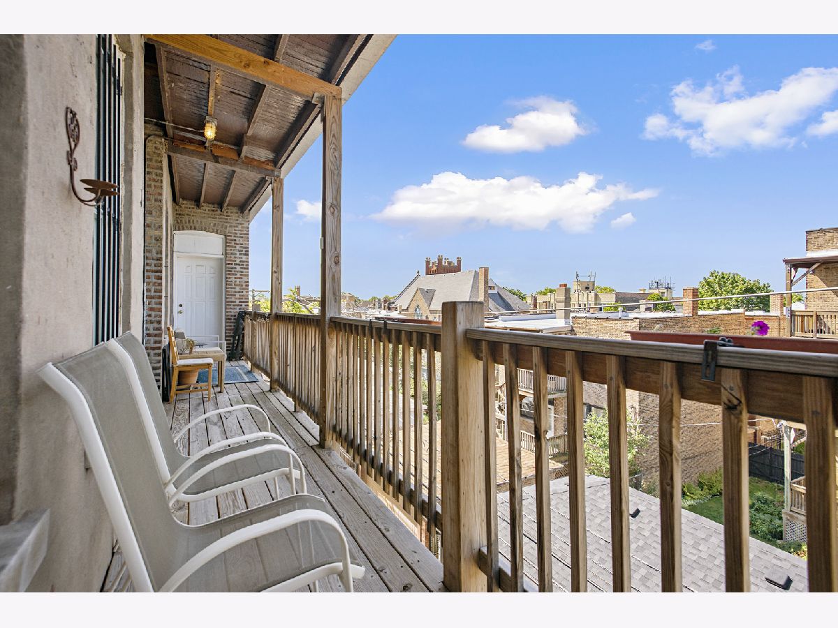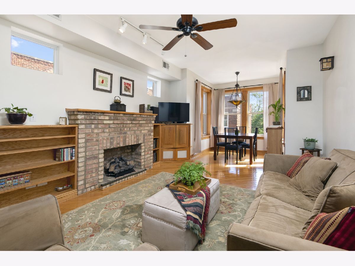 Fantastic value for a charming 2 bedroom 1 bathroom penthouse condo in an amazing walk to it all location in Logan Square! This quiet well maintained courtyard building with low HOA fees is in the heart of it all, but on a quiet tree lined peaceful street. This top floor condo is flooded with sunlight due to eastern, western and northern exposures. The front sun room lets in a ton of sunlight and makes a great formal dining room or office area and opens to a large living room with gas fireplace along with built-ins on both sides of the fireplace. The open concept kitchen living area is perfect for entertaining and has a great little office nook between the kitchen and living area. The large kitchen has stainless steel appliances and tons of windows and is next to both a laundry closet with stackable washer/dryer as well as a pantry. The spacious primary bedroom has ample closet space and leads to the private balcony. The second bedroom easily fits a queen sized bed and overlooks the quiet courtyard. Central AC. Private balcony off the kitchen and master bedroom. Very large storage closet in the basement. Walk to the blue line, Milwaukee Ave, Unity Park, great shops, restaurants and all things Logan.
