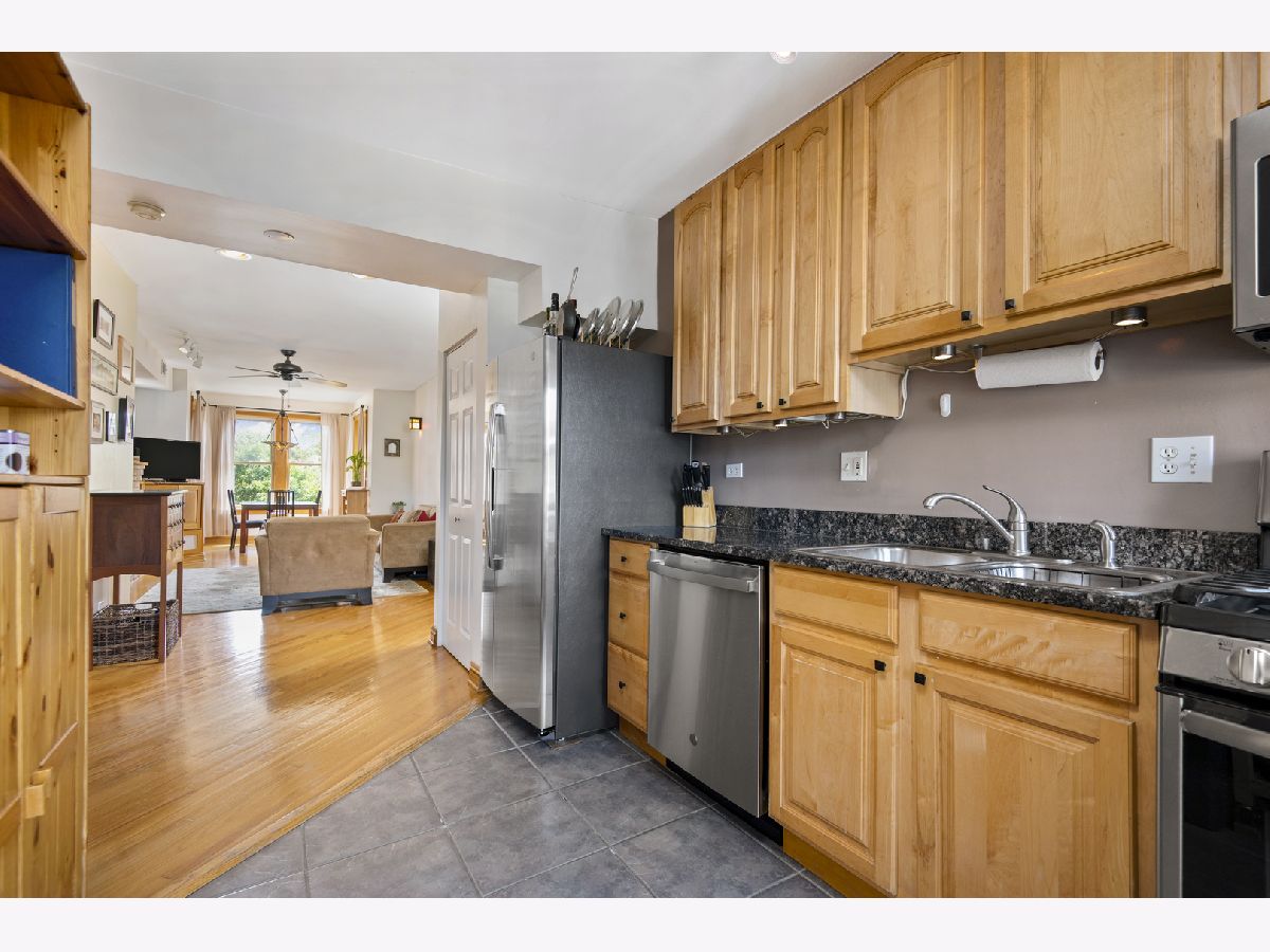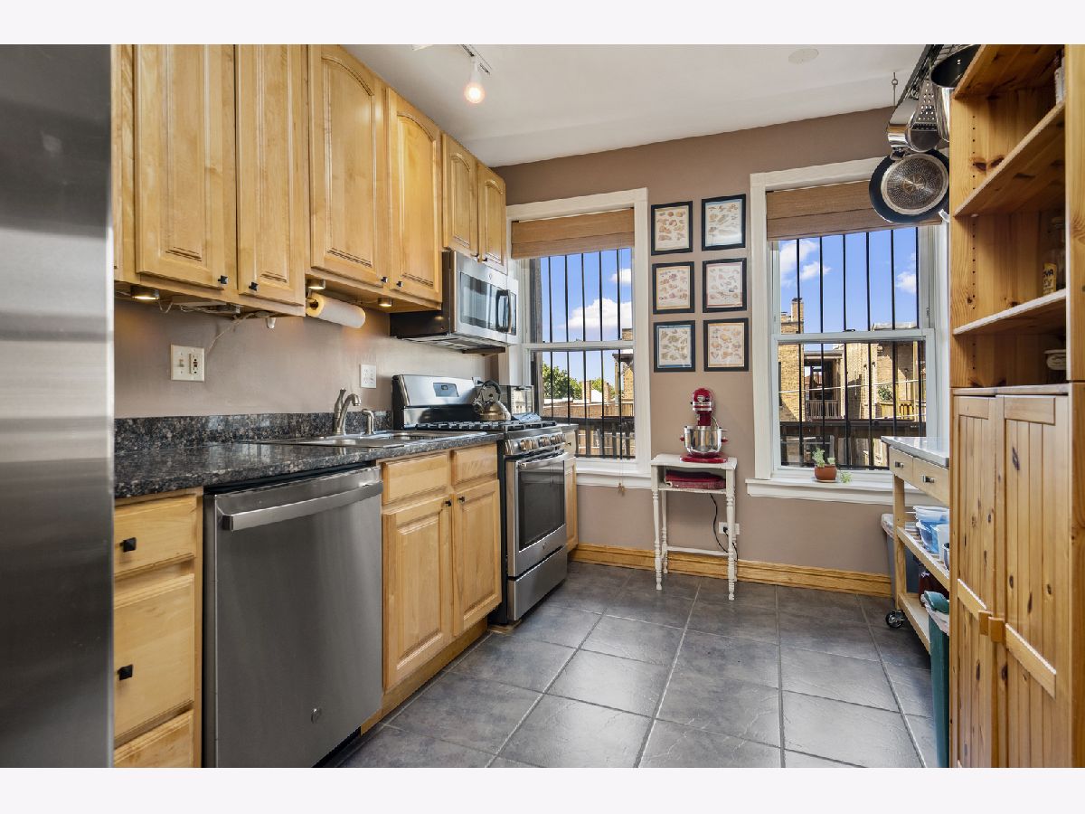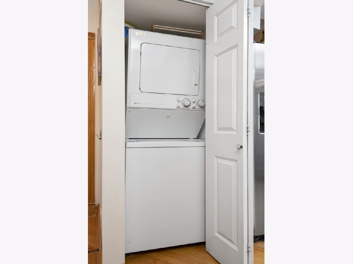 Fantastic value for a charming 2 bedroom 1 bathroom penthouse condo in an amazing walk to it all location in Logan Square! This quiet well maintained courtyard building with low HOA fees is in the heart of it all, but on a quiet tree lined peaceful street. This top floor condo is flooded with sunlight due to eastern, western and northern exposures. The front sun room lets in a ton of sunlight and makes a great formal dining room or office area and opens to a large living room with gas fireplace along with built-ins on both sides of the fireplace. The open concept kitchen living area is perfect for entertaining and has a great little office nook between the kitchen and living area. The large kitchen has stainless steel appliances and tons of windows and is next to both a laundry closet with stackable washer/dryer as well as a pantry. The spacious primary bedroom has ample closet space and leads to the private balcony. The second bedroom easily fits a queen sized bed and overlooks the quiet courtyard. Central AC. Private balcony off the kitchen and master bedroom. Very large storage closet in the basement. Walk to the blue line, Milwaukee Ave, Unity Park, great shops, restaurants and all things Logan.