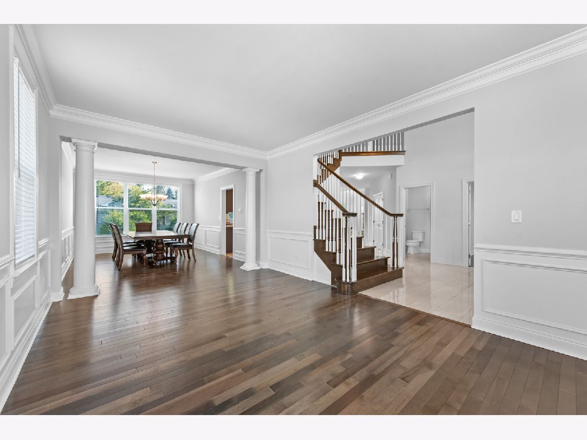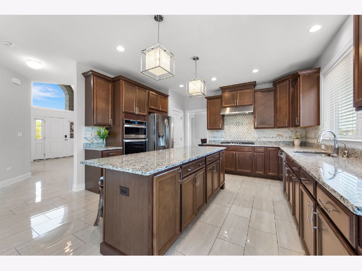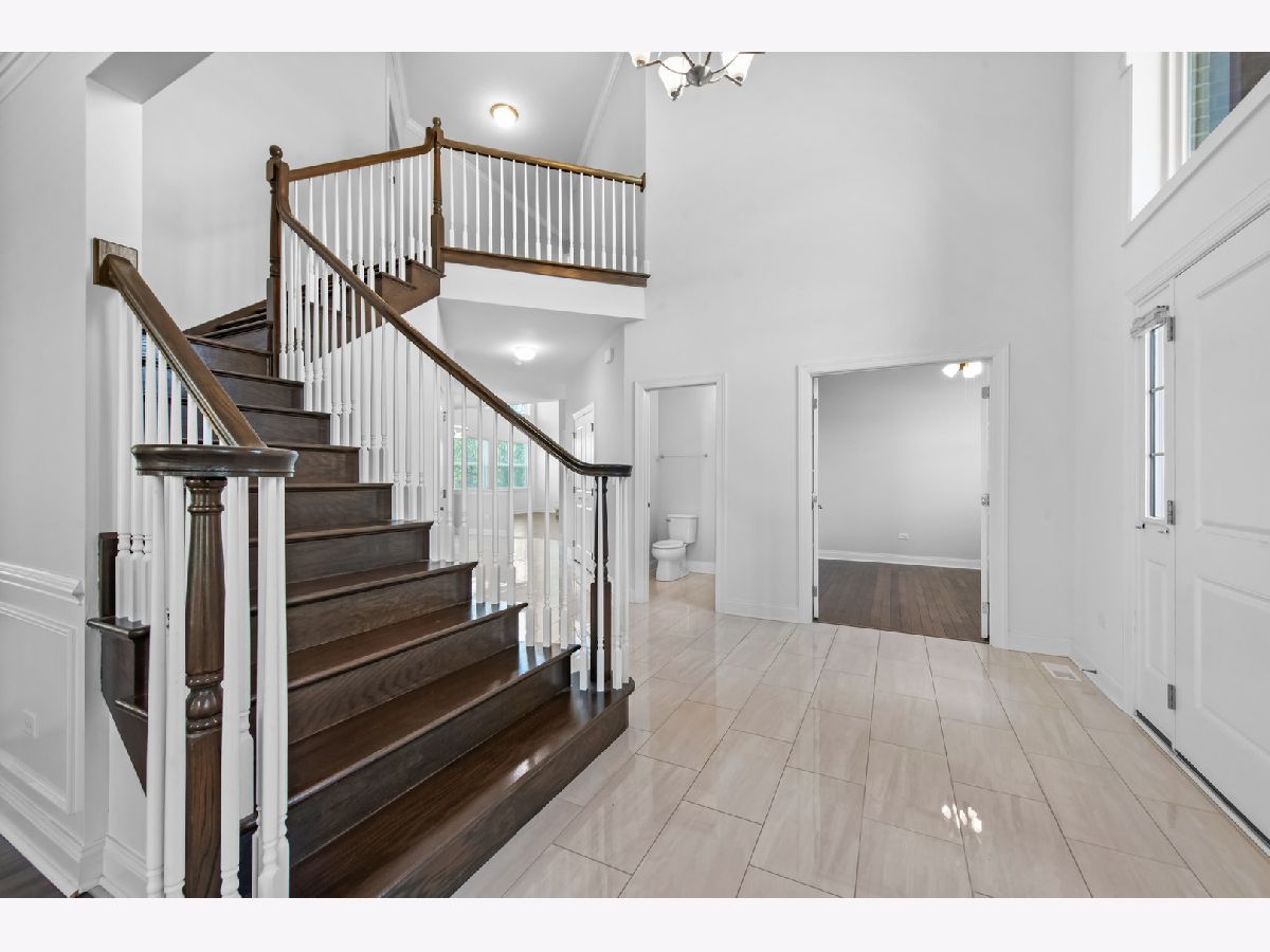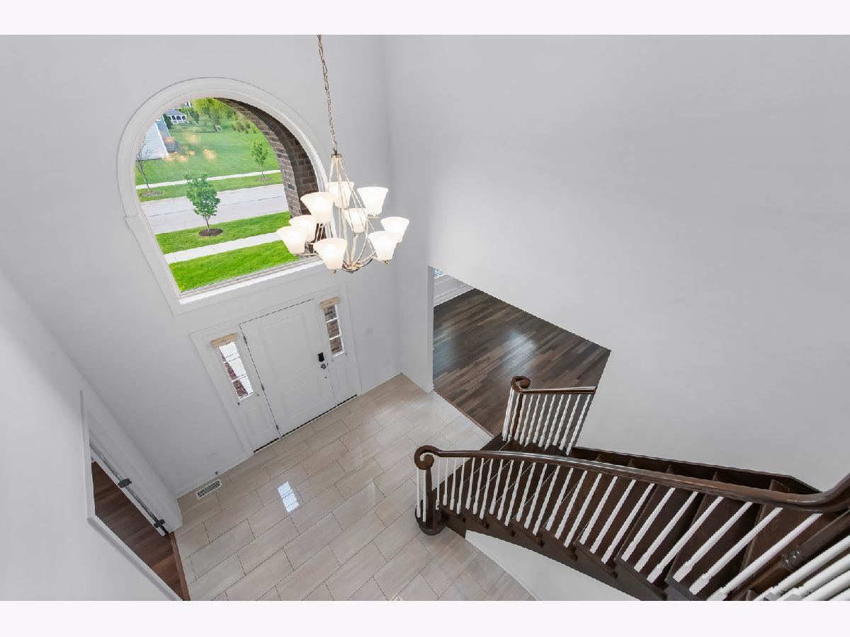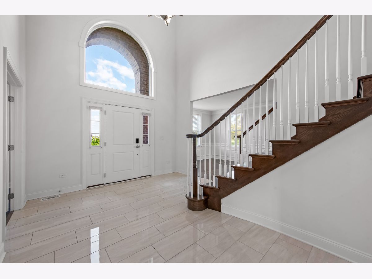 Exquisite custom-built Toll Brothers home in the premier Tanglewood Hills, Batavia. This 5-bedroom, 4.5-bathroom residence features a 2-story foyer, 2-story family room, 9-ft ceilings on the main and upper levels, fully finished basement, and a 3-car side garage. Freshly painted throughout. Steps away from the exclusive Clubhouse, resort-style pool, basketball/tennis/pickleball courts, on-site Grace McWayne Elementary School and playground, with easy access to downtown Geneva, Batavia, and I-88. The main level offers a grand two-story foyer with dual staircases, a spacious office, living room, dining room with custom molding, and an open-concept family room with a floor-to-ceiling fireplace. The gourmet kitchen features a breakfast area, stainless-steel appliances, and upgraded tile flooring. The laundry room includes a utility sink, long bench, and ample cabinetry. Upstairs, four bedrooms feature elegant ceiling fans. One bedroom has vaulted ceiling and two double-door closets, sharing a Jack & Jill bath with dual vanities. Another bedroom has a private full bath. The owner's suite boasts a large sitting area, two expansive walk-in closets, dual vanities, a tub, and an oversized shower. The fully finished lower level with luxury vinyl plank flooring includes a recreation room, a bedroom, full bath, dry bar (TV and refrigerator included), a home gym with full-wall mirror (equipment included), and abundant storage space. The backyard, framed by evergreen trees and vibrant Rose Marrow flowers blooming all summer, offers a tranquil escape. Additional features include hardwood flooring throughout, whole-house water softener, purified drinking water system, and whole-house blinds with a lifetime warranty, combining luxury and functionality.