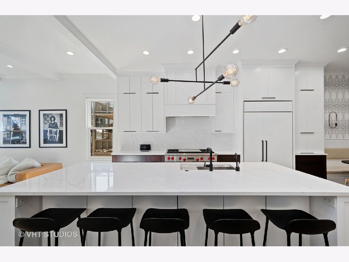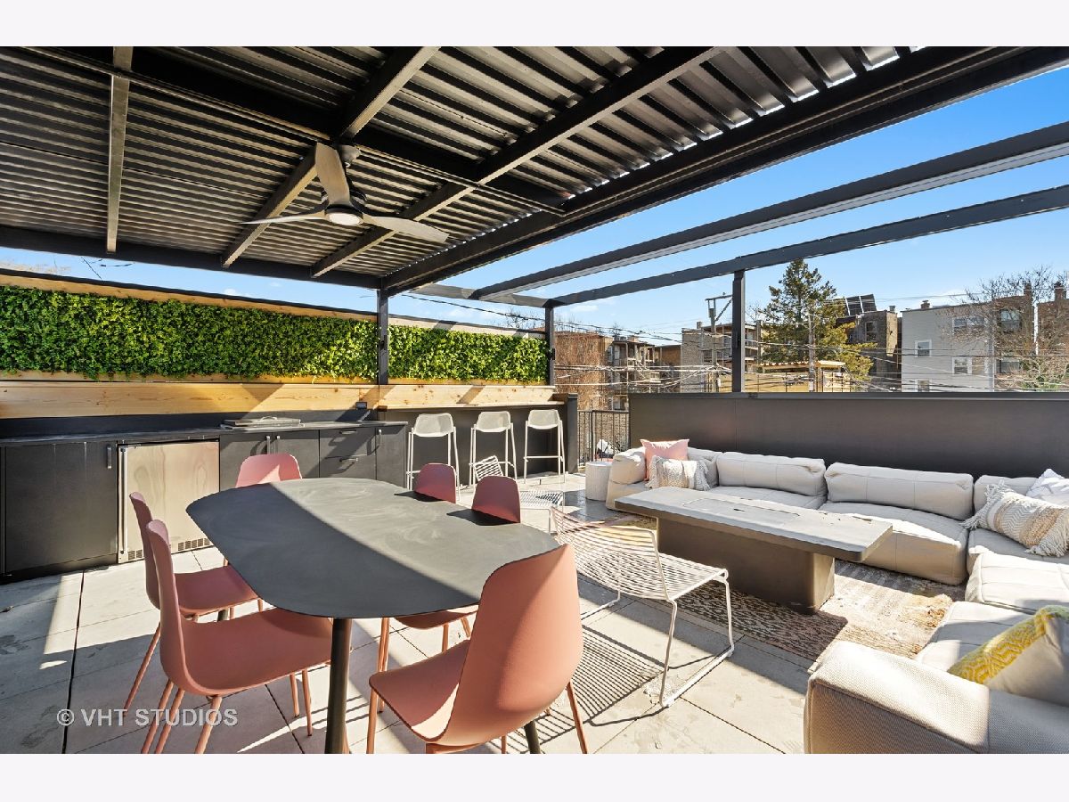 Stunning 2 year old all brick new construction on one of the premier blocks in Logan Square. This show stopper home was professionally designed with thoughtful floor plan and meticulous attention to detail. Chef's kitchen features Wolf Range, Sub Zero Refrigerator with stunning island and breakfast nook. Second floor features 3 large bedrooms with en suite baths for each. East facing primary bedroom with spacious walk-in closet, and spa bathroom. Basement features large rec room with wet bar, radiant floors, 2 large bedrooms with jack and Jill bath and additional powder room. Completely built out roof deck with retractable awning, green wall, lighted pergola, bar complete with outdoor refrigerator and television. This truly is a must see home. Noteworthy details include radiant heated lower level and snow melt on entry stairs. Located just a stone's throw away from the farmers market, restaurants, blue line L stop & I 94