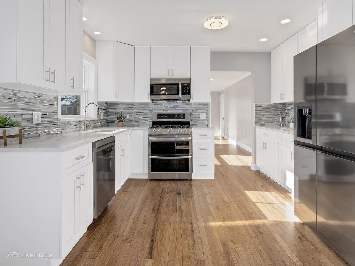 Beautifully remodeled English style house with finished basement and side drive. 4 bedrooms, 3 full baths. 1970 sg ft total plus finished basement with additional office space. 3 bedrooms on the main floor. Huge living & dining room with new recess lighting. Gorgeous new white kitchen with quarts countertops and all stainless-steel appliances and glass backsplash. All 3 bathrooms are brand new. Basement bath has huge custom build walk in shower. Second floor with separate front and back staircase. Amazing second floor covered balcony for summer enjoyment. Almost all new windows have been replaced in 2023. Custom moldings throughout the house. New oak flooring in third bedroom on the first floor. All new light fixture. All new interior and exterior door. Furnace & AC replaced in 2023. Long driveway leading to oversized 2,5 car garage. All fenced backyards. There is a beautiful, all stone custom-made fireplace/stove for outside grilling. New front, outside stairs with new railings and new front sidewalk. Great and spacious house waiting for new buyer.