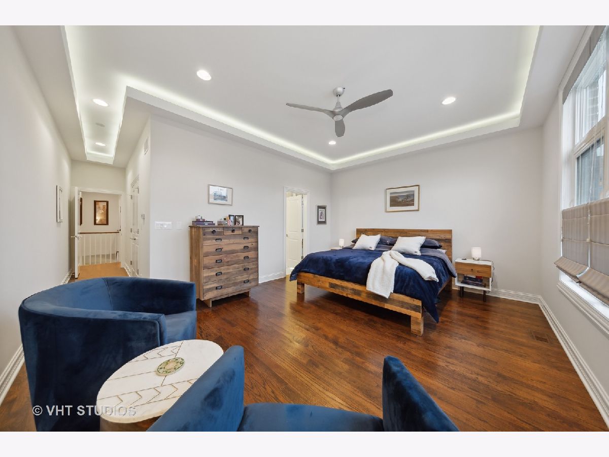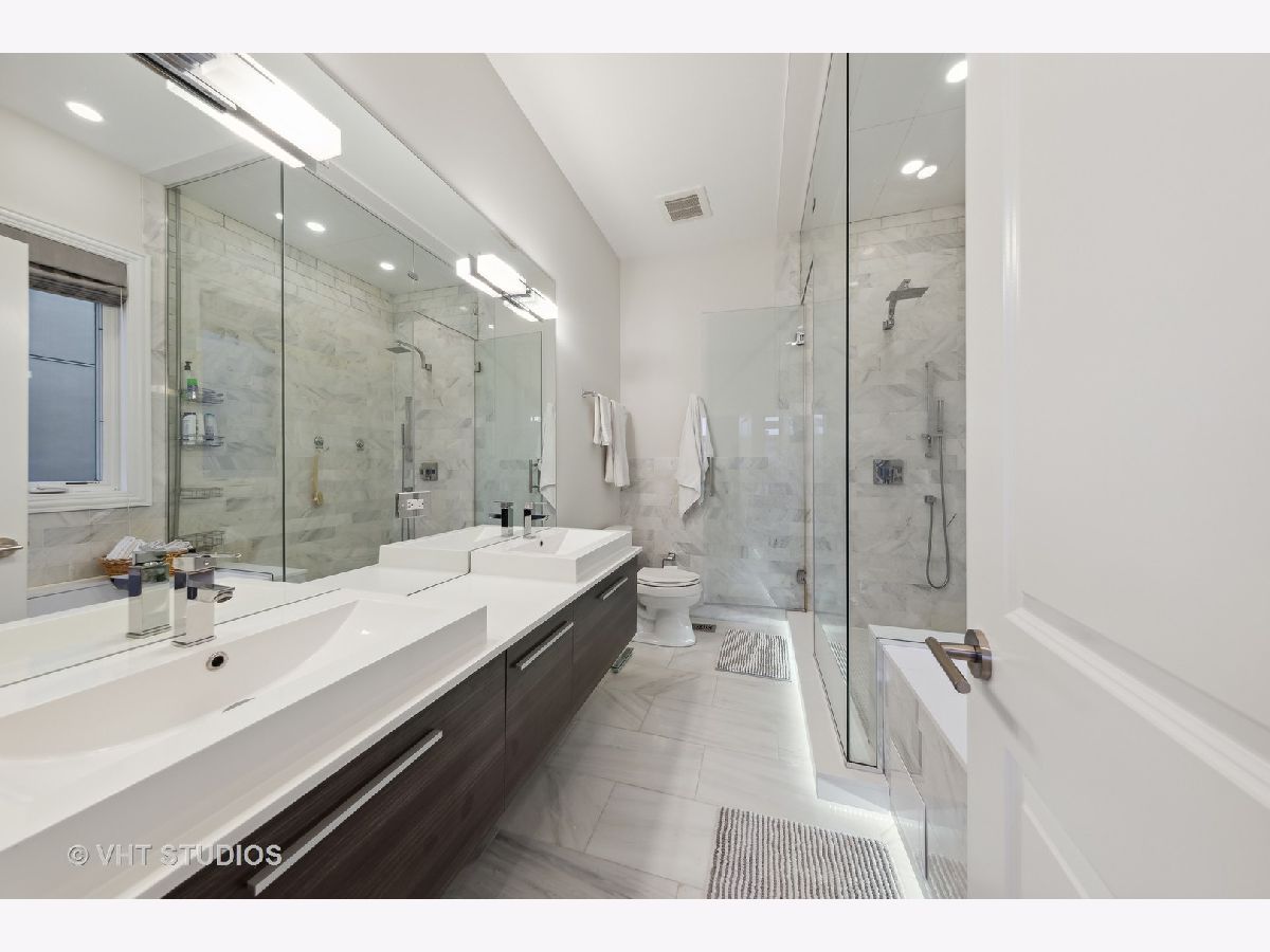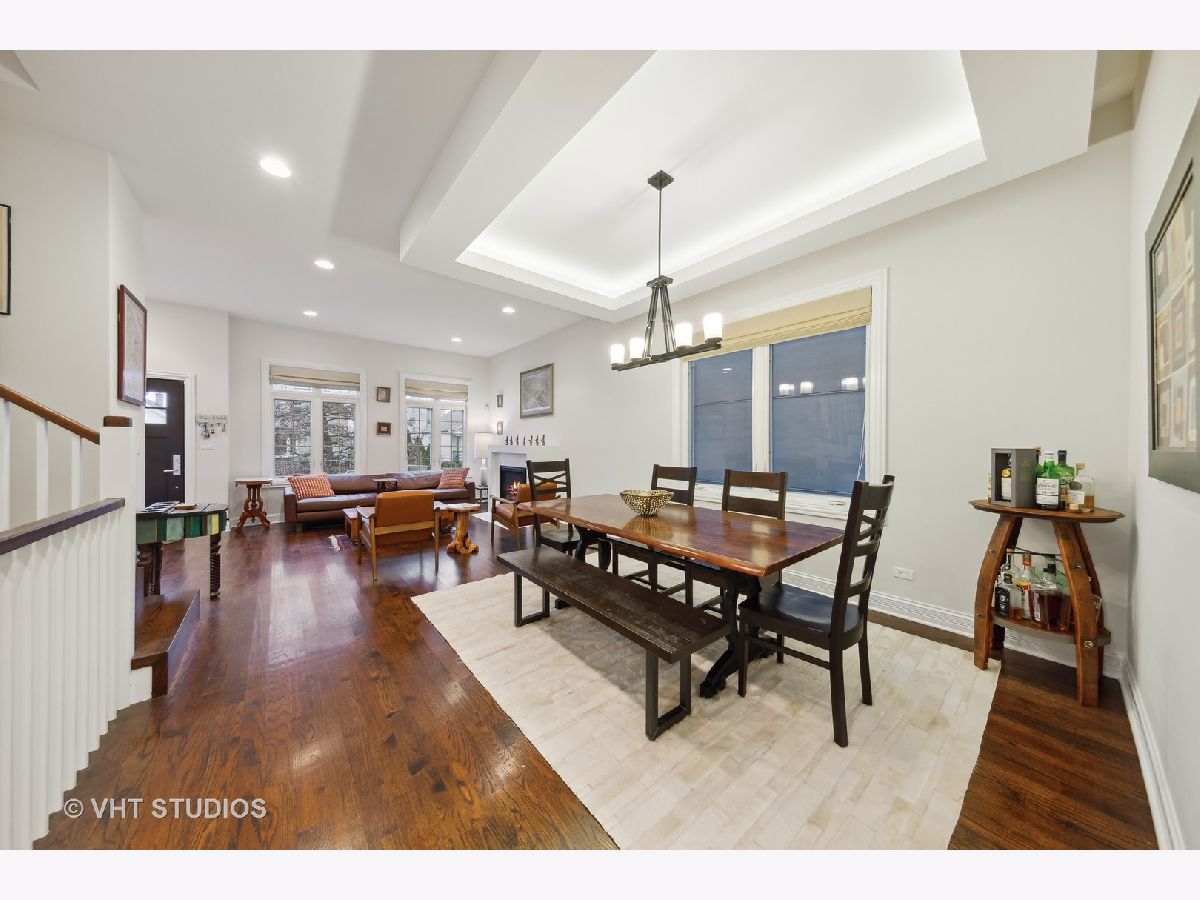 Elegant & luxurious newer construction SFH in Logan Square! This all brick home is situated on a quiet tree-lined street steps to Goethe Elementary School and playground. The main south-facing living level features wide-plank hardwood flooring throughout. The large formal living room is anchored by a gas fireplace and beautiful dining room with a backlit tray ceiling. The chef's kitchen features shaker white cabinets with carrara marble countertops, sleek white subway tile backsplash, stainless appliances, large island with wine refrigerator and gorgeous pendant lights. This flows to the large great room featuring a powder room, another fireplace and access to the rear deck through sliding glass doors perfect for grilling and relaxation. Upstairs boasts three large bedrooms. The primary suite is over-sized complete with a large walk-in closet and another lit tray ceiling. The stunning primary bath has a dual vanity with loads of storage, large soaking tub, separate fully enclosed walk-in shower with floor to ceiling cararra subway tile. The lower level features a large family room, wet bar with beverage refrigerator, a large 4th bedroom and 3rd full bath. You'll also find a dream laundry room with a sidexside newer washer/dryer combo and plenty of overhead storage. Out back you'll find a grassy backyard and full 2 car garage. Close to all of the Logan hotspots, CTA Blue line, expressway and so much more. Welcome home!