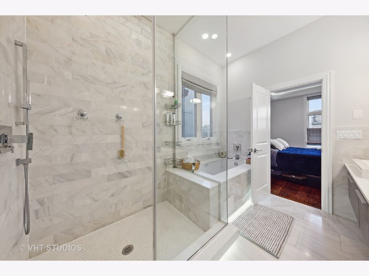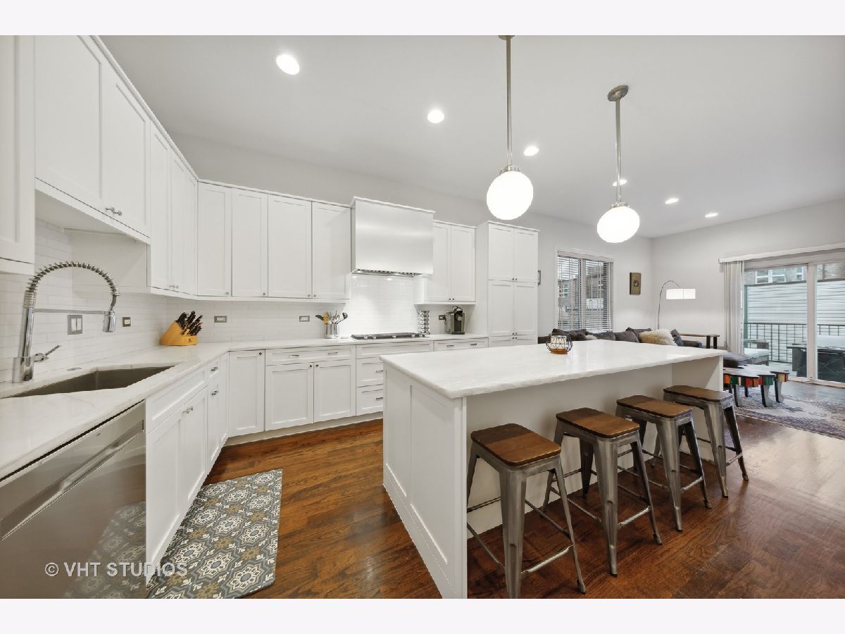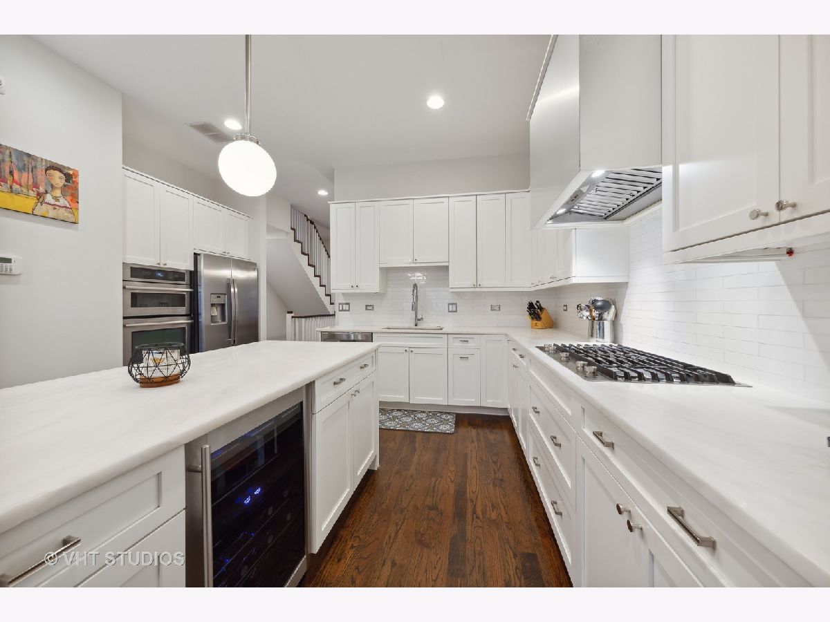 Elegant & luxurious newer construction SFH in Logan Square! This all brick home is situated on a quiet tree-lined street steps to Goethe Elementary School and playground. The main south-facing living level features wide-plank hardwood flooring throughout. The large formal living room is anchored by a gas fireplace and beautiful dining room with a backlit tray ceiling. The chef's kitchen features shaker white cabinets with carrara marble countertops, sleek white subway tile backsplash, stainless appliances, large island with wine refrigerator and gorgeous pendant lights. This flows to the large great room featuring a powder room, another fireplace and access to the rear deck through sliding glass doors perfect for grilling and relaxation. Upstairs boasts three large bedrooms. The primary suite is over-sized complete with a large walk-in closet and another lit tray ceiling. The stunning primary bath has a dual vanity with loads of storage, large soaking tub, separate fully enclosed walk-in shower with floor to ceiling cararra subway tile. The lower level features a large family room, wet bar with beverage refrigerator, a large 4th bedroom and 3rd full bath. You'll also find a dream laundry room with a sidexside newer washer/dryer combo and plenty of overhead storage. Out back you'll find a grassy backyard and full 2 car garage. Close to all of the Logan hotspots, CTA Blue line, expressway and so much more. Welcome home!