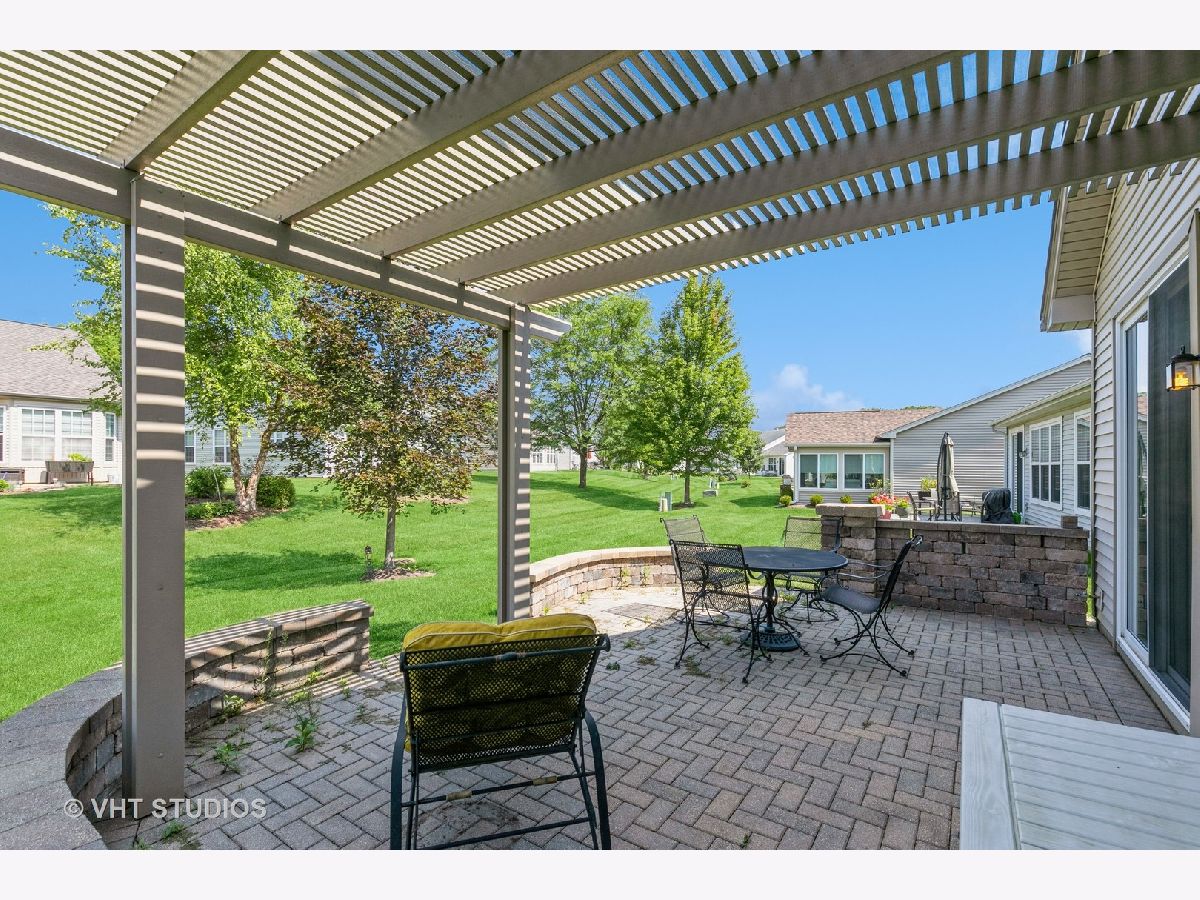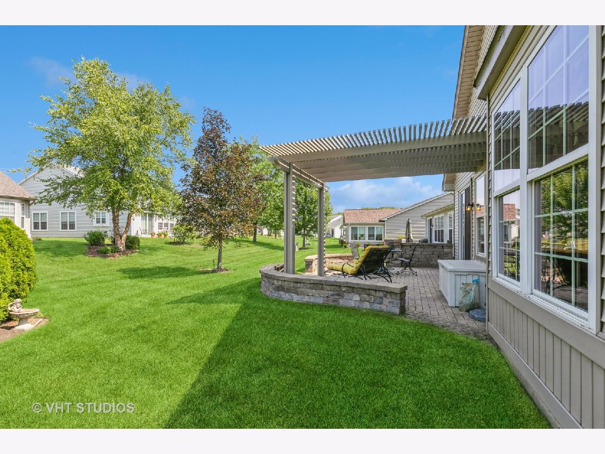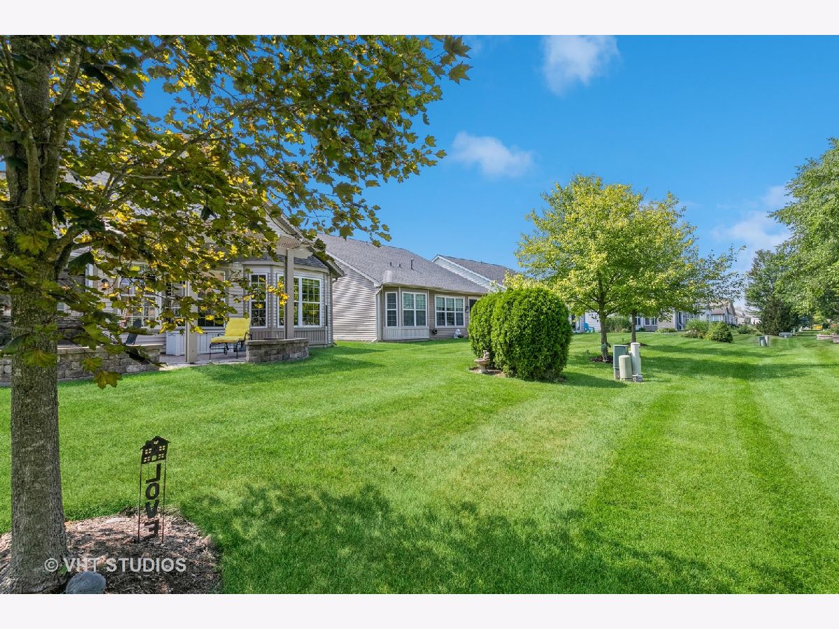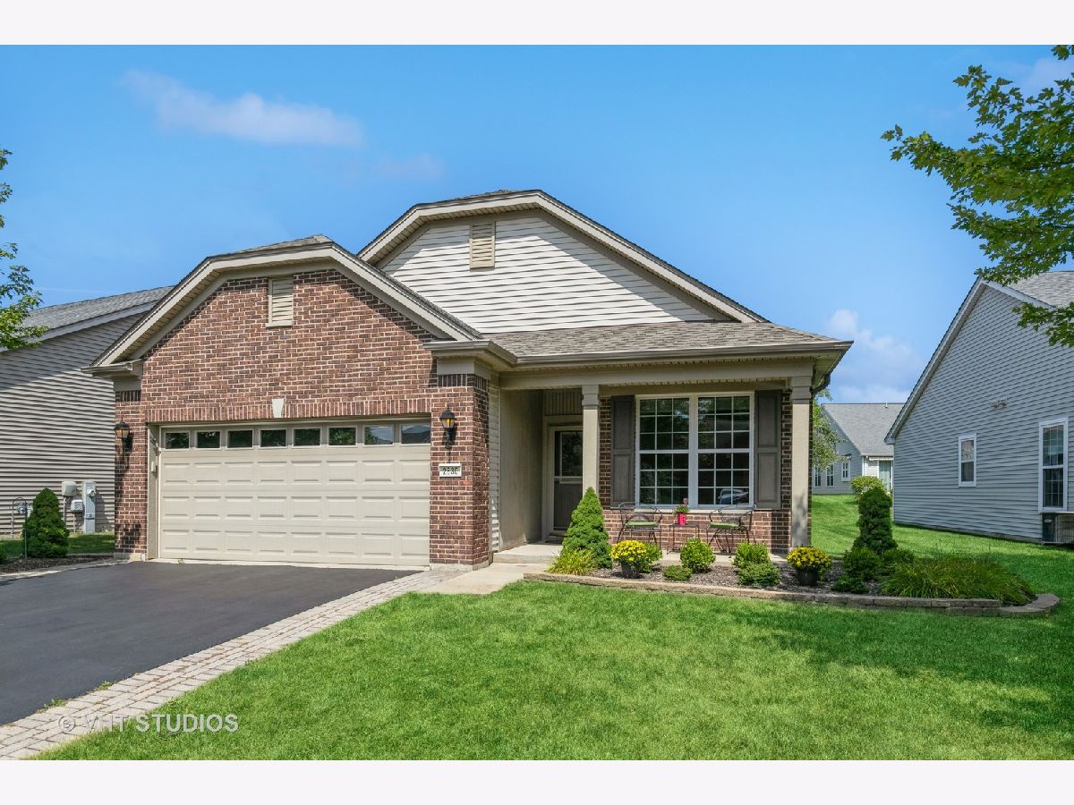 Popular "Belmont" model with 1560 Sq.Ft. PLUS Extended Garage with garage energy package and glass windows on door! Elevation A with Front Porch! Underground sprinklers, hardwood floors in all rooms and closets, window sills, custom valances and "top and bottom" shades, paver patio plus wall and Pergola, new landscaping in front with circular hardscape, and new roof '21. Home also has built in gas line on patio. Kitchen has 42" cabinets; master bedroom has bay window. There are 4 fans thru-out.All mechanicals and appliances original but sellers spent 6 months each year out of state for lower wear and tear. Edgewater takes care of snow removal and lawn care, seal coating of driveway and mulch every other year, and has a 24/7 guard and gated community. (One person living in house must be 55+). There are indoor and outdoor pools and hot tub, fitness center, tennis/pickle ball and bocce courts. Enjoy Edgewater's Lifestyle! QUICK CLOSE POSSIBLE!