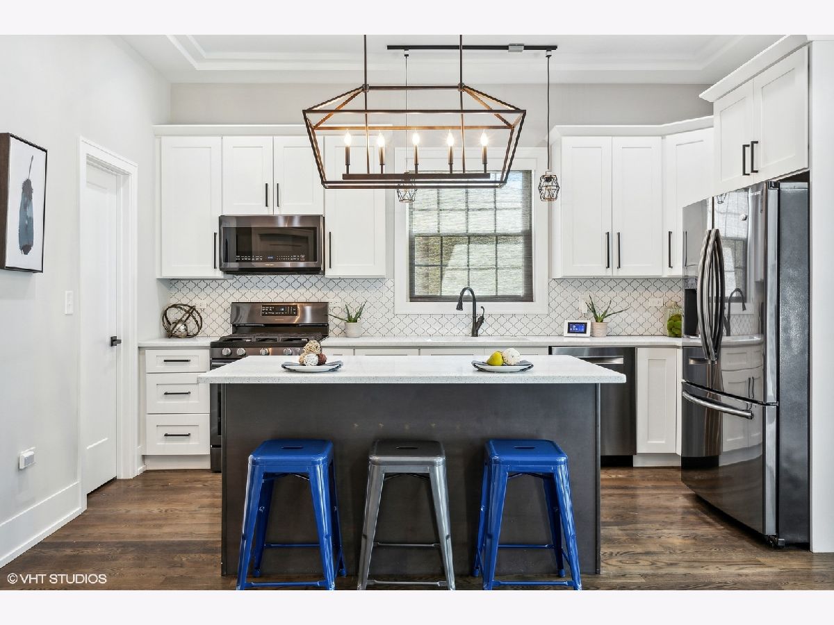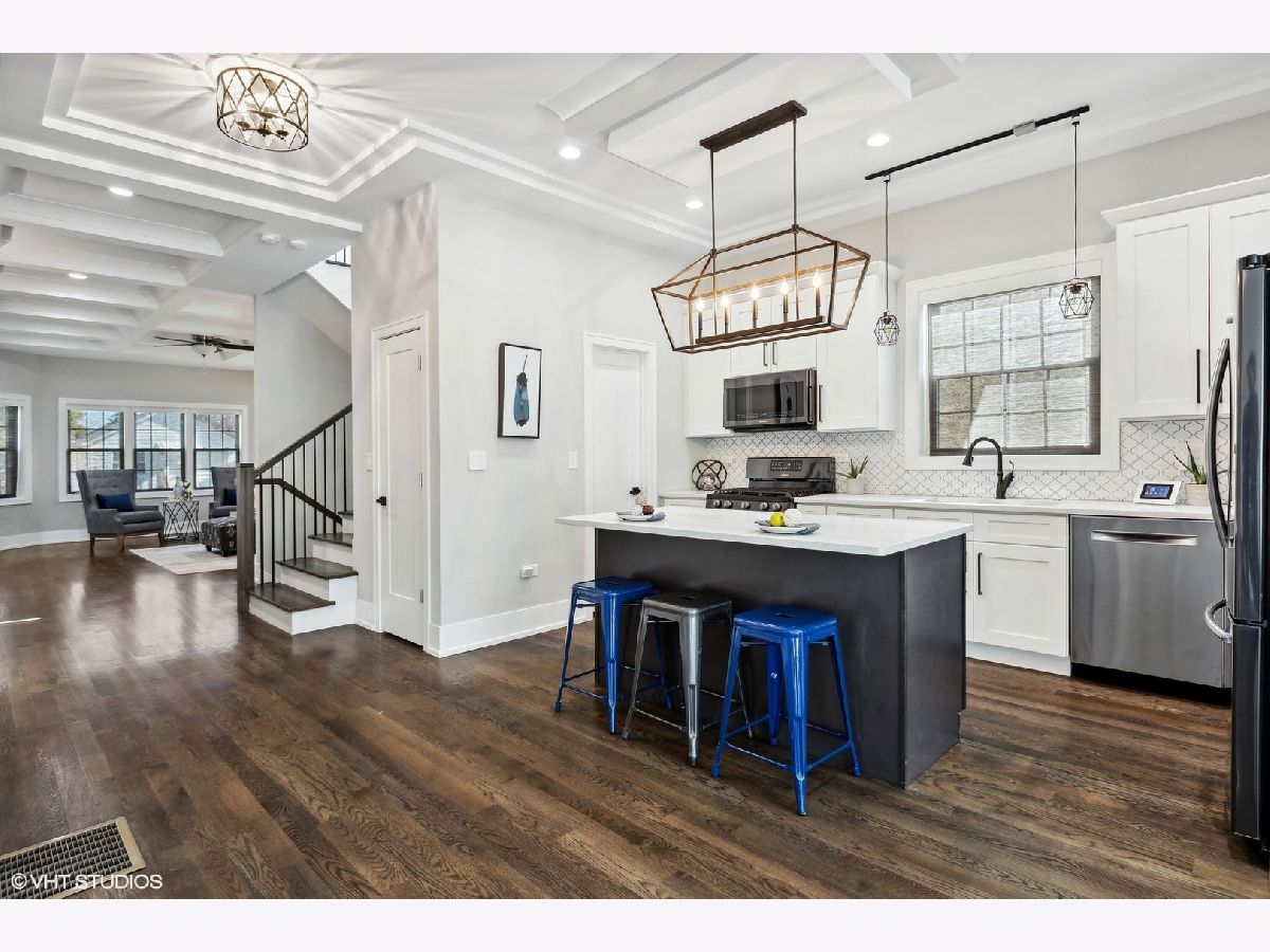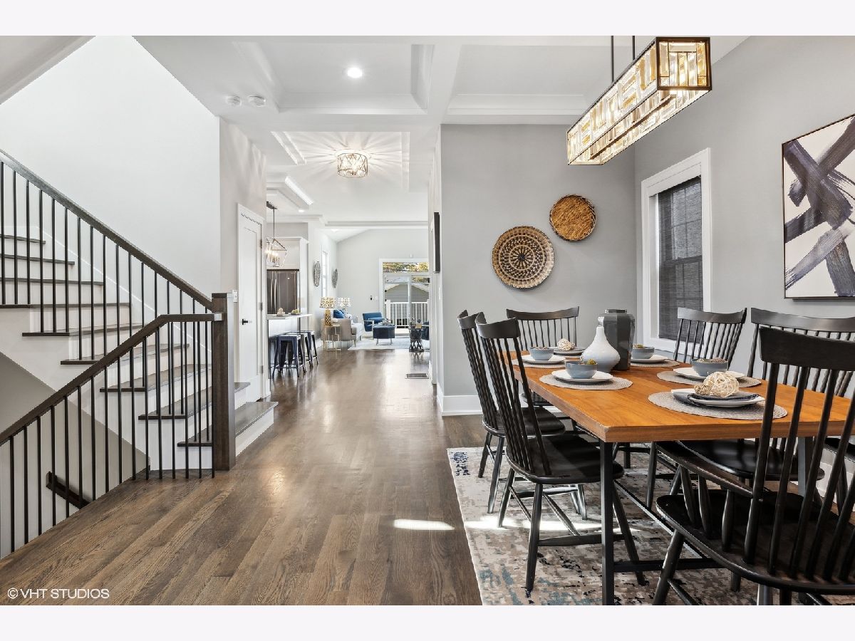 Lovely 3-yrs-old rehab of everything above the foundation just steps from the heart of the Village. Exquisite craftsmanship and luxury construction adorn this home! Excellent floor plan offers a fully appointed kitchen suited with custom cabinetry, quartz countertops, a handcrafted backsplash, stainless steel appliances, and a walk-in pantry. Exceptional living room and formal dining room with 10-foot coffered ceilings. The home pours with natural sunlight. Primary bedroom with spa-like ensuite bathroom offering two separate showers, one walk-in with European shower, double bowl vanity, whirlpool tub, and walk-in closet. Three additional second-floor bedrooms with ample closet space and a deluxe shared full bath. Finished lower level boasting recreation space, wet bar for entertaining, 5th bedroom, laundry, and loads of storage. Fabulous location blocks from the Metra, public transportation, schools, library, aquatic and civic center. Enjoy everything Elmwood Park has to offer.