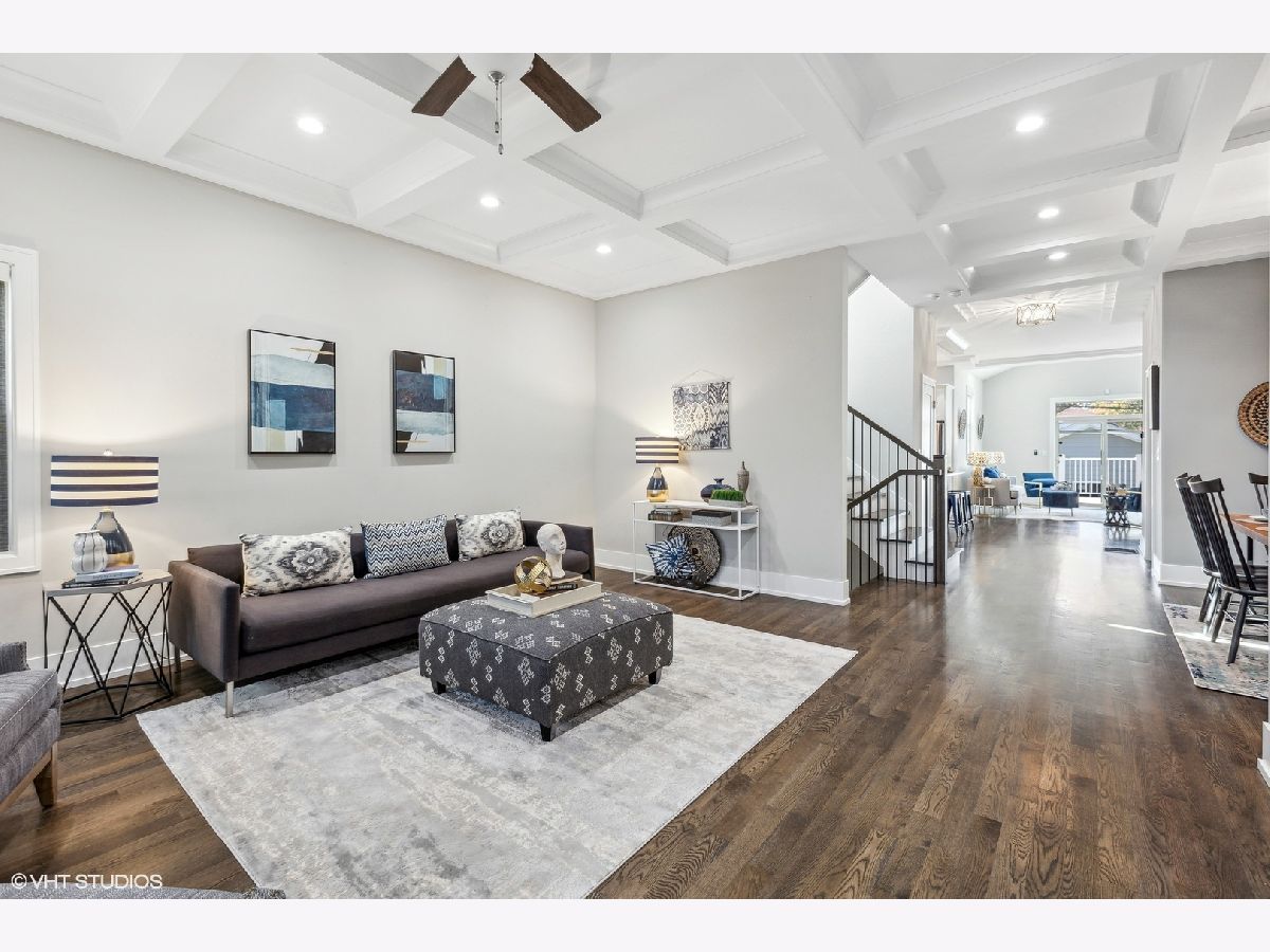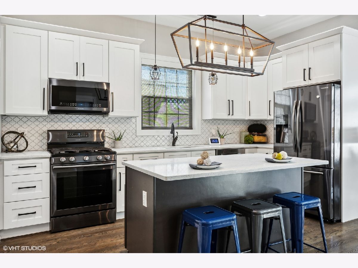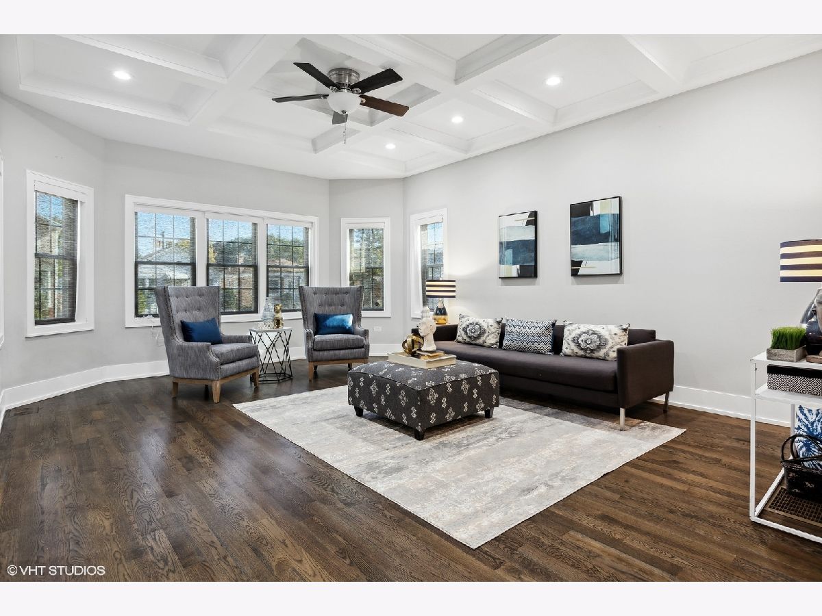 Lovely 3-yrs-old rehab of everything above the foundation just steps from the heart of the Village. Exquisite craftsmanship and luxury construction adorn this home! Excellent floor plan offers a fully appointed kitchen suited with custom cabinetry, quartz countertops, a handcrafted backsplash, stainless steel appliances, and a walk-in pantry. Exceptional living room and formal dining room with 10-foot coffered ceilings. The home pours with natural sunlight. Primary bedroom with spa-like ensuite bathroom offering two separate showers, one walk-in with European shower, double bowl vanity, whirlpool tub, and walk-in closet. Three additional second-floor bedrooms with ample closet space and a deluxe shared full bath. Finished lower level boasting recreation space, wet bar for entertaining, 5th bedroom, laundry, and loads of storage. Fabulous location blocks from the Metra, public transportation, schools, library, aquatic and civic center. Enjoy everything Elmwood Park has to offer.