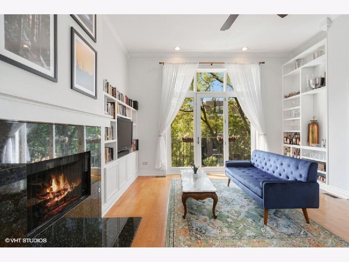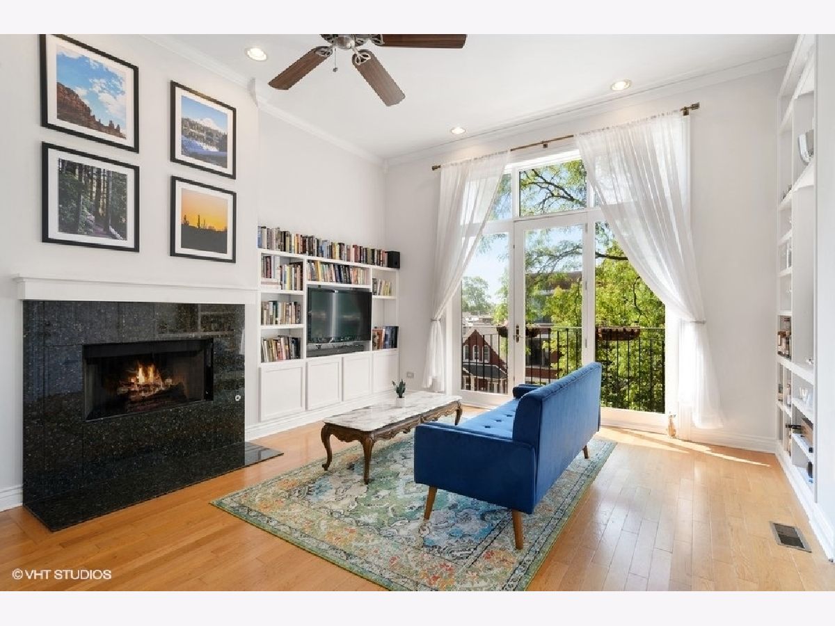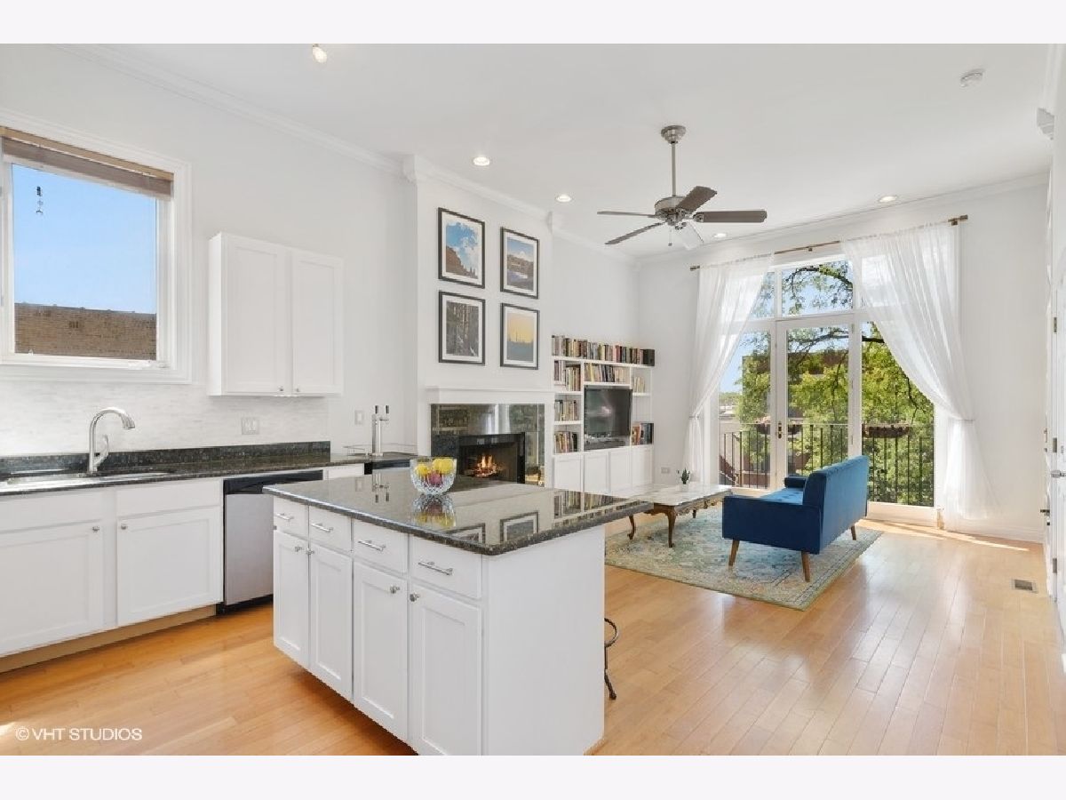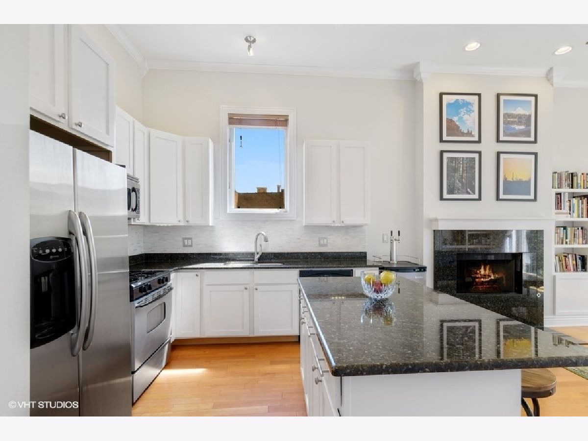 Bright & spacious top floor, THREE Bedroom, two full bath on a picturesque tree-lined street close to it all! 11 Ft ceilings, 42" kitchen cabinets, stainless appliances, granite counters, hardwood floors, spacious rear deck, and PRIVATE ROOF RIGHTS with an east-facing city skyline view. RARE!! Custom features including the living room built-ins & crown molding truly set this home apart. Stylish fireplace with handmade mantle, NEWER HVAC (2018), and an upgraded, front-loading Washer/Dryer (2019). Unobstructed Southern and Eastern exposure floods the unit with natural light at all times of day! Well maintained building with a well-run association. Additional Storage & Garage parking!