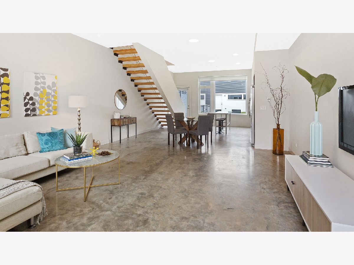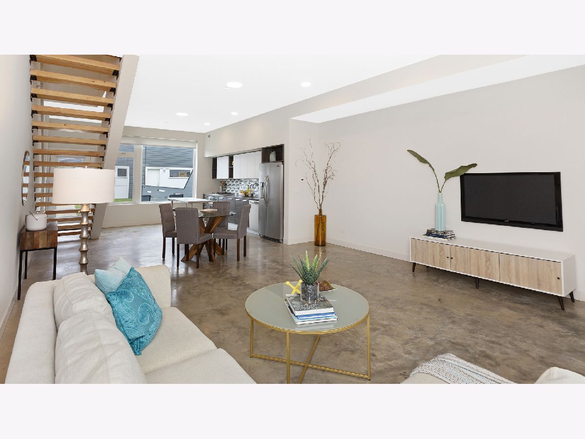 Don't miss out on this modern & pristine 3BR/2BA tri-level town home in the highly desirable Logan Square! An open-concept first floor boasts oversized east and west-facing windows as well as durable, eco-friendly concrete flooring. Entertain at will with plenty of space for an oversized sectional, media center, dining table & kitchen island! Beautiful modern cabinetry and stainless steel appliances grace the kitchen. Climb to the second floor on the natural wood, open riser staircase. The second level features two spacious bedrooms, a modern finish bathroom with luxurious tub and a large laundry room. The entire top floor makes up the master suite with space for a king bed, huge closets and a designer, en-suite bathroom. Finishes include geometric tile, floating dual vanities, a separate shower and an oversized tub. Enjoy a large private yard and two car detached garage. Easy street parking for guests. Walk to the 606, CTA, Metra & all that Logan Square has to offer! Turnkey, 2015 construction by Ranquist Development.