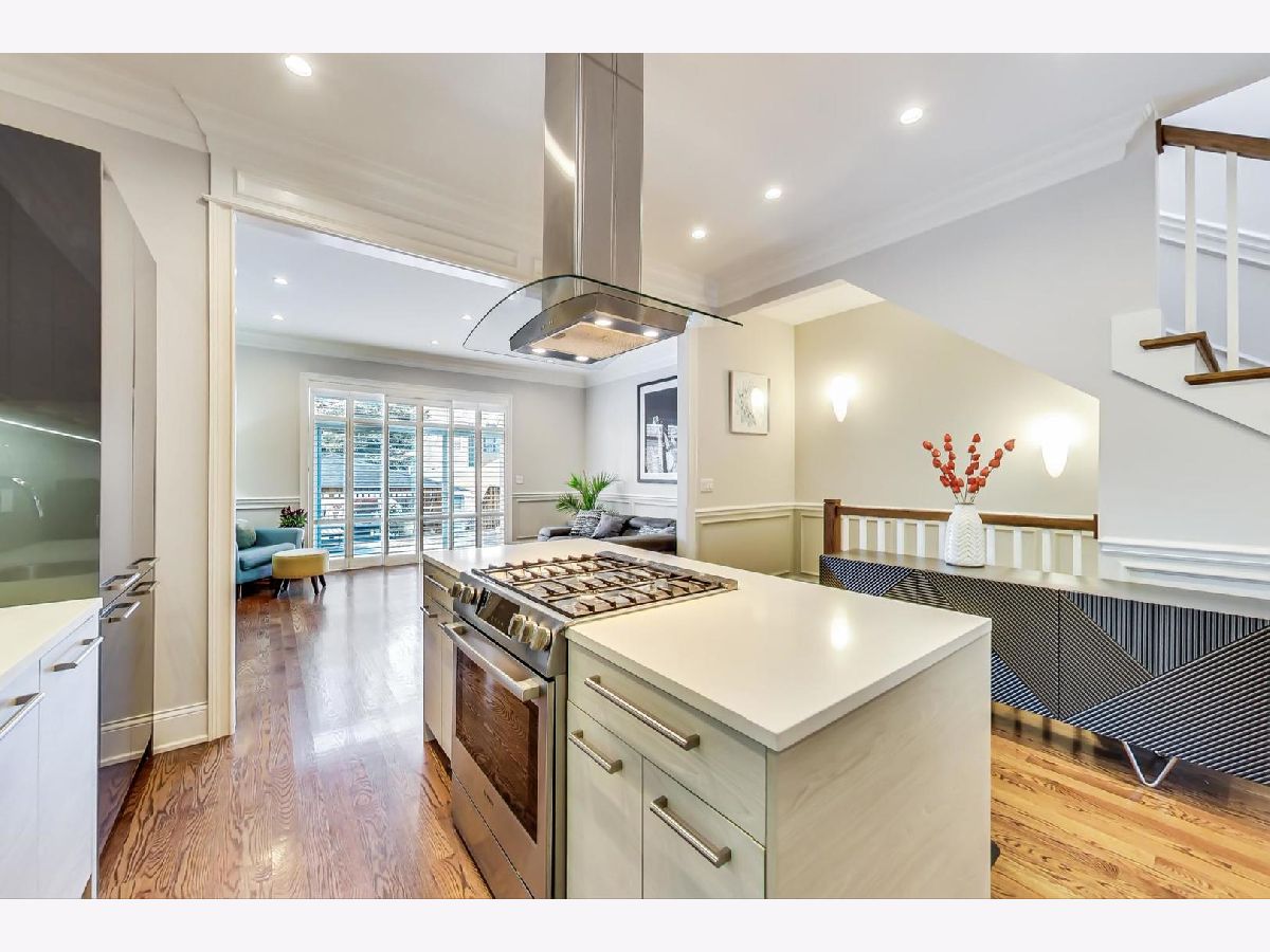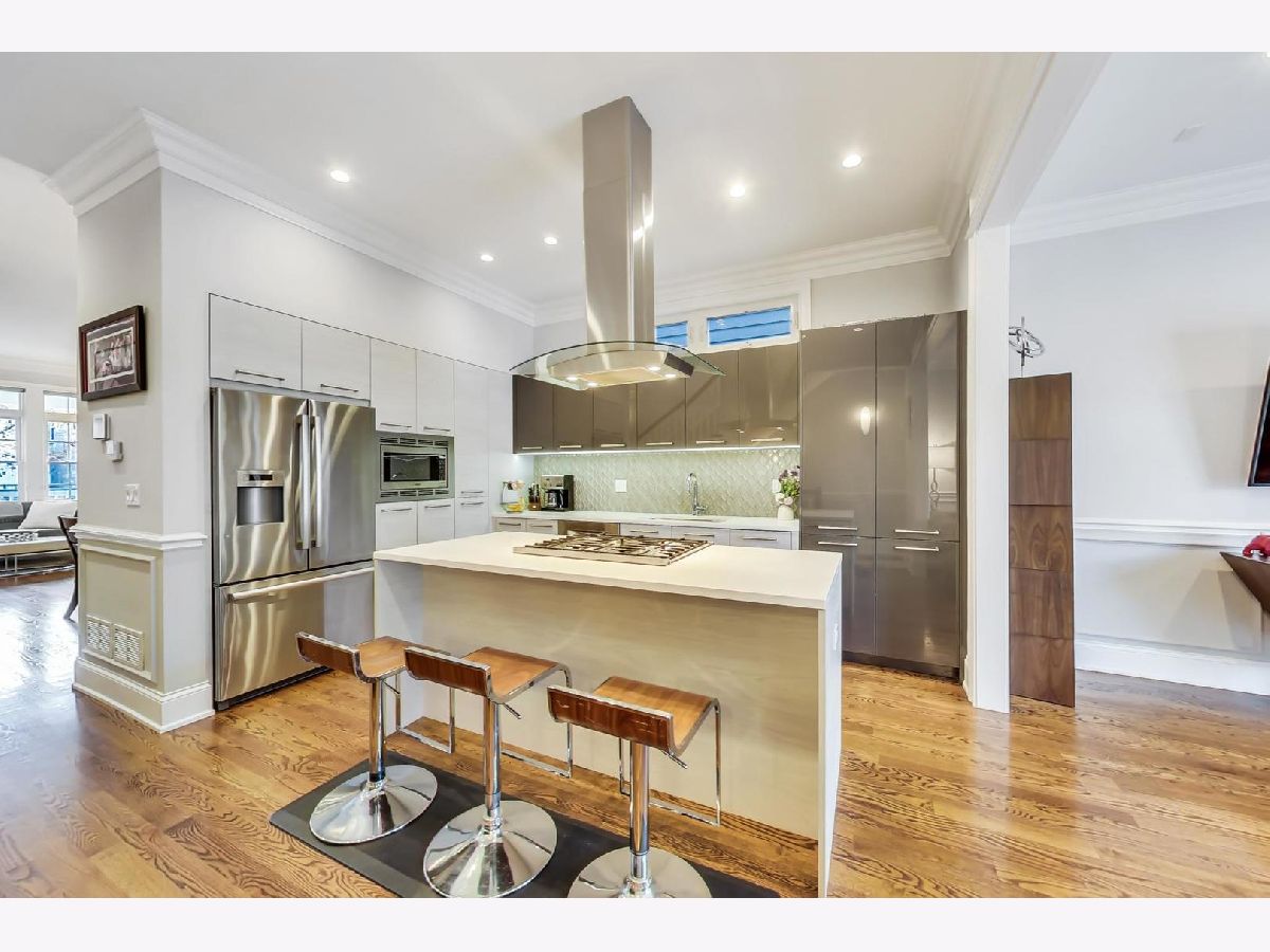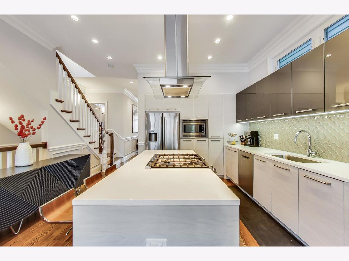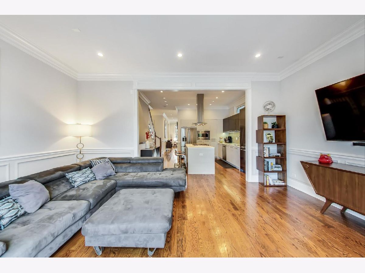 Beautiful Logan Square 4 bedroom, 3 and a half bath contemporary single-family home just steps to Logan Blvd. Walk into an open floor plan with hardwood floors, crown molding, wainscotting and custom millwork throughout. The kitchen boasts custom two-tone cabinetry with Quartz countertops, glass back-splash, island with breakfast bar and Bosch stainless steel appliances. Three bedrooms on the top floor with hardwood floors throughout and great closet space and second laundry. Primary spa-like bath has heated floors, double vanity, and separate tub & shower with body sprays. Lower level has radiant heated floors, large rec room with great wet bar, full guest bedroom with walk-in closet and laundry room. Zoned HVAC, custom closet organizers and custom window treatments including plantation shutters in family room. Plus special-order lighting and decor throughout. Enjoy the front yard and porch or the spacious back deck with fenced yard and 2 car garage. Walk to all the hot dining spots and nightlife, the Blue Line or 1/2 block to Starbucks. This home has it all.