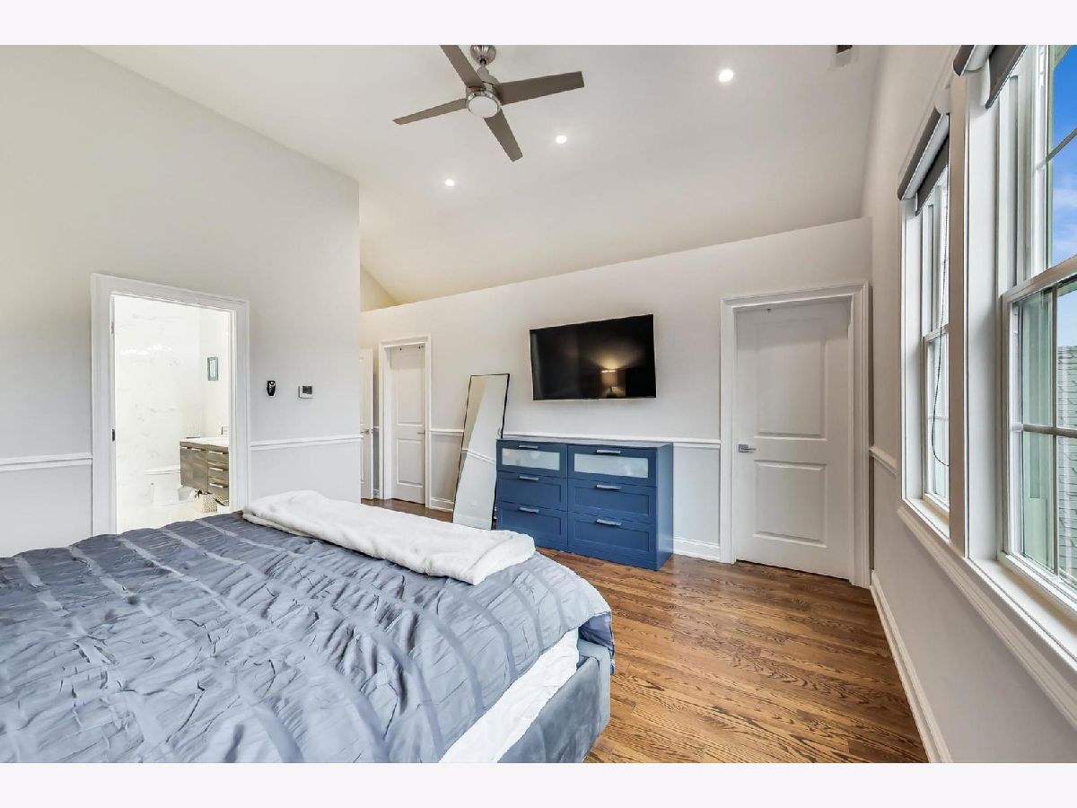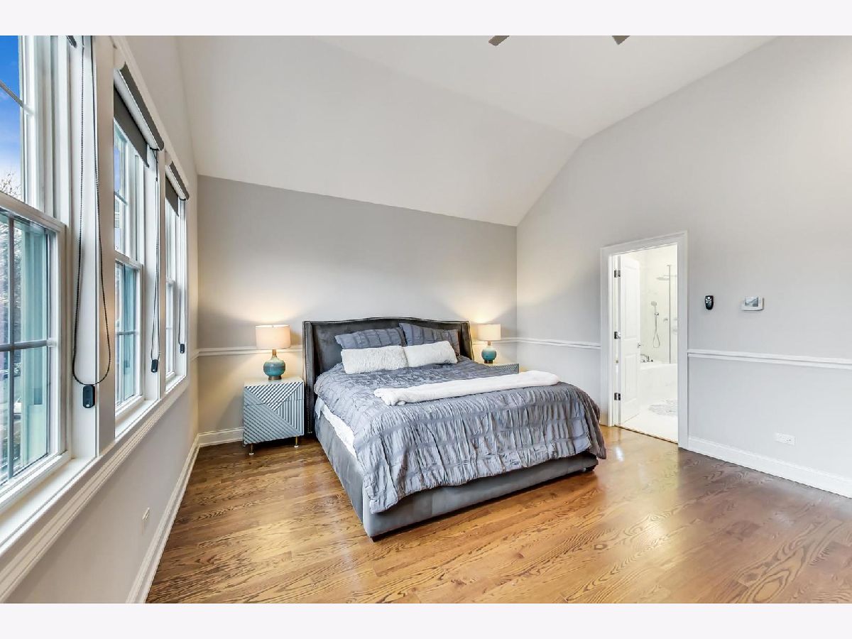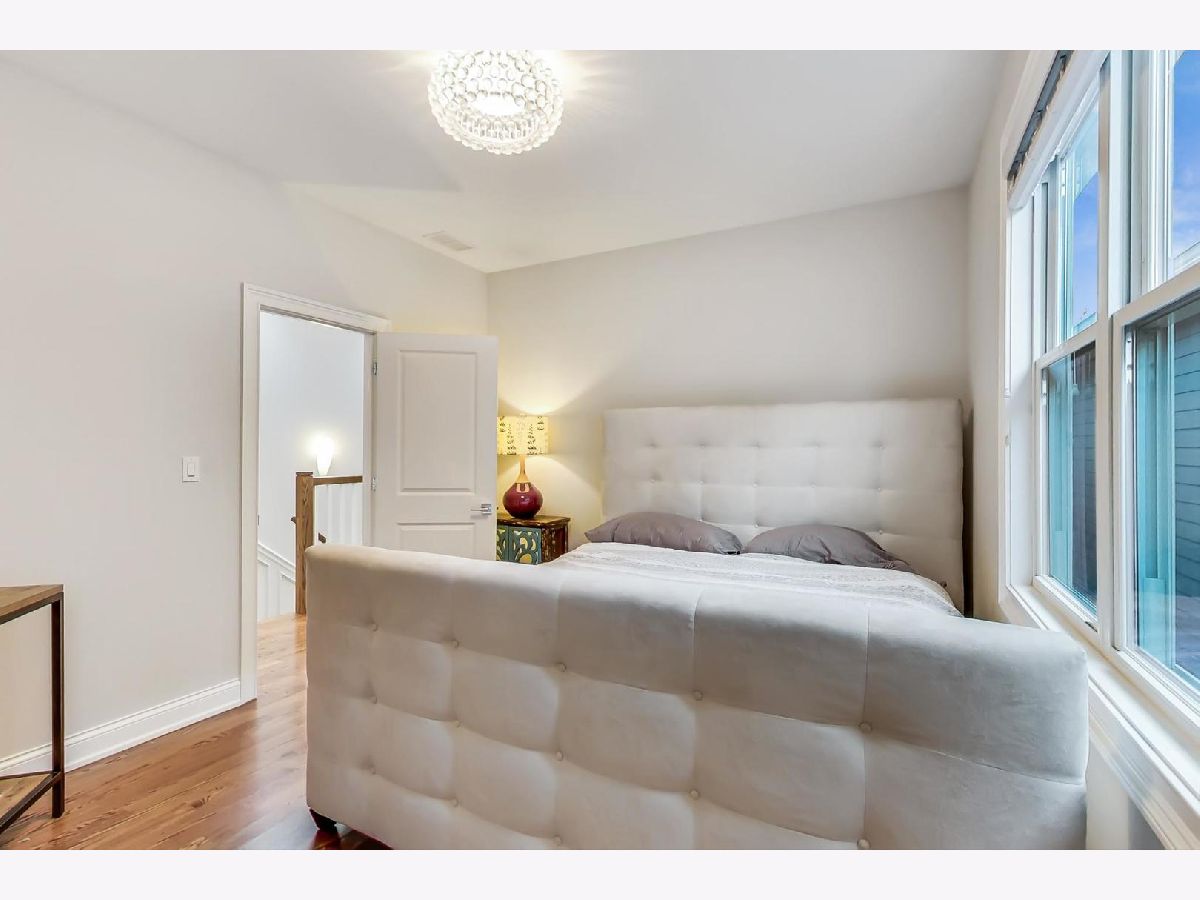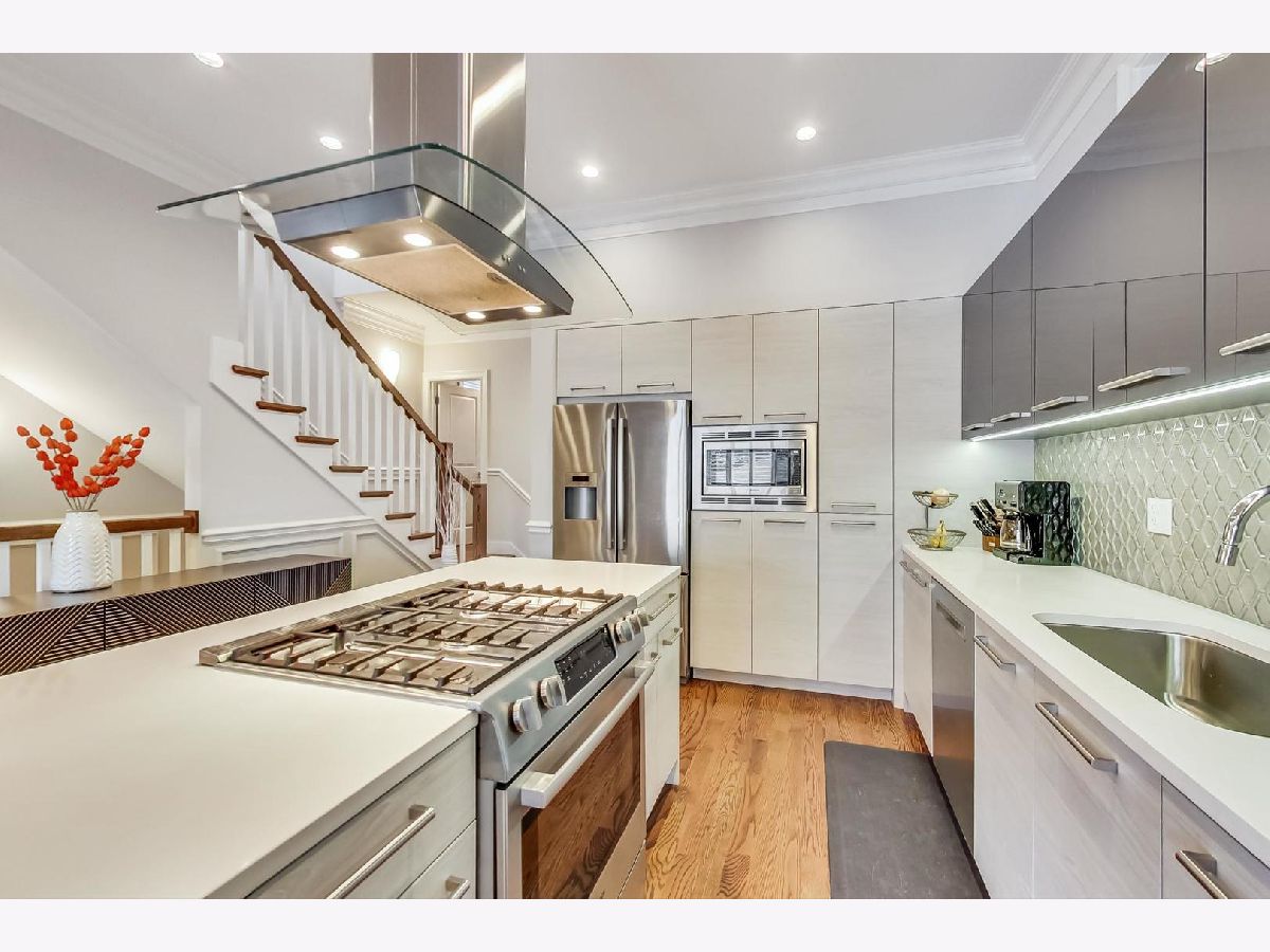 Beautiful Logan Square 4 bedroom, 3 and a half bath contemporary single-family home just steps to Logan Blvd. Walk into an open floor plan with hardwood floors, crown molding, wainscotting and custom millwork throughout. The kitchen boasts custom two-tone cabinetry with Quartz countertops, glass back-splash, island with breakfast bar and Bosch stainless steel appliances. Three bedrooms on the top floor with hardwood floors throughout and great closet space and second laundry. Primary spa-like bath has heated floors, double vanity, and separate tub & shower with body sprays. Lower level has radiant heated floors, large rec room with great wet bar, full guest bedroom with walk-in closet and laundry room. Zoned HVAC, custom closet organizers and custom window treatments including plantation shutters in family room. Plus special-order lighting and decor throughout. Enjoy the front yard and porch or the spacious back deck with fenced yard and 2 car garage. Walk to all the hot dining spots and nightlife, the Blue Line or 1/2 block to Starbucks. This home has it all.
