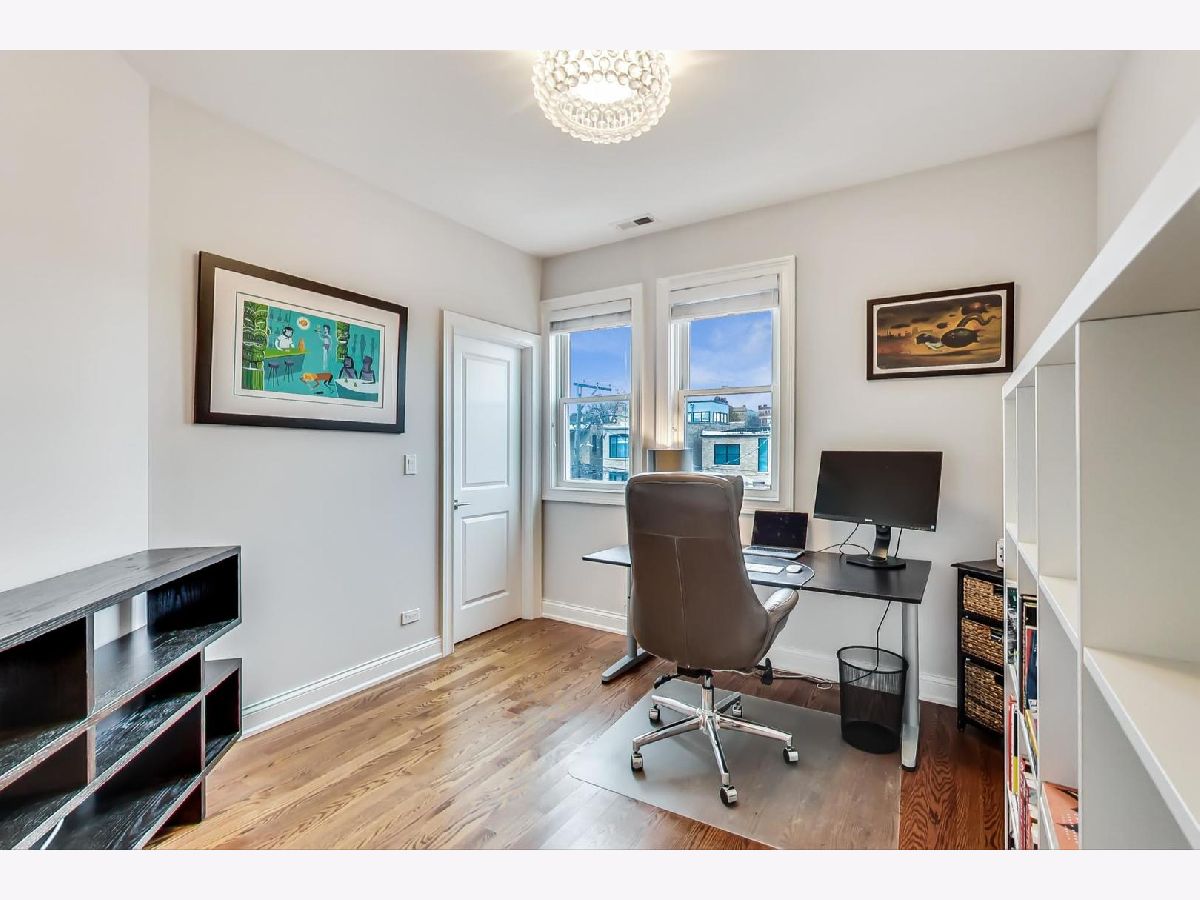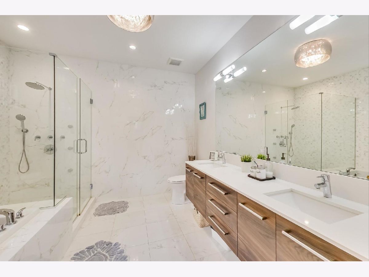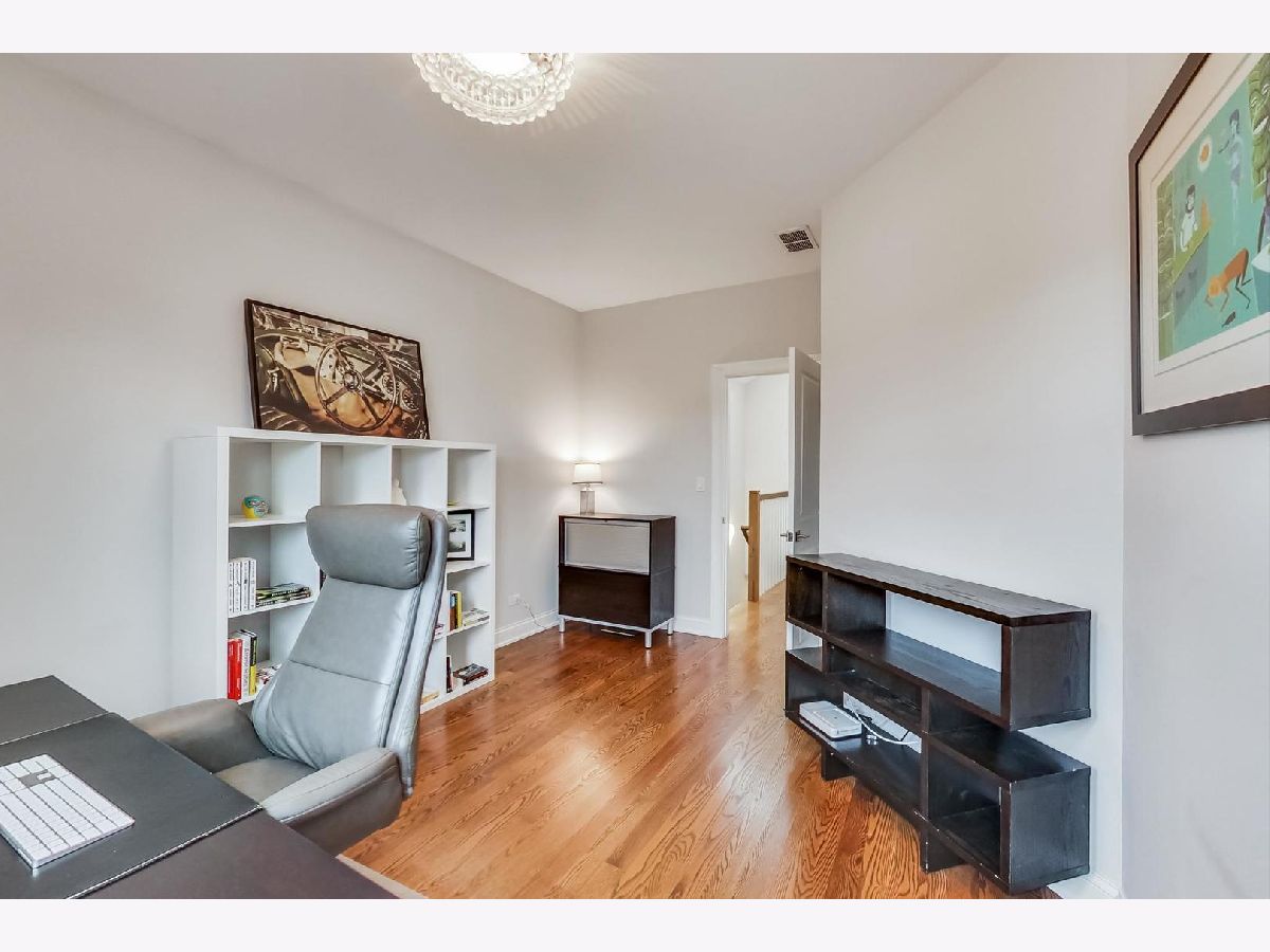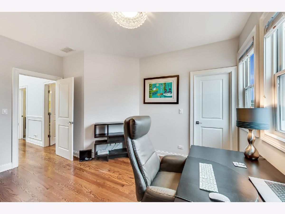 Beautiful Logan Square 4 bedroom, 3 and a half bath contemporary single-family home just steps to Logan Blvd. Walk into an open floor plan with hardwood floors, crown molding, wainscotting and custom millwork throughout. The kitchen boasts custom two-tone cabinetry with Quartz countertops, glass back-splash, island with breakfast bar and Bosch stainless steel appliances. Three bedrooms on the top floor with hardwood floors throughout and great closet space and second laundry. Primary spa-like bath has heated floors, double vanity, and separate tub & shower with body sprays. Lower level has radiant heated floors, large rec room with great wet bar, full guest bedroom with walk-in closet and laundry room. Zoned HVAC, custom closet organizers and custom window treatments including plantation shutters in family room. Plus special-order lighting and decor throughout. Enjoy the front yard and porch or the spacious back deck with fenced yard and 2 car garage. Walk to all the hot dining spots and nightlife, the Blue Line or 1/2 block to Starbucks. This home has it all.