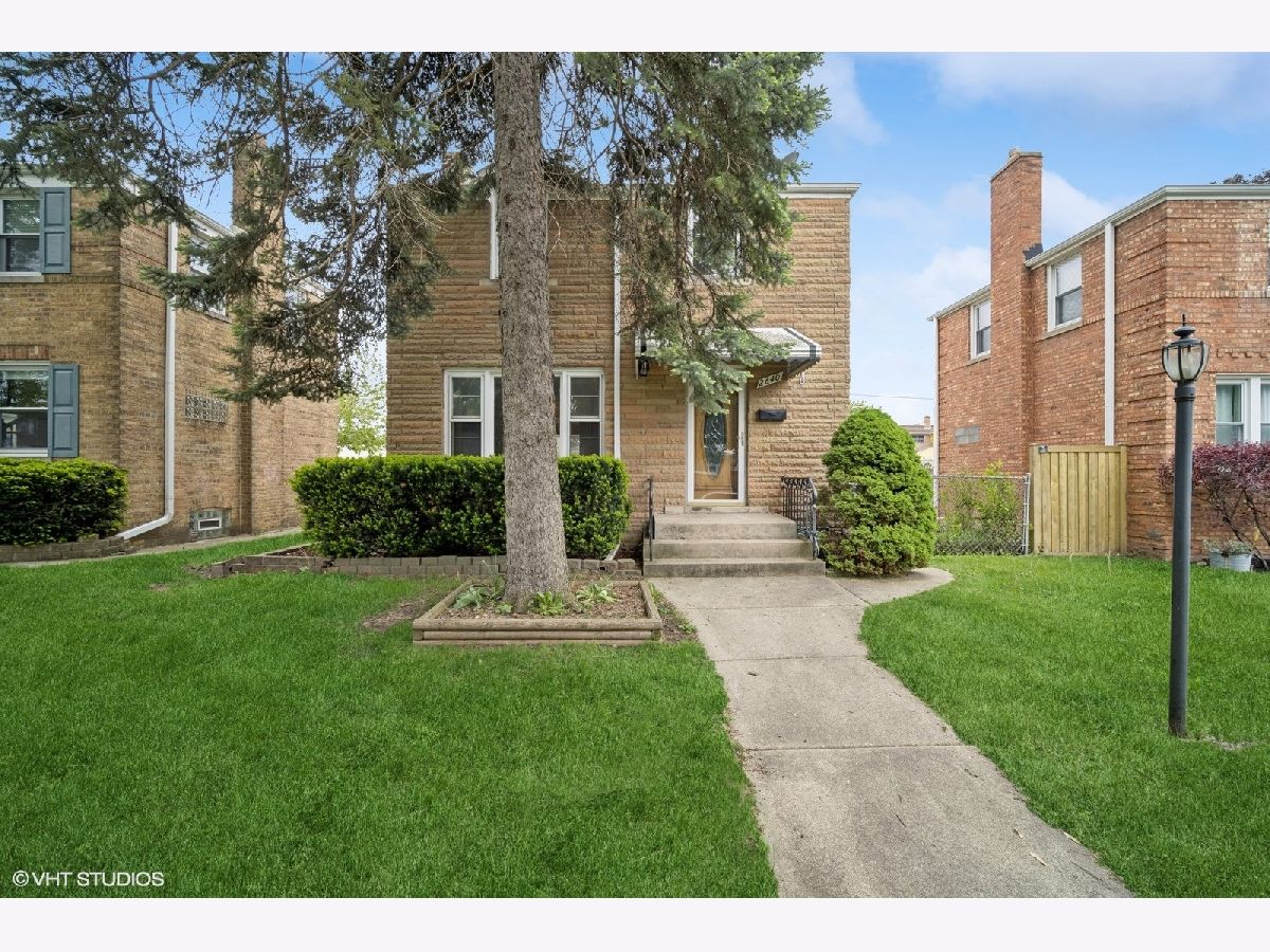 Welcome to 2640 Oak Street! This charming brick Georgian home offers 2 bedrooms and 1.5 bathrooms in a prime Franklin Park location. Step inside to find beautiful hardwood floors and custom woodworking throughout. The spacious formal living room flows seamlessly into a separate dining area, ideal for hosting. The modern kitchen, updated with stainless steel appliances in 2018, provides both style and functionality. A cozy first-floor family room features a gas fireplace and sliding patio doors that lead to a deck-complete with two retractable awnings, perfect for outdoor entertaining. A convenient office nook and half bath are also located on the main floor. Upstairs, you'll find two generously sized bedrooms and an updated full bathroom. The home is equipped with a washer and dryer ~ key systems like the hot water tank, furnace, and central air are all approximately 10-11 years old. Enjoy a private, fenced-in yard, a detached 2-car garage, and an additional rear parking space. The partially finished basement includes a recreation room, laundry and storage. Such a convenient location. Less than 1 mile to Metra. One mile to both elementary school and middle school. 1.5 miles to East Leyden HS.