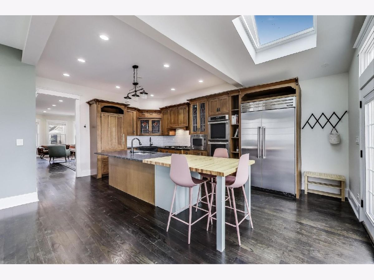 Beautifully renovated single-family home, fully gut-rehabbed in 2014, sits on an over-sized lot along a picturesque, tree-lined street in the heart of Logan Square. With 5 bedrooms, 3.5 baths, and a thoughtfully designed floor plan, this home offers incredible natural light from all four exposures, sought-after finishes, and exceptional space inside and out. The gourmet kitchen features professional-grade appliances, a sprawling island, 42" custom cabinetry, a farmhouse sink, and abundant storage. It opens seamlessly into a gorgeous great room, where skylights and a wall of windows flood the space with light and provide access to the back deck and yard. A main-floor bedroom makes the perfect home office for remote work. Upstairs, you'll find three bedrooms and two baths, including a luxurious primary suite with a custom walk-in closet and a spa-like bath featuring dual vanities, a skylit walk-in shower, and a spacious whirlpool tub. The expansive lower level boasts brand new carpeting and offers even more living space with a large family room, a fifth bedroom, a full bath, a laundry room, and ample storage. Outdoor living is just as impressive, with a large deck that flows into a generous backyard and side yard-perfect for entertaining and fun. A 2.5-car garage plus an additional parking pad complete this exceptional home. Enjoy unbeatable access to Logan Square's best amenities, including the Boulevard, transit, top-rated restaurants, shopping, Unity & Kosciuszko Parks, and more. Don't miss this rare opportunity!
