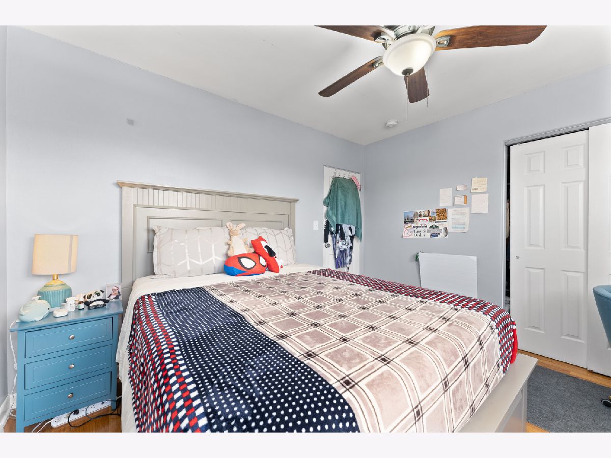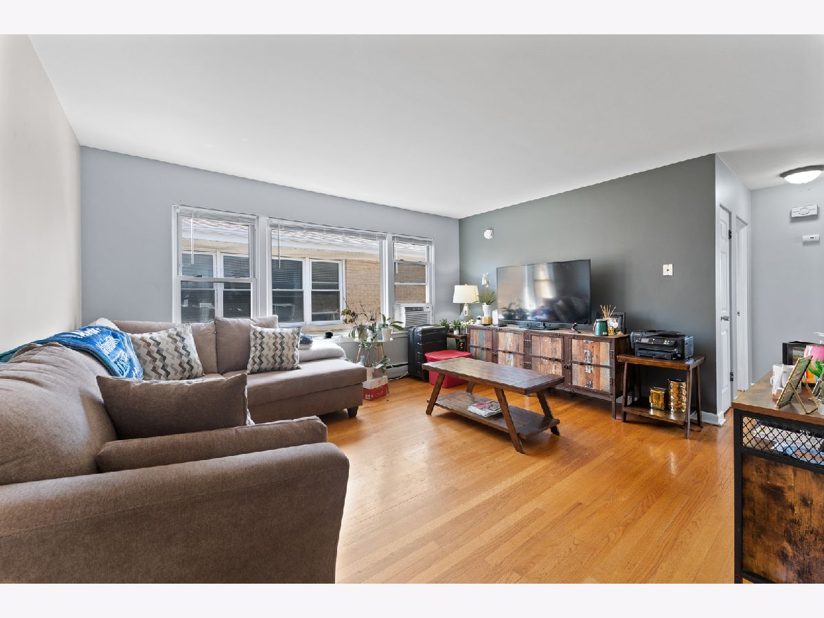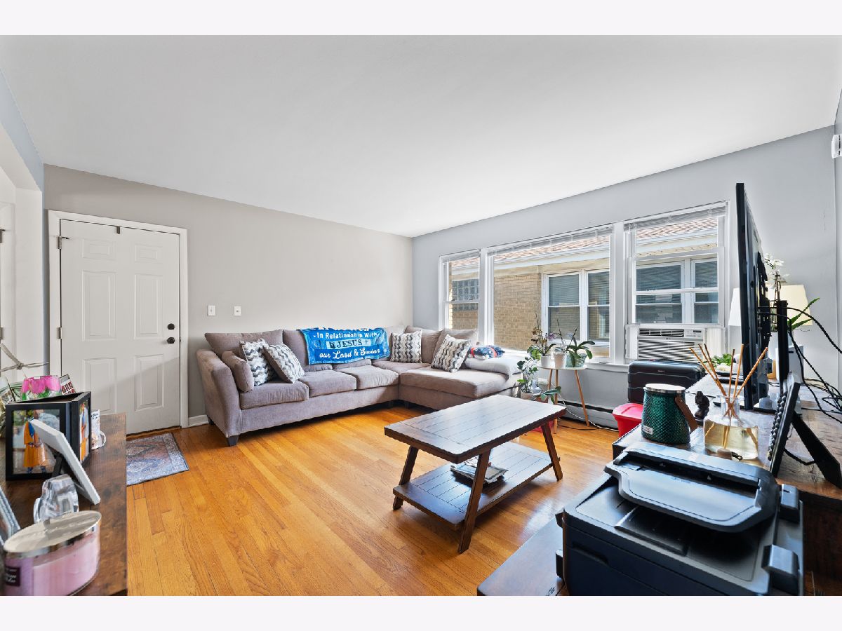 This bright and inviting top floor unit features two generously sized bedrooms and an open layout. The spacious eat-in kitchen has stainless steel appliances, granite countertops, tile flooring, and ample cabinet storage. A nicely updated bathroom and hardwood floors throughout the living room and bedrooms add warmth and charm. Oversized vinyl windows flood the space with natural light. Well-maintained, move-in ready! Enjoy nearby grocery stores, shops, and dining options. Shared laundry facilities are available in the basement. An excellent investment opportunity-rentals allowed! Low monthly HOA covers heat, water, exterior maintenance. Close to Metra and public transportation. A must-see!