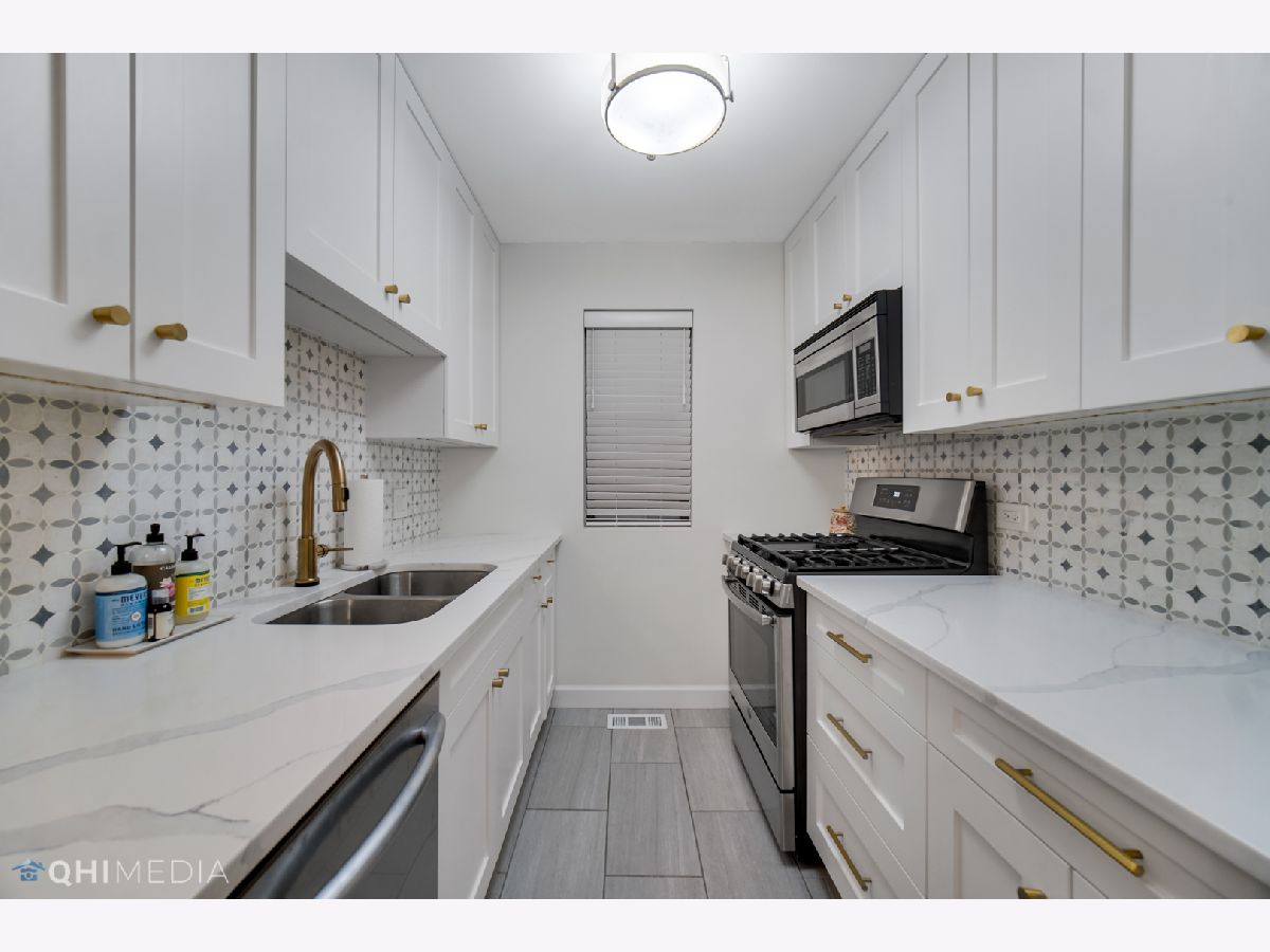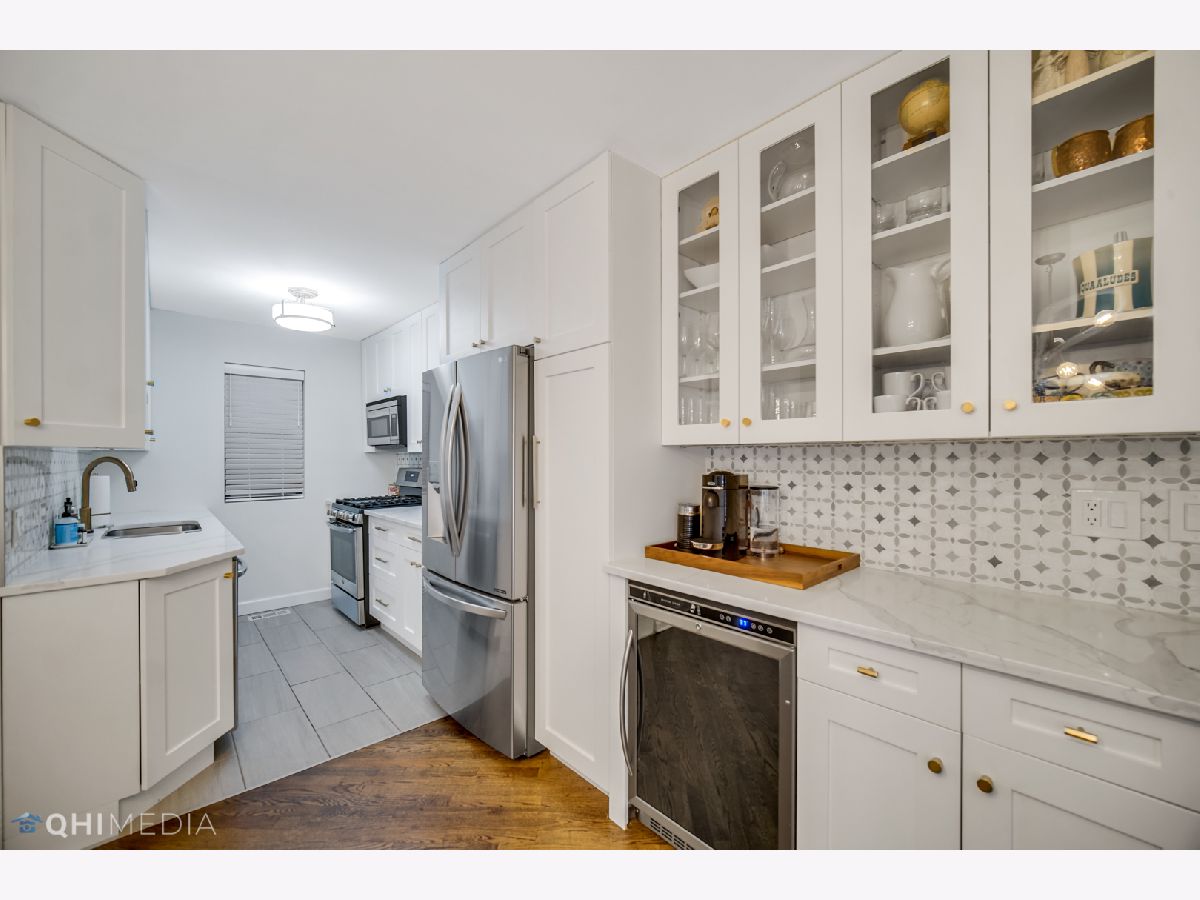 Lincoln Park Living at an INCREDIBLE Price! Beautifully rehabbed 2 Bedroom / 2 Bathroom duplex down. The open concept 1st floor features living room, dining room, office area, kitchen & full bathroom. Lower level has 2 generously sized bedrooms (one w/ exterior access), laundry and full bathroom. Kitchen & both bathrooms have been impeccably updated. In addition to a dry bar & beverage fridge; kitchen boasts on trend cabinetry and quartz counter-tops with tile back-splash + stainless appliances. Both bathrooms have porcelain tile and high-end fixtures. Beautifully refinished hardwood on 1st floor and lovely textured laminate in lower level. Small front yard and large shared back patio space are perfect for outdoor grilling and entertaining. Pet and Investor friendly building! Easy street parking! Excellent location near a plethora of shopping, dining, and transportation conveniences.