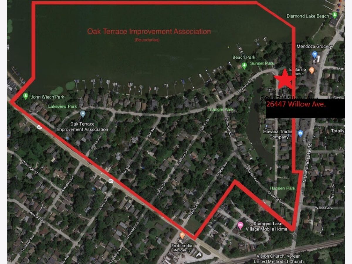 LOCATION, LOCATION, LOCATION. CHARMING 3-bedroom 1 bath home in coveted Oak Terrace subdivision of Diamond Lake in unincorporated Lake County. Subdivision offers lake front recreation with boat docks/ramp available, private beach and multiple parks. Historic lake for boating and fishing, perfect area for outdoor sports in all seasons but only minutes away from shopping, schools and dining. One of the best kept secrets and nicest subdivision in Lake County. Home is quaint and on a large lot. Water views without the water taxes. Finished shed in the back yard with great potential. Has newer roof (2017), and Well Pump (2017). Original Hardwood floors in all bedrooms and ceramic tiles throughout. Great property for those with/seeking an active lifestyle. Can also be a great investment opportunity. AS IS SALE.