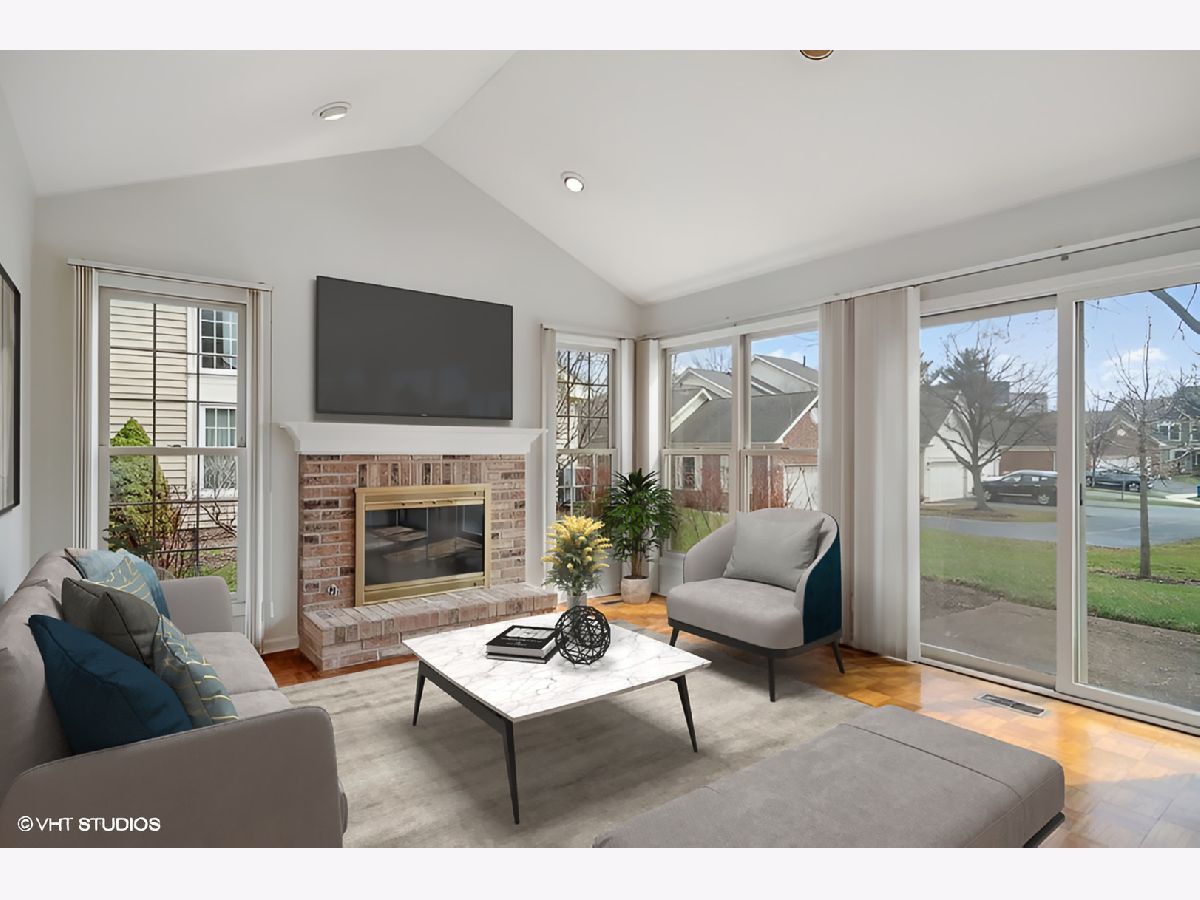 Fantastic 2 Bedroom, 2 Bath END UNIT RANCH Townhome in the HIGHLY SOUGHT AFTER Haverford neighborhood close to Woodfield, 290 and 355! IMMACULATE Townhome has PRIVATE entrance and 2 car garage with loads of storage. SOARING CEILINGS in the Kitchen, Family Room and Master Bedroom, hardwood parquet flooring, brand new carpet in the bedrooms and tons of windows. The Family Room is SO bright and sunny with loads of windows, a sliding door to the private patio, brick fireplace and is OPEN to the Kitchen and eating area. Separate Living Room with bay window and Dining Room, welcoming Foyer and Laundry Room/Mud Room too!! Spacious Primary Bedroom has vaulted ceilings, 2 closets including a walk-in closet and spacious private bathroom. 2nd bedroom and full bath are down the hall. Beautifully maintained neighborhood and landscaping. This townhome is in pristine condition and a must see!!