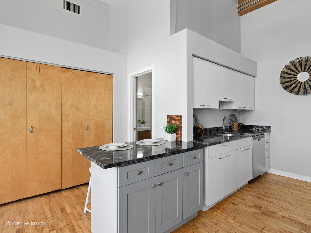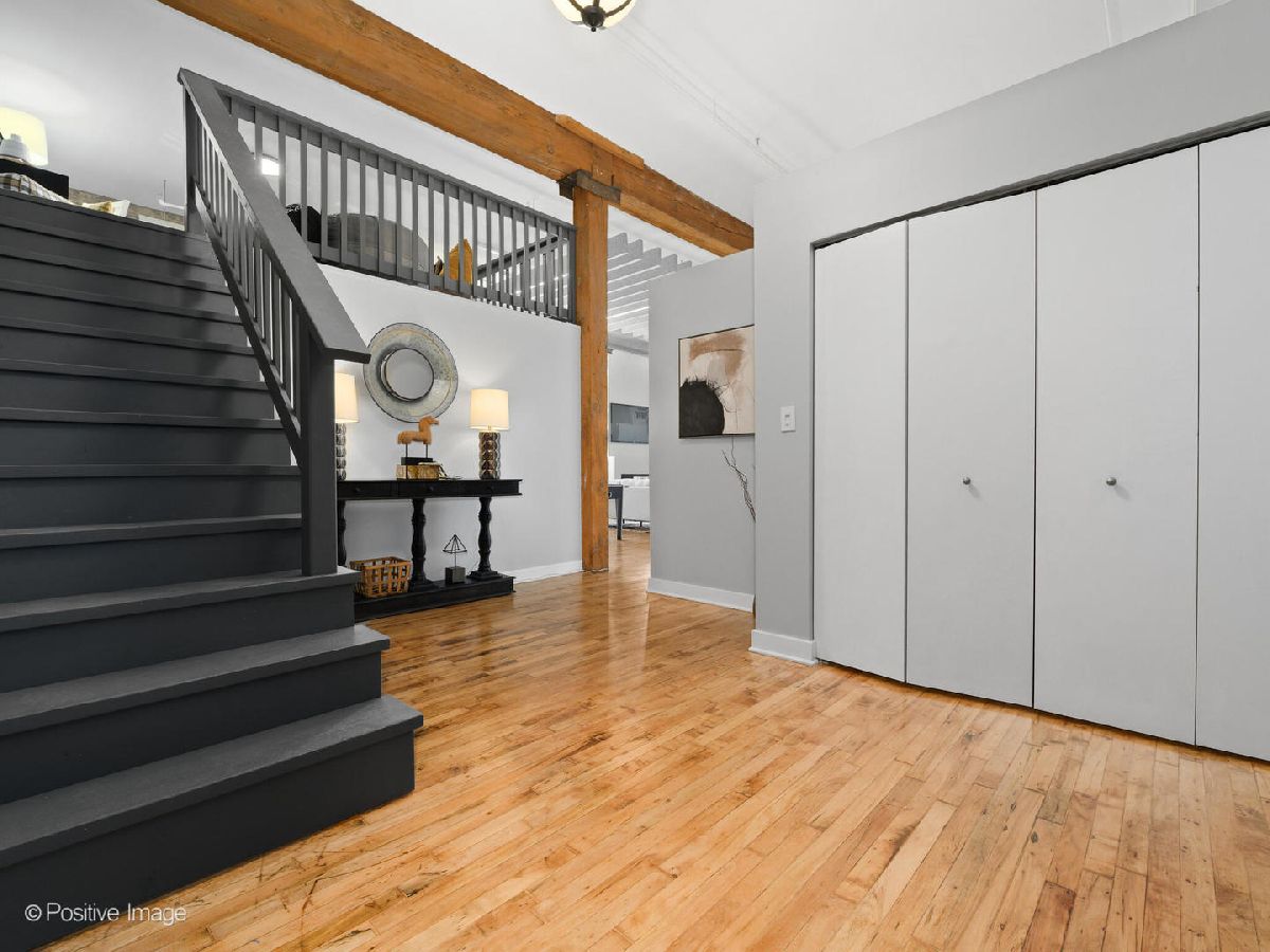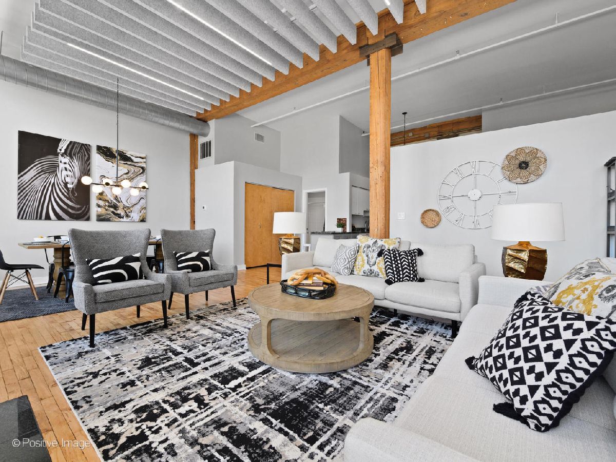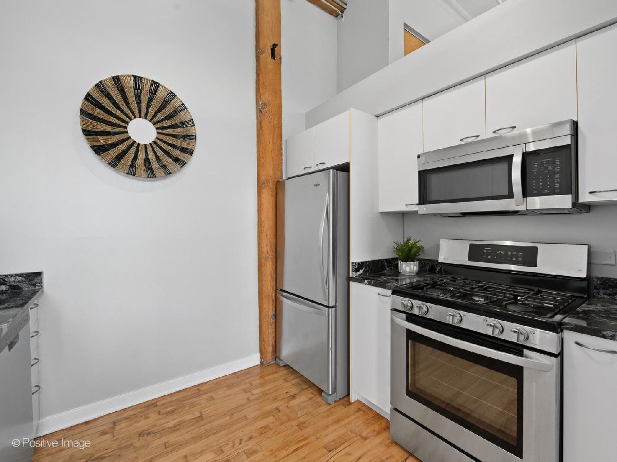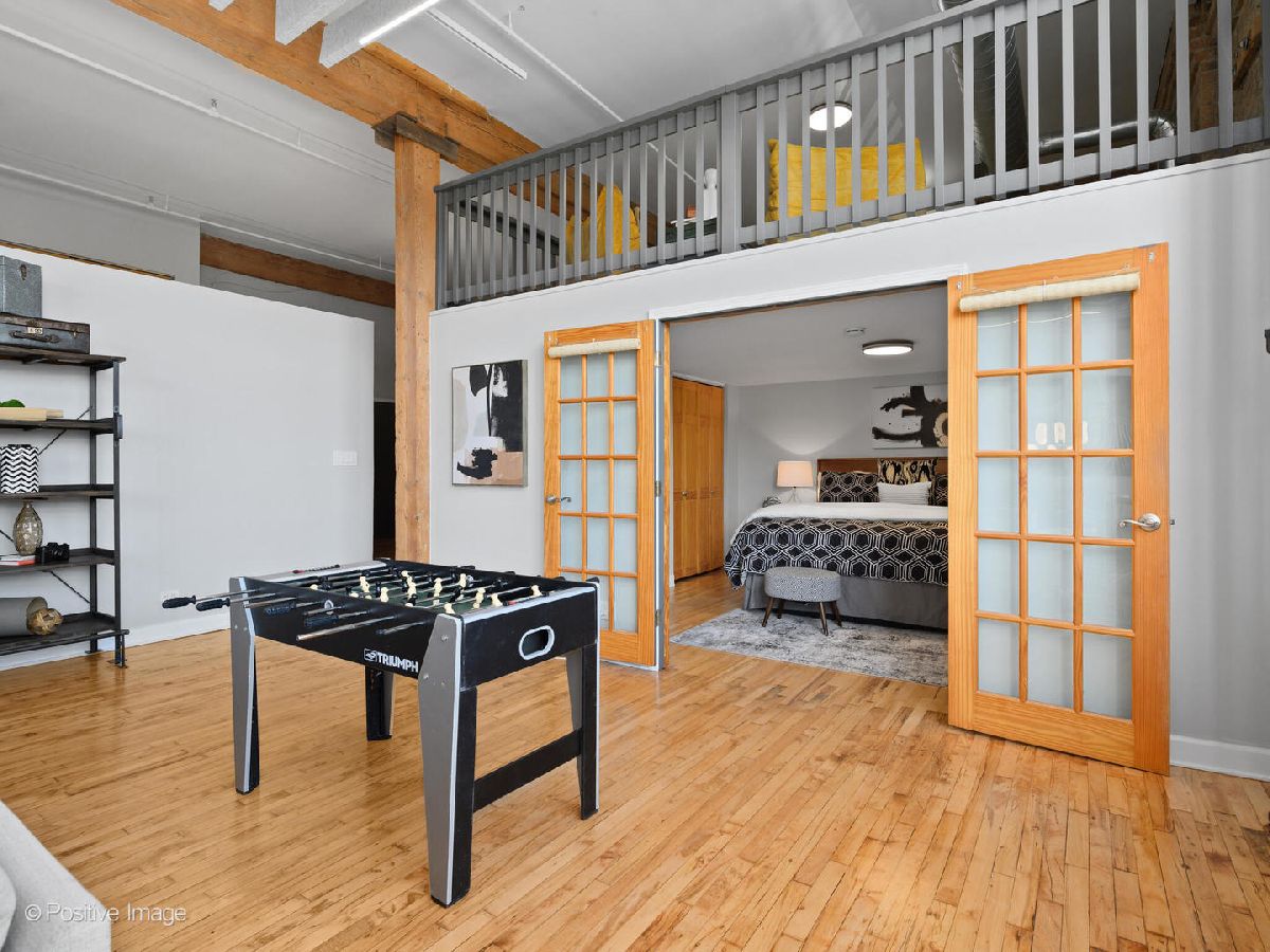 Unique live/work loft in Logan Square! This 2-bedroom + den features over 1700 SQ FT of living space, hardwood floors, 15-foot ceilings, and 2 rows of 10' windows. Step into a large entryway that unfolds into a 700 sq. ft. living and dining space, anchored by a beautifully positioned wood-burning fireplace. The high ceilings have updated light fixtures, fans, and stylish TURF soundproofing. The kitchen features high-end stainless steel appliances, granite countertops, and an eat-in island-perfect for entertaining. The bathroom has been thoughtfully updated with a sleek vanity, complemented by premium Grohe and Kohler fixtures. This unit offers two spacious bedrooms (one enclosed) and an airy loft that could be used as a third bedroom or home office. In-unit laundry, central heating and air, ample closet and storage space, and one exterior parking space complete the home. Fantastic Logan Square location just a block off Milwaukee Avenue, 2 blocks to the blue line and easy highway access. Agora grocery, restaurants, coffee, parks & shopping are all within walking distance.