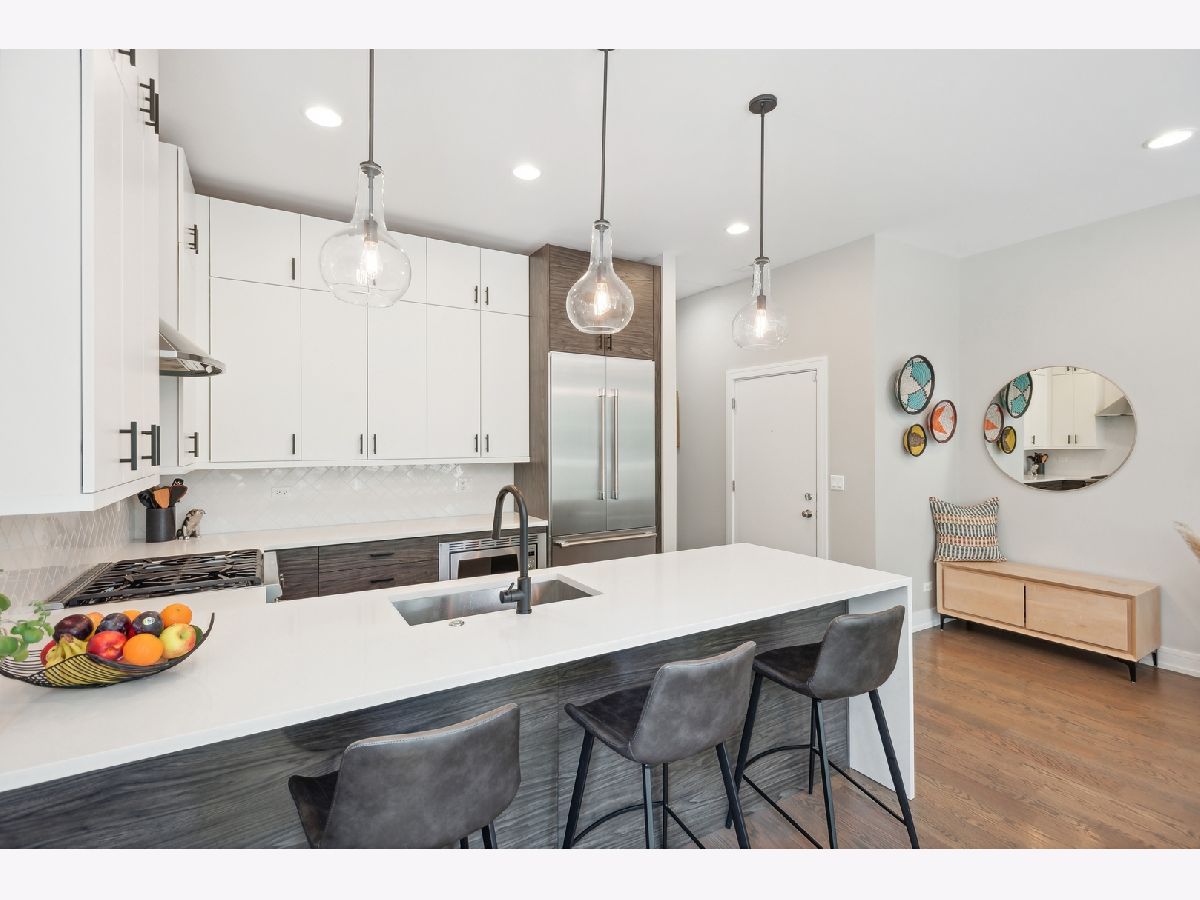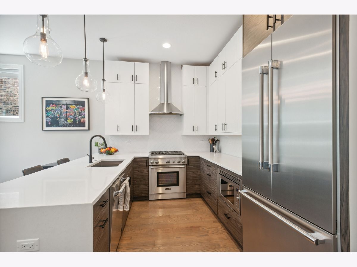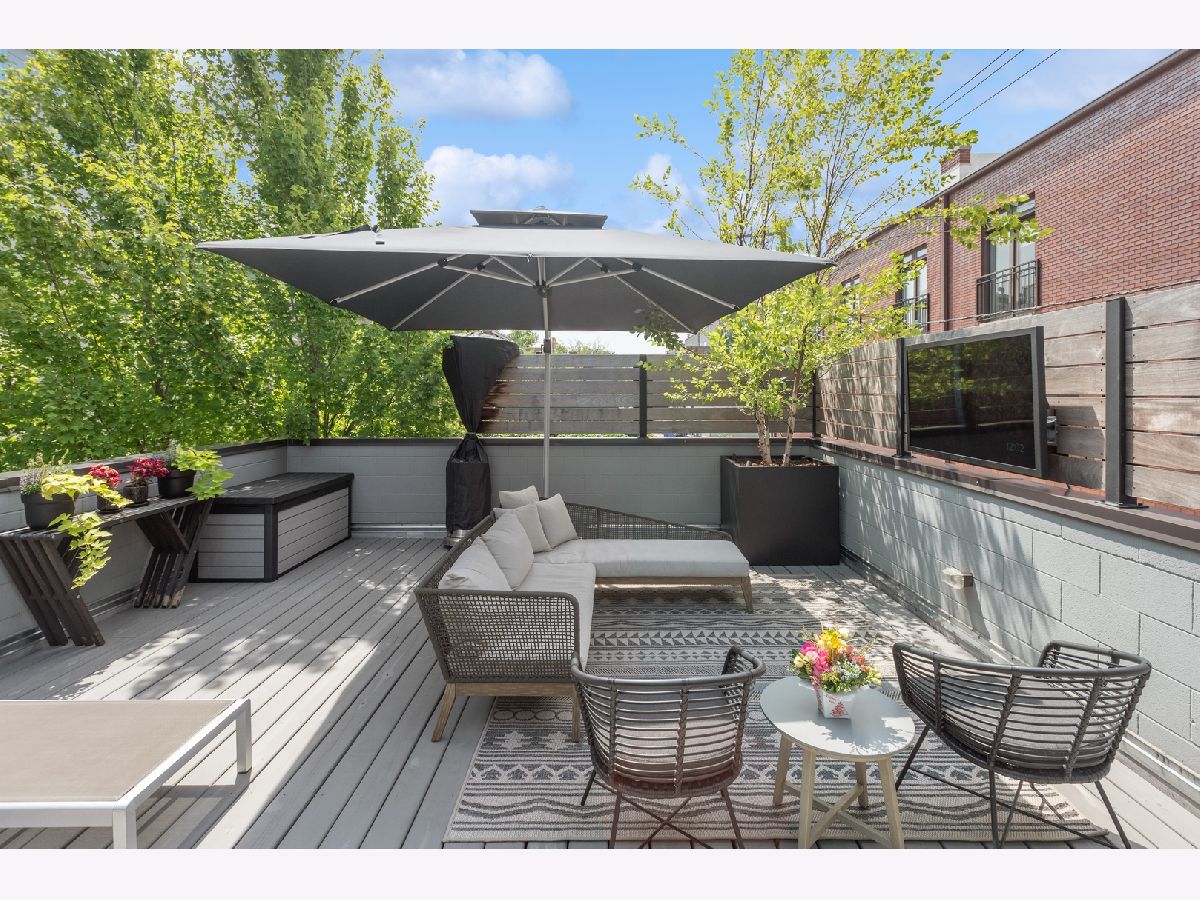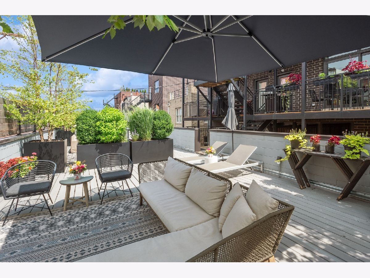 Move right into this very chic all-brick 3 bed /2 bath Lincoln Park modern condo outfitted with designer appointed lighting & finishes throughout. With two outdoor spaces including an enormous 400SF private roof terrace over the garage w/an outdoor all-weather TV and professional landscaping w/ large birch trees, prairie grasses & boxwoods and irrigated planters, this open-concept residence provides the quintessential indoor/outdoor living experience. Enjoy soaring 10-ft ceilings, wide plank hardwood floors, and hardwired Sonos sound system with built-in-ceiling speakers. A fabulous two-toned kitchen - featuring 61.5" custom flat panel cabinets, Quartz countertops/backsplash, a CuZn Water filtration system, and high-end Thermador stainless-steel appliances - opens to an extra-wide living room w/floor to ceiling windows w/custom shades - and to a separate dining area. The primary suite has a walk-in closet and spa bath w/ oversized steam shower, radiant heated floors & floor-ceiling tile work. No detail was overlooked - the place has extra soundproofing, REMO HALO-LED Whole Home In-Duct Air Purifier System (kills 99.9% viruses including the coronavirus), Ecobee Smart Thermostat with Voice Control, smart lights in the living, dining room, and kitchen (from wiz app), and an Alert Security system with camera. Ample street parking for your guests. One car garage spot included. Walk to Wrightwood Park, neighborhood shops and cafes. Easy access to the highway.. Prescott School District. A winner!