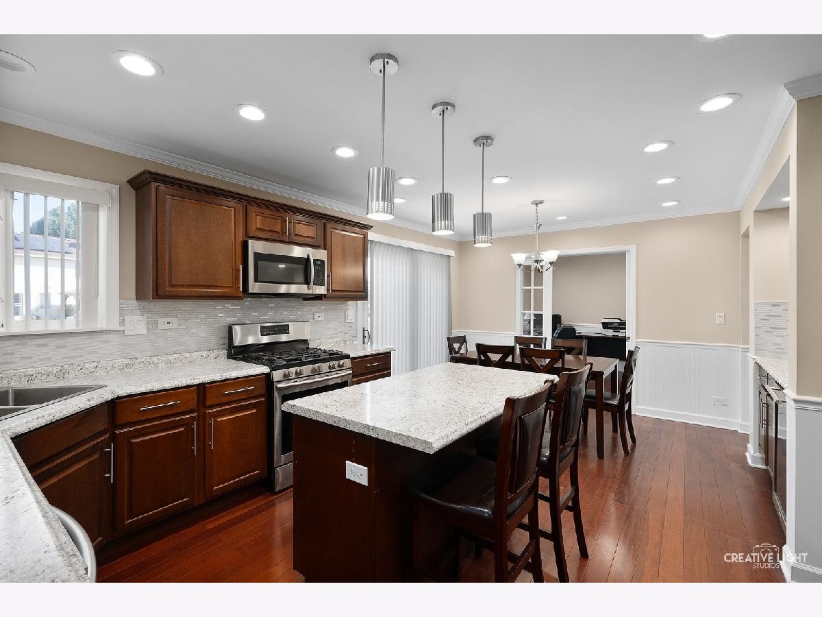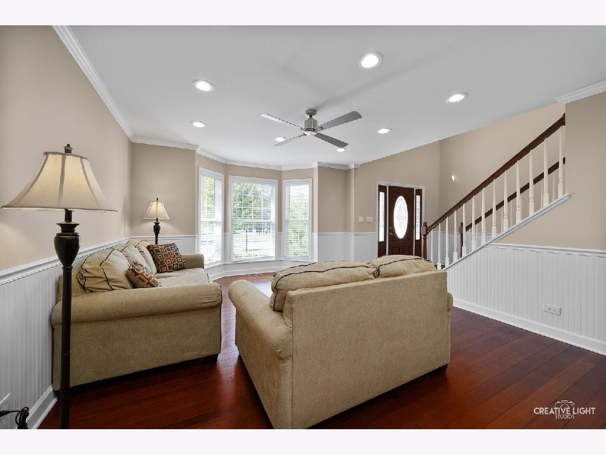 Come on over and check out this beautiful house! They have made many modifications to the home to make better use of space. The house has been freshly painted, with hardwood floors, crown molding, and recessed lighting throughout the whole house. Let us start with the first floor, you have an open floor layout with an office that can easily be converted to a bedroom with its closet you also have the kitchen having stainless steel appliances, a wine fridge, built-in cabinets around the fridge, and a sliding door that leads to your concrete patio for those nice days to sit out and relax with your family and friends! On the Second Floor you have 4 bedrooms with 3 of them having walk-in closets but here is where the good stuff for the homeowners is the Master Bedroom! The Master Bedroom has a 10x9 walk-in closet, a master bath with a separate tub, a walk-in shower with a glass sliding door surrounded by ceramic tile! The basement is framed out, insulated and ready to be finished! This property is in a great location close to RT 30, 47, and I-88, close to shopping centers and restaurants. Here are some things that got remodeled or updated; Remodeled Bathrooms, Laundry Room, New Roof (2024), Patio door (2022), A/C unit (2022), Water Heater (2022), Sump Pump (2022), Ejector Pump (2022), Interior and Exterior Doors (2022), Fans (2022) and lastly the Blinds (2022). Enough reading about it come on over and take a look for yourself! It will not disappoint!