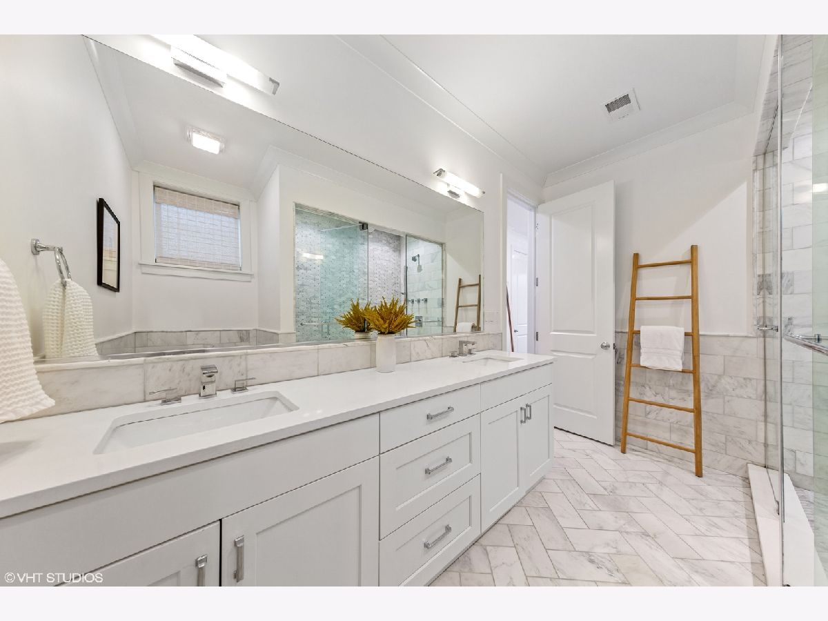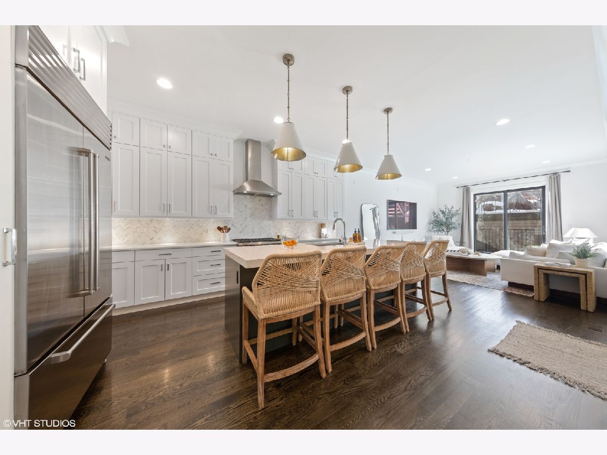 Stunning newer construction 4 bed, 2.5 bath duplex down on quaint tree-lined street in the heart of Lincoln Park. Amenities include custom cabinetry, Wolf and SubZero appliances, quartz countertops, 8' doors, radiant heated floors in the lower level, and a beautiful master bath with steam shower. One car garage parking included. Stunning 4 Bedroom Duplex-Down in Prime Lincoln Park Location has High-End Finishes and 3 Outdoor Spaces....an Entertainer's Dream Home! This massive condo is the perfect single family home alternative and features 10 ft. ceilings, 8 ft. high solid core doors, crown molding, and custom light fixtures throughout. Formal living and dining room has gas fireplace with stone surround and a private covered front terrace. Designer Chef's Kitchen features tons of oversized cabinetry and massive custom built pantry closet, professional series appliances include Wolf range & Sub-Zero Fridge, quartz counters, herringbone tile backsplash, and an over-sized island for 4/5 bar stools. Kitchen also has a large eat in breakfast area, ideal for e-learning or a perfect children's play area. Spacious family room ideal for entertaining, leads you to one of your three outdoor spaces, perfect for grilling! All 4 spacious bedrooms and 2 full baths with radiant heat floors on lower level. Primary bedroom is large enough for a king size bed, two nightstands, a dresser, and also has duel walk in his/hers custom closets. Primary bathroom has raised-height double vanity with white quartz countertops and MASSIVE walk-in frameless steam shower with marble tile. Second bathroom has a grey tiled bath/shower combo along with white quartz counter and custom hex tile flooring. In-unit laundry, tons of storage throughout including custom built out "California Closets", and garage parking included. Prime Lincoln Park location close to restaurants, shops, Diversey & Fullerton Brown & Red El and in highly desirable Agassiz School District!