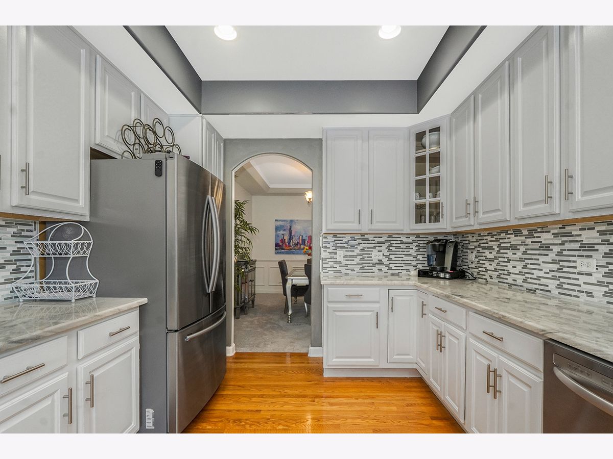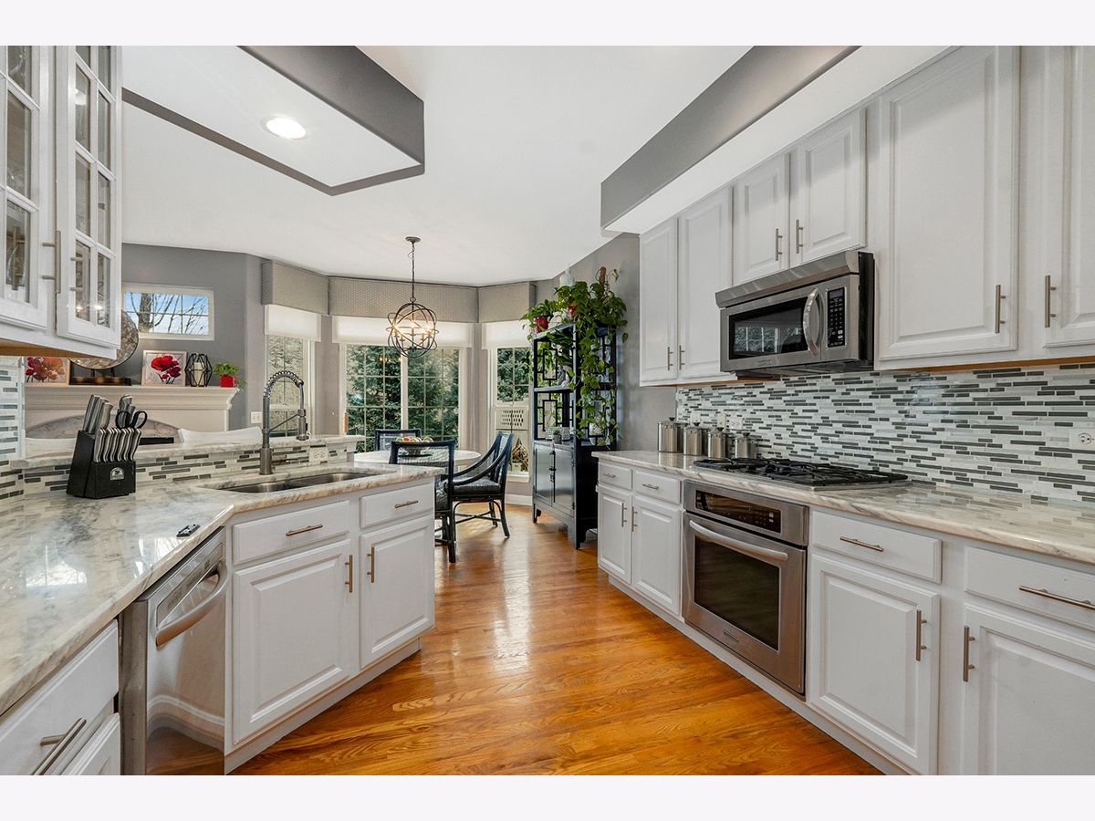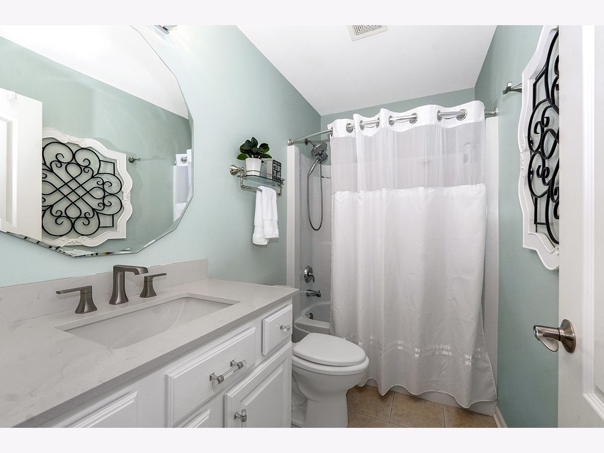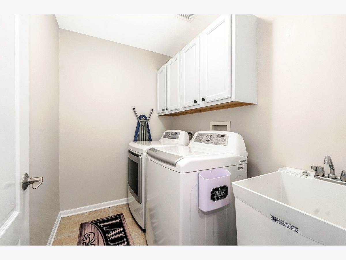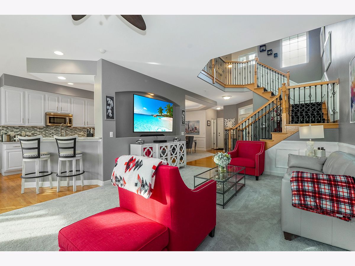 Beautiful, elegantly decorated North facing 2-story townhome with full basement and attached 2 car garage located on a quiet cul-de-sac~The private entrance features a front porch with room for a small table and chairs along with a gorgeous leaded glass door and sidelight~Upon entering you'll be greeted with hardwood flooring and a breathtaking open floor plan with an abundance of natural light~The chef's kitchen offers plenty of white cabinets, recessed lighting, tasteful glass tile backsplash, stainless steel appliances, and granite countertops including a breakfast bar with room for stools~Not only will you find a formal dining room with a high tray ceiling but the separate eating area off the kitchen has sliding glass doors overlooking the extended, updated stone patio~Make your way up the gorgeous turned staircase with wrought iron spindles where the ceiling opens up to skylights~The master bedroom suite has plenty of room with a high vaulted ceiling, bay windows, good-sized walk-in closet PLUS a double door closet, and a private luxury bathroom with gentleman's height dual vanity, separate shower and a jetted tub~You'll also find a large 2nd bedroom, 2nd floor laundry and a generous sized loft that could easily be a 3rd bedroom, office space or 2nd floor family room~First floor powder room and 2nd floor bathroom recently remodeled~Additional features include a gas fireplace with white/gray stone surround in the living room, white doors and trim, nickel hardware, updated light fixtures and high 9' ceilings and wainscoting throughout the first floor~Located just minutes to shopping, restaurants and all that Rt. 59 and downtown Plainfield have to offer~You won't be disappointed!