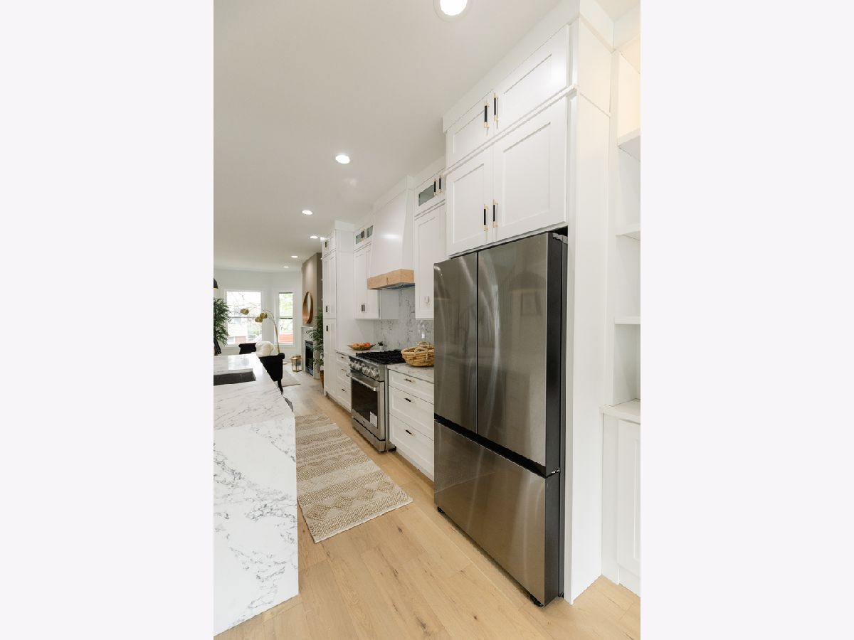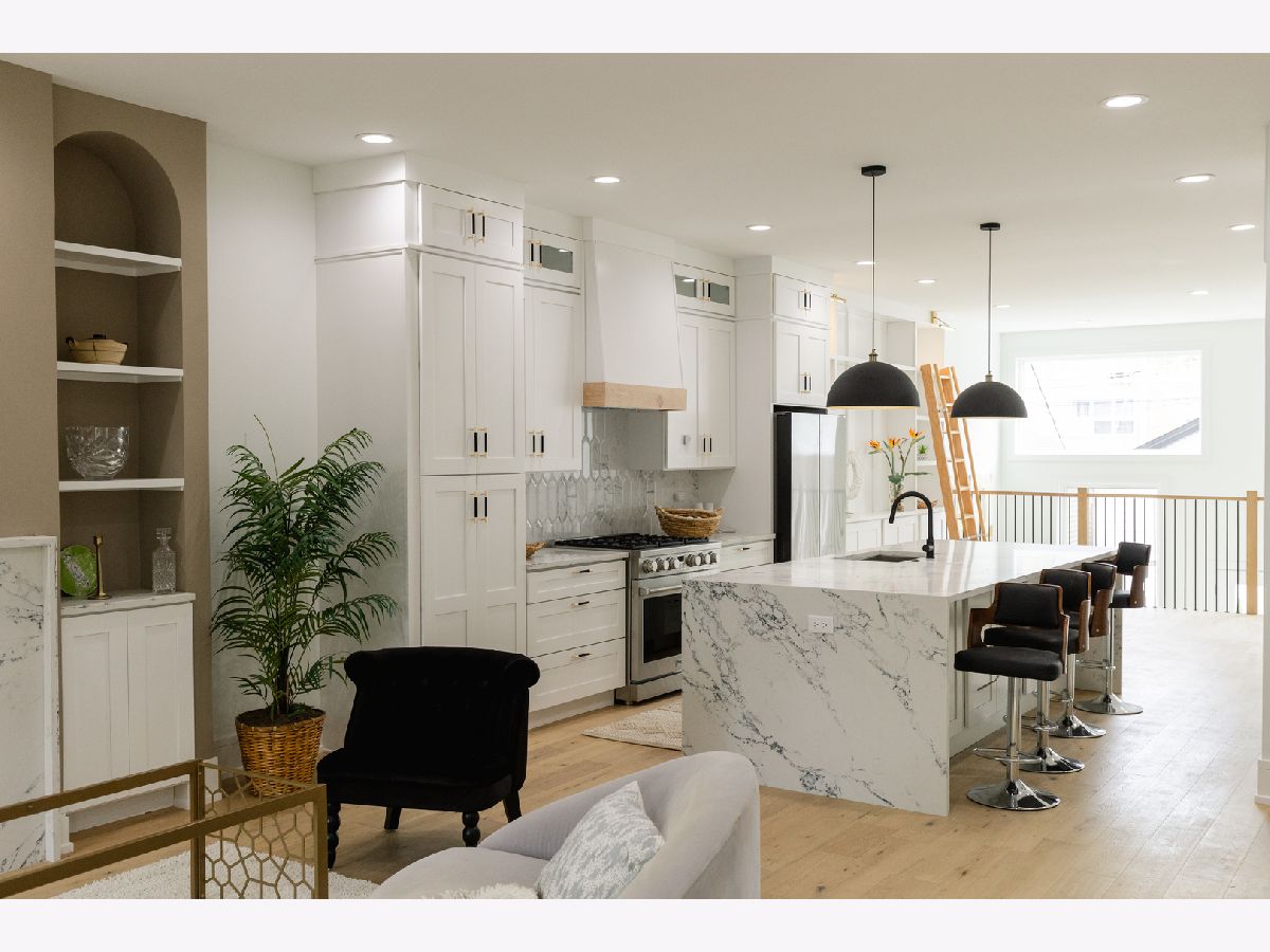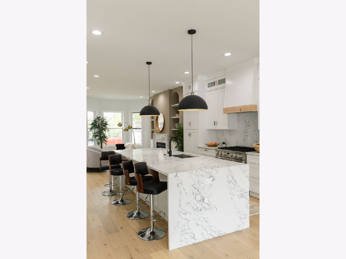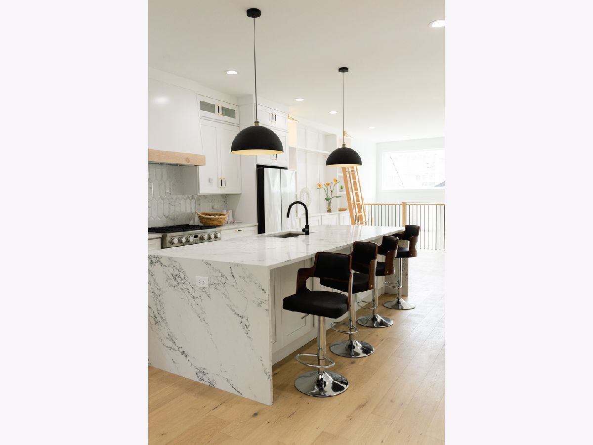 High quality developer has created the epitome of modern elegance. Stunning rehab of an extra large 5 bedroom/3.5 bath home in Avondale. Wide white oak flooring throughout along with custom cabinetry and millwork. Main level features an entertainer's kitchen boasting an oversized island with double waterfall edges and cabinetry on either side. This level also features a powder room along with a large family room and built in breakfast nook. The 2nd floor features the primary bedroom with a colossal master closet and a dual vanity bathroom with a marble spa shower. This level also features 2 more bedrooms, an additional bathroom, a side by side laundry room, and a thoughtful linen closet. Well appointed mud room off back door. The basement features 8'6" ceilings with a large rec room + 2 more bedrooms and a bathroom. Custom closets throughout. Zoned HVAC. Two car garage. Just a few blocks away from prime Logan Square restaurants.