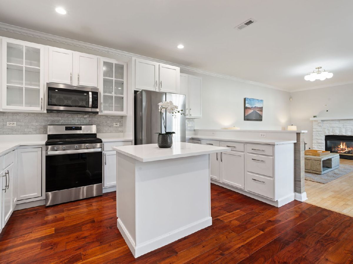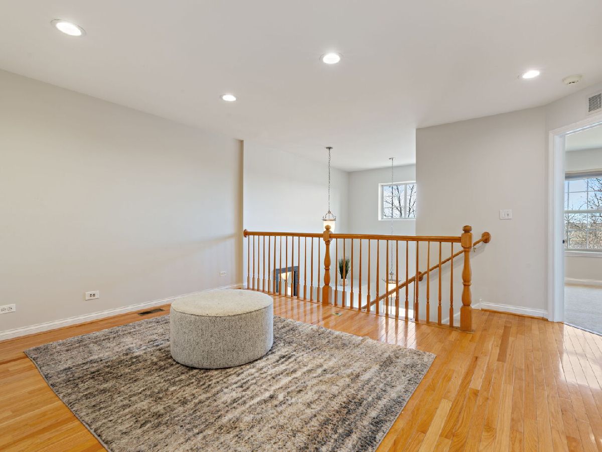 Experience Prime Glenview Living in the Glen. This Spacious Townhome overlooking park & walking path. Step into this bright and inviting 3-bedroom, 3.5-bath townhome that offers the privacy and feel of a single-family home. Designed for both comfort and style, this home features pristine hardwood flooring and a sun-filled living room that sets the perfect tone. The beautifully upgraded kitchen boasts newer cabinetry, countertops, and island seating which is complemented by stainless steel appliances, a custom backsplash, and an eat-in space that flows seamlessly into the dining/family room with a striking stone fireplace-ideal for gatherings. Upstairs, you'll find two spacious bedrooms, a versatile loft which would make a great home office or can be converted in a bedroom if desired. The primary suite is complete with handsome hardwood floors sitting area/office space & a huge walk-in closet with wall paper adding a eloquent touch. The spa-like en-suite bath featuring a soaking tub, large separate shower, and dual vanities. The fully finished basement expands your living space, offering a generous family room, wet bar, a second laundry area, and a private third bedroom with a full custom shower -a perfect setup for an in-law suite, college student, or out-of-town guests. Attached Two-Car Garage with Ample Storage with extra refrigerator. Updates include: Roof 2024, Refrigerator 2023, Heat 2024. Interior design decorating & recent painting. Located in a highly desirable neighborhood & Location Walk to Kohl's Children's Museum, The Glen shops, parks, lake, restaurants, and within top-rated school districts. Don't miss this opportunity-schedule your showing today!