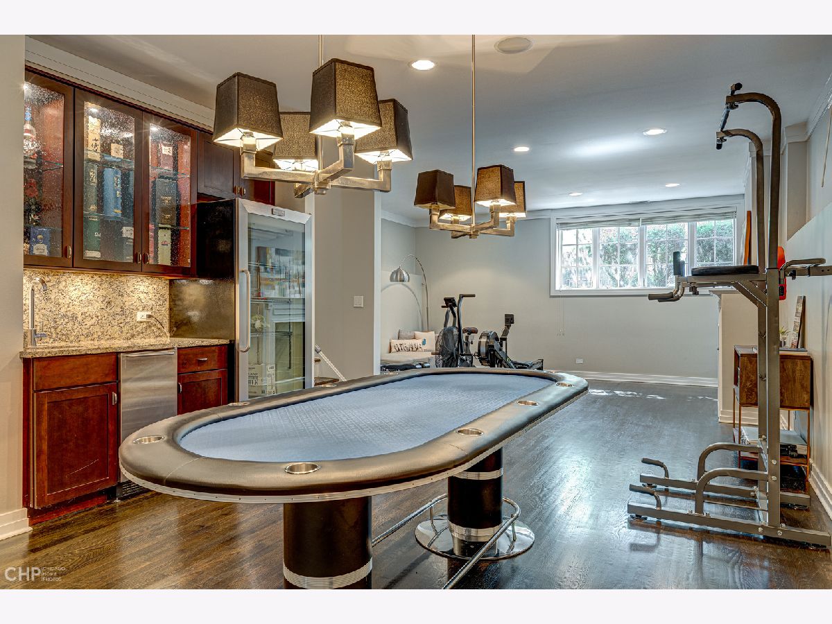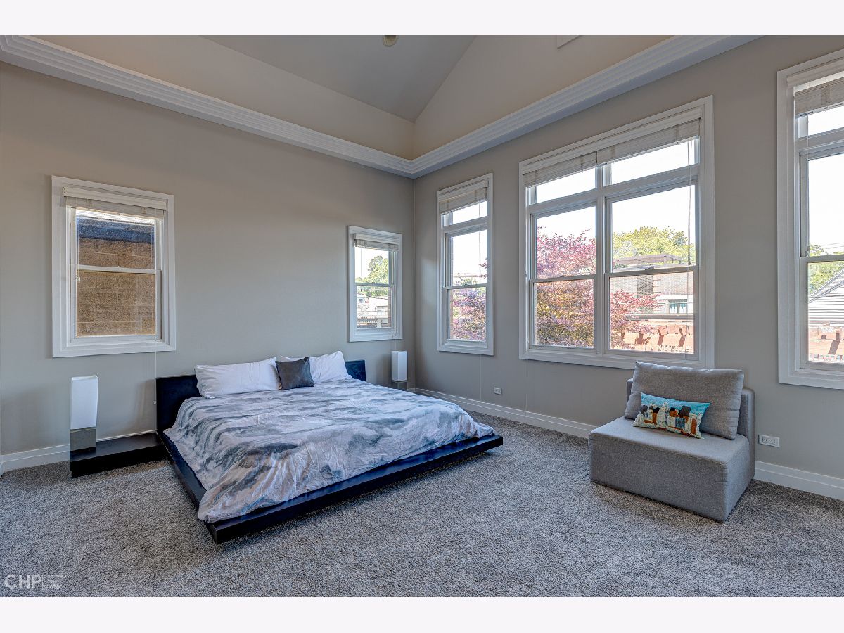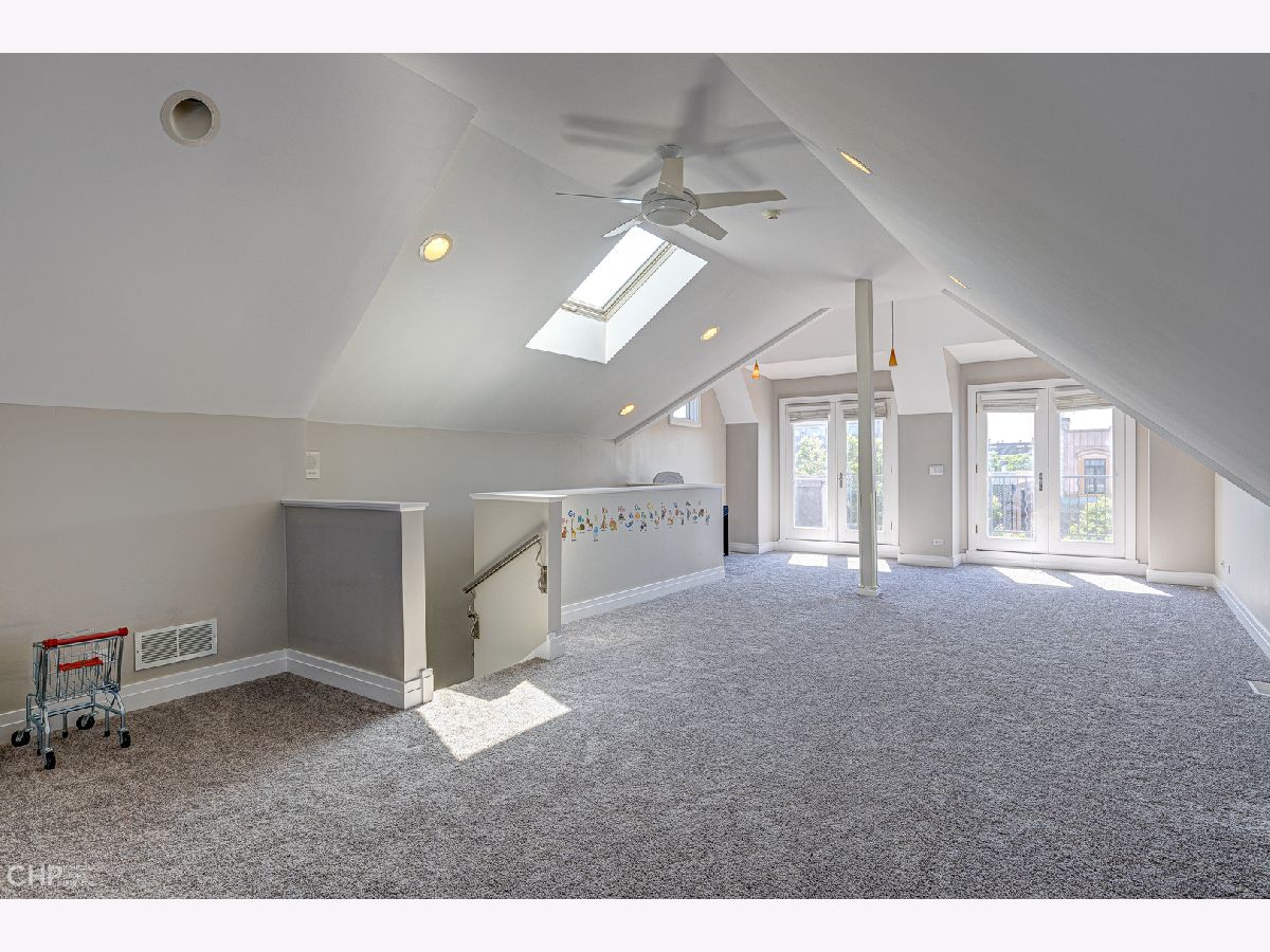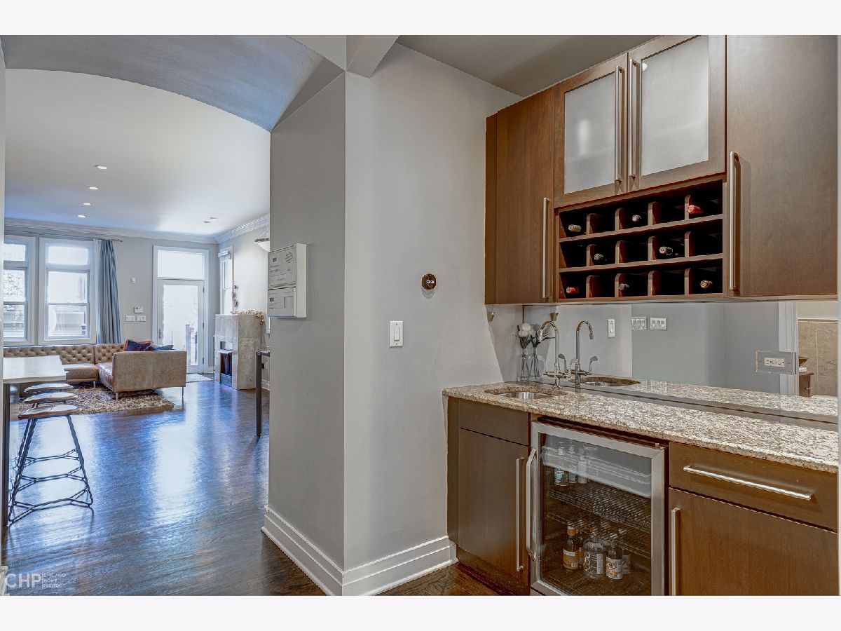 Four floors of expansive light-filled living in a modern brick three-story house nestled in West Lincoln Park between Bucktown and Roscoe Village. The first floor open plan includes an entry hallway with fireplace, dining room, wet bar, kitchen with modern quartz countertops, island, and stainless steel appliances, powder room, and living room with a second fireplace. The primary bedroom on the second floor boasts 18 foot vaulted ceilings, its own fireplace, walk-in closet, and skylit bathroom complete with whirlpool bath and steam shower. The second floor provides integrated family living with three additional bedrooms, two more full bathrooms, and front-loading side-by-side oversized Kenmore washer and dryer. The third floor features a large lofted open den, a balcony, and additional roof deck access. The fully finished basement has another family room, two additional bedrooms, a full bathroom, a fourth fireplace, a wine cellar, a second wet bar, a second refrigerator, and a deep freezer. Two HVAC systems keep all levels at the right temperature with electronic digital interface (Nest). Carefully placed, shelved, and generous closets allow plenty of storage throughout the house, and the spacious 2-car detached garage offers additional storage, as well as another rooftop deck. Easy parking on a quiet, tree-lined residential street, easy access to supermarkets and superstores. Near multiple parks and daycare options, centrally located for quick commutes in all directions. Enjoy close to 5000 square feet of elegant and updated living space tucked in the heart of West Lincoln Park.
