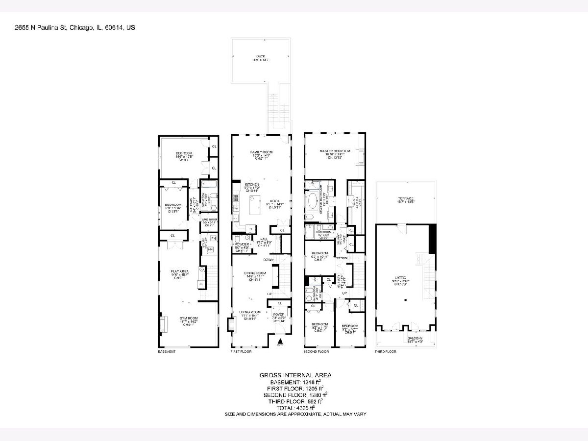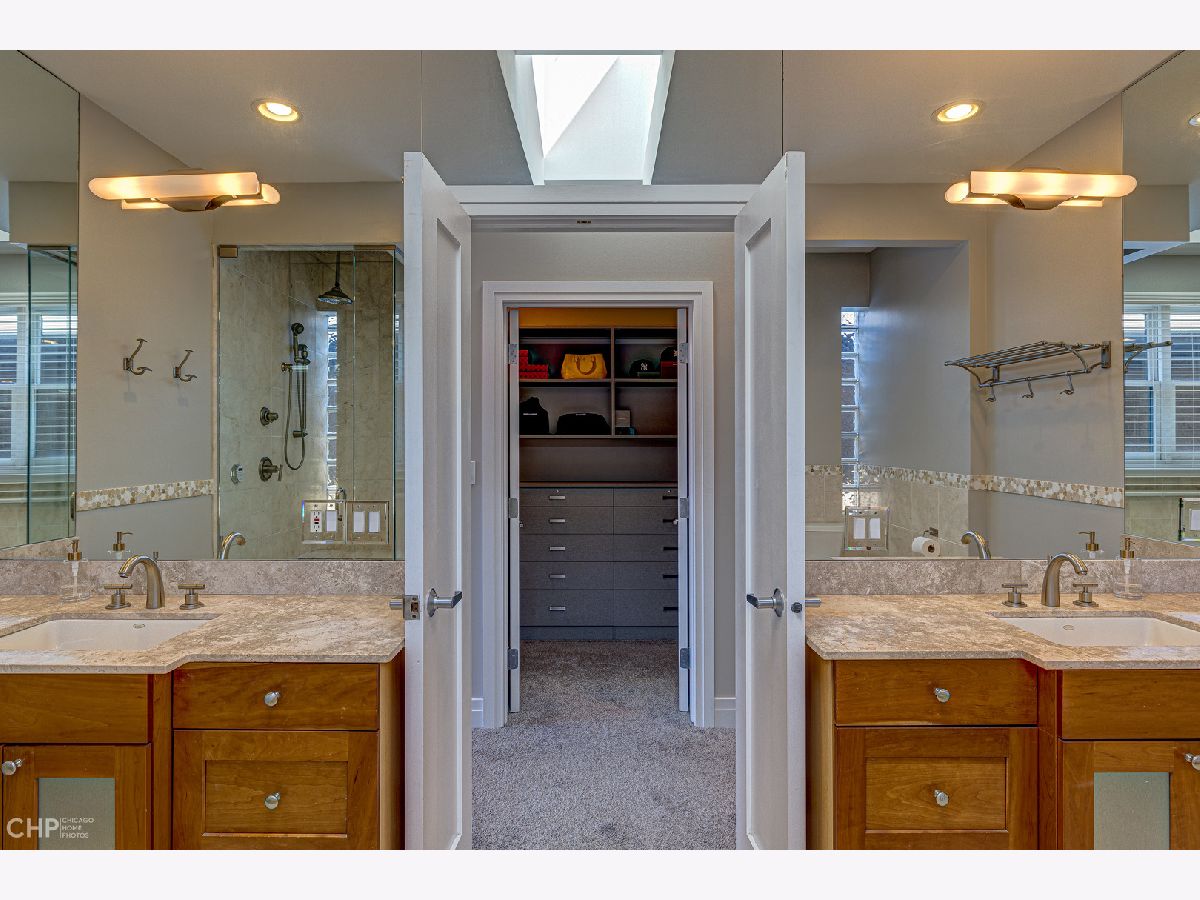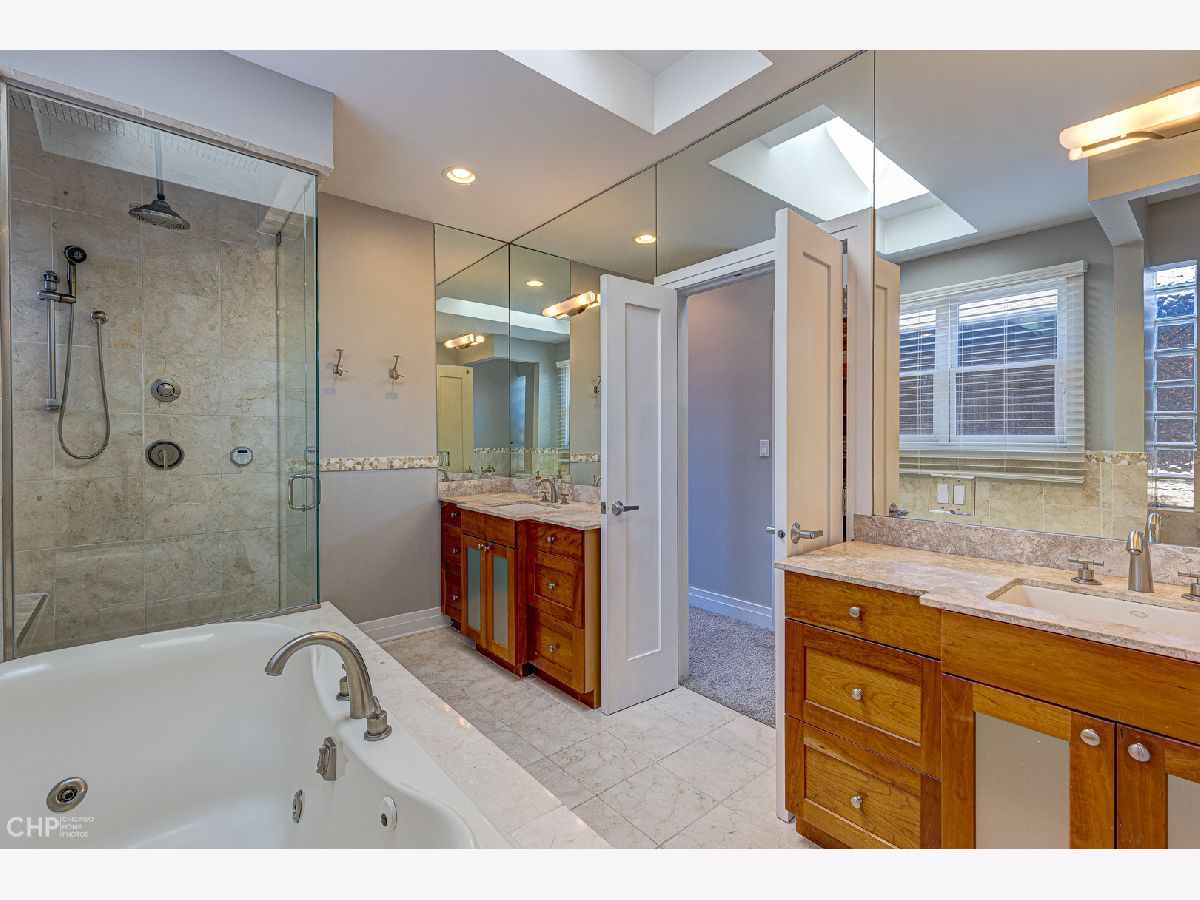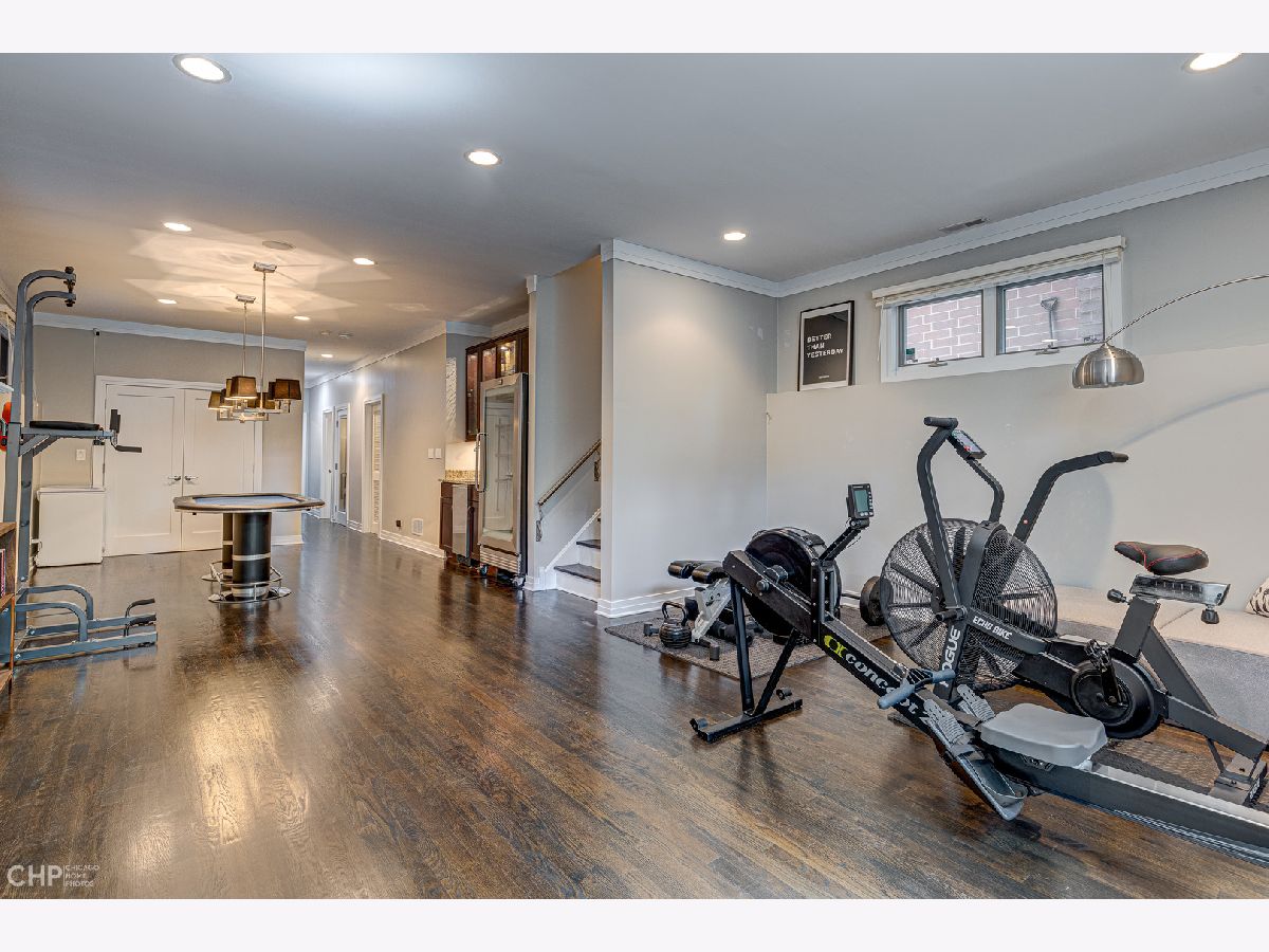 Four floors of expansive light-filled living in a modern brick three-story house nestled in West Lincoln Park between Bucktown and Roscoe Village. The first floor open plan includes an entry hallway with fireplace, dining room, wet bar, kitchen with modern quartz countertops, island, and stainless steel appliances, powder room, and living room with a second fireplace. The primary bedroom on the second floor boasts 18 foot vaulted ceilings, its own fireplace, walk-in closet, and skylit bathroom complete with whirlpool bath and steam shower. The second floor provides integrated family living with three additional bedrooms, two more full bathrooms, and front-loading side-by-side oversized Kenmore washer and dryer. The third floor features a large lofted open den, a balcony, and additional roof deck access. The fully finished basement has another family room, two additional bedrooms, a full bathroom, a fourth fireplace, a wine cellar, a second wet bar, a second refrigerator, and a deep freezer. Two HVAC systems keep all levels at the right temperature with electronic digital interface (Nest). Carefully placed, shelved, and generous closets allow plenty of storage throughout the house, and the spacious 2-car detached garage offers additional storage, as well as another rooftop deck. Easy parking on a quiet, tree-lined residential street, easy access to supermarkets and superstores. Near multiple parks and daycare options, centrally located for quick commutes in all directions. Enjoy close to 5000 square feet of elegant and updated living space tucked in the heart of West Lincoln Park.