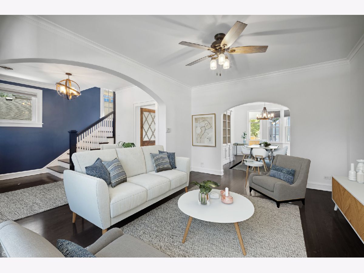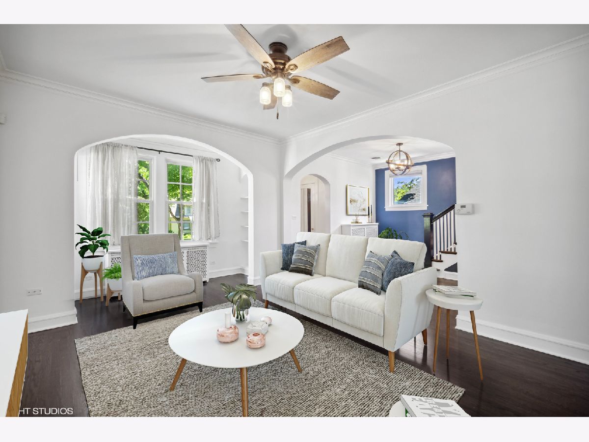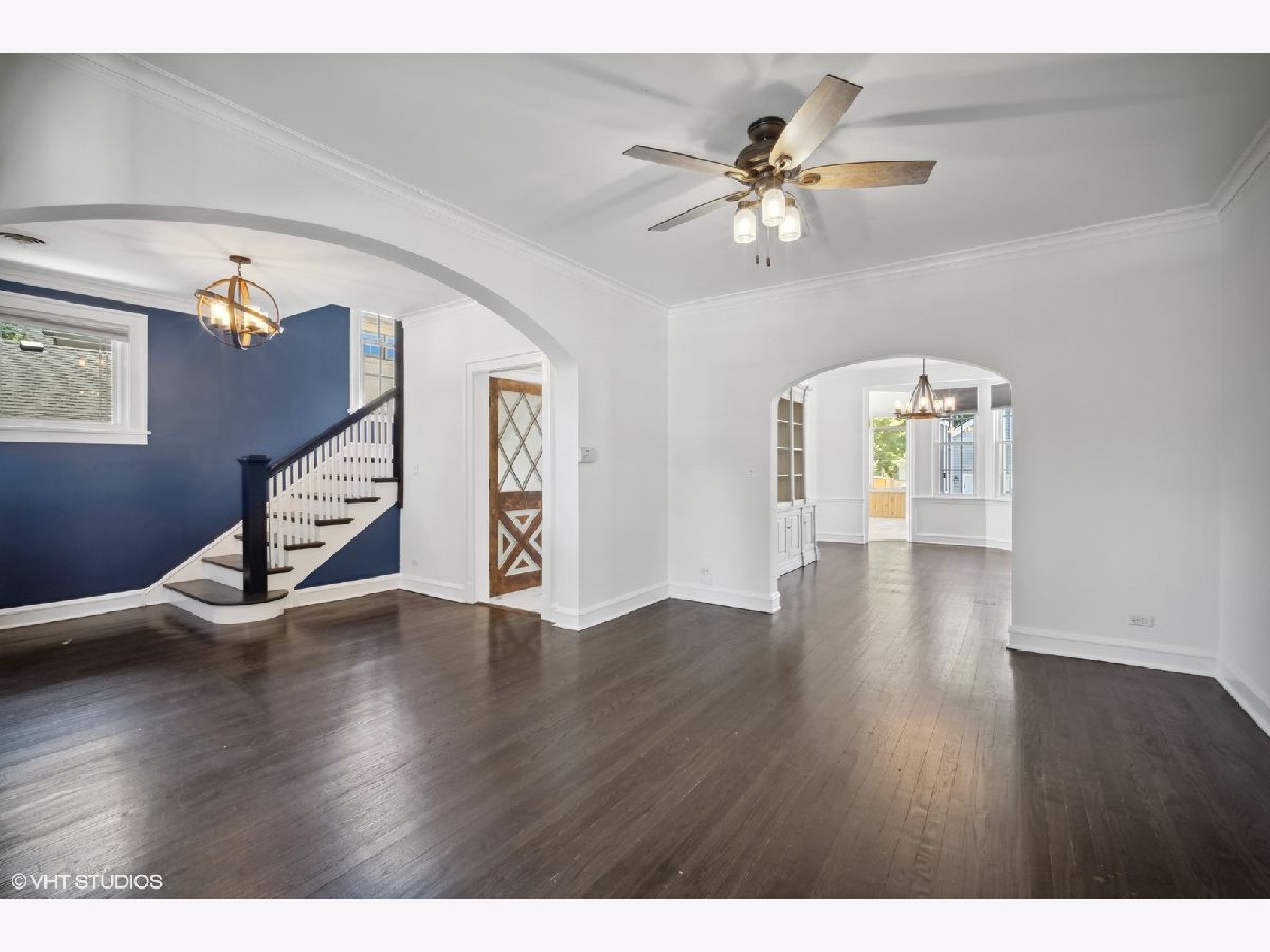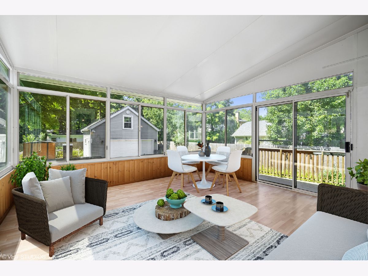 This updated charming home is in a perfect close to everything Northeast Highland Park location! Main level includes foyer and living room which leads to separate dining room all with recently refinished Hardwood floors, newer lighting fixtures and freshly painted, as well as an updated kitchen and bonus all season sun room with its own HVAC system. Kitchen was remodeled this year with painted cabinets, new tile backsplash, Quartz counter tops and tile flooring. Additionally, there is a toilet closet just off the kitchen which could be expanded to be a full powder room. Second floor includes newer carpeting with oversized primary, 2 additional bedrooms and full bathroom with new vanity and flooring. Lower level has full unfinished basement with second full bath just waiting for your ideas! 2.5 car detached garage with attic has recently built out living space. This gem of an extra room was fully finished in 2021 with its own updated electrical and heating/cooling - perfect for work from home, exercise or lounging. Large Trex deck in back with fully fenced in yard and lovely landscaping. Easy access to: Port Clinton Park (across the street!), Moraine beach, Highwood and Highland Park Metra stops, downtown Highland Park, lakefront, schools, etc.