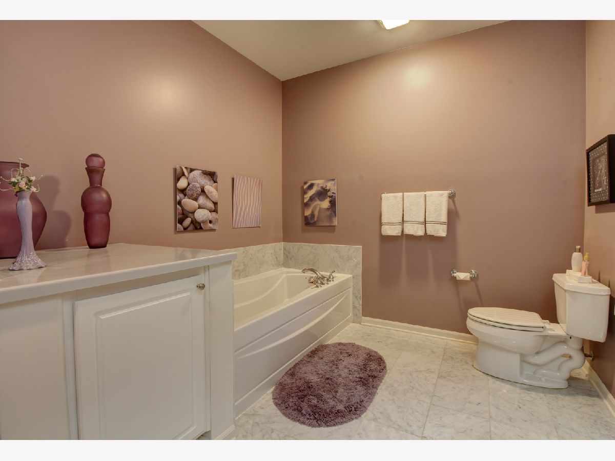 WOW, not just your traditional end unit condo in Bartlett town center. Uniquely designed, semi-custom layout with gourmet kitchen including 42 inch cabinets, granite countertops, top of the line stainless steel appliances and recessed can lighting. Eating area nook adjacent to large office/dining room and huge living room with cozy built-in electric fireplace. Master bedroom suite includes a huge 8 x 6 walk-in closet and a beautifully designed master bath with marble floors, double vanity Kohler sinks, soaker tub and oversized shower with marble tile surround. Enjoy warm summer nights and the Bartlett fireworks from your 11' x 6' balcony. Unit comes with two of the best parking spots in the complex and a 12' x 9' storage locker. HOA includes water and gas. Electric bills are frequently below $50.00 per month. Conveniently located next to Downtown Bartlett, metra train station, shopping and ton of new restaurants.