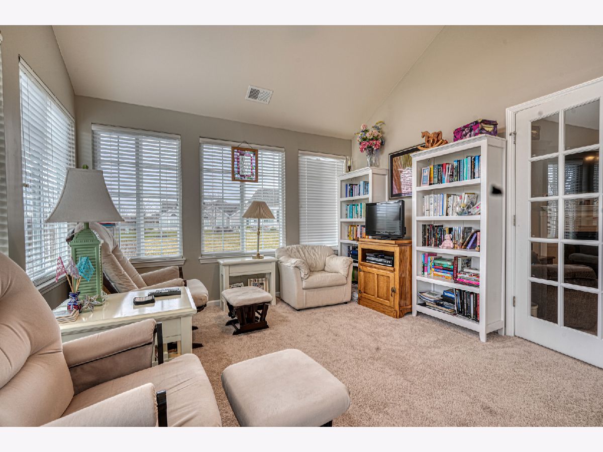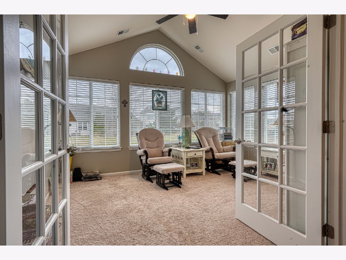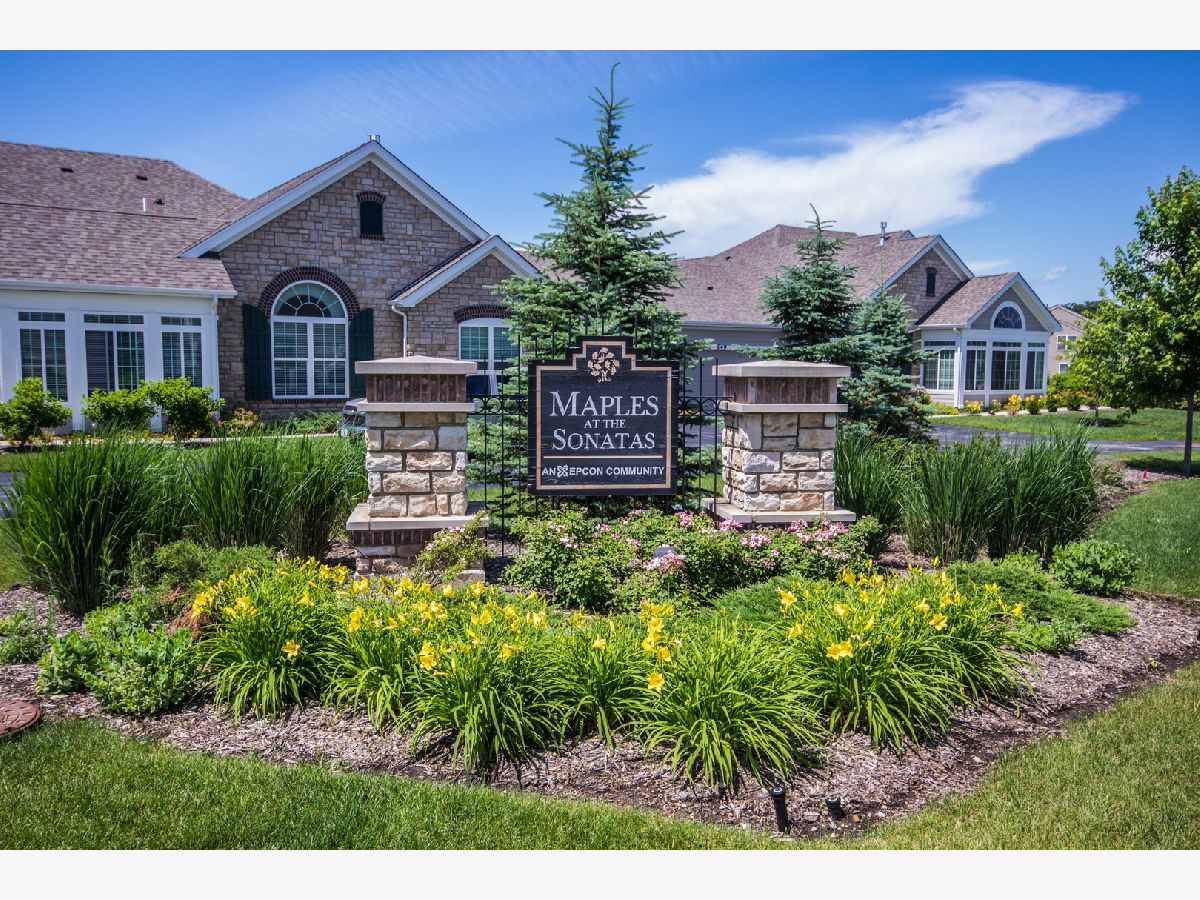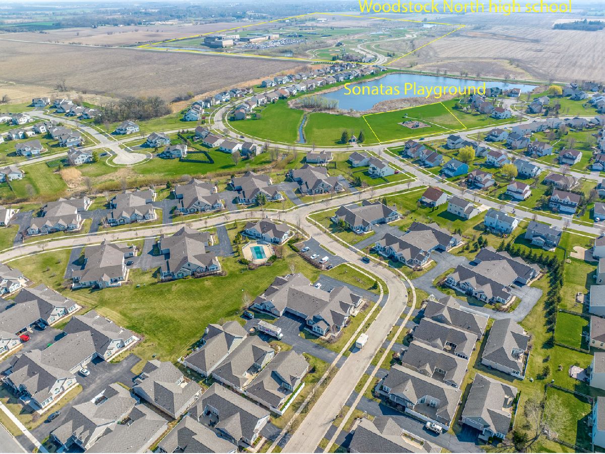 RANCH beauty in the Maples of Sonatas. SUNROOM is the best room in the house with vaulted ceilings and tons of natural light! In fact Vaulted ceilings in ALL the rooms! Living Room with GAS fireplace and heatilator for cozy days & nights. Kitchen is a chef's delight, featuring HARDWOOD floors, custom cabinets, crown molding, lower pullout shelves and modern STAINLESS appliances; a large PANTRY too! The Primary bedroom is a true retreat complete with a vaulted ceiling, an ENSUITE full bath, and a spacious WALK-IN closet. DEN is perfect for a home office/TV room or even a 3rd bedroom. Water Heater (2022), Central Air Conditioner (2023). Garage is insulated in both walls and ceiling. Heated entryway gutters. Enjoy the privacy this location provides - it even backs to the Creek. Neighborhood Clubhouse features the best OUTDOOR POOL, fitness center and fabulous group activities like book clubs and so on! Short drive to the Woodstock Square, shopping, dining and METRA commuter train! Short drive to Lake Geneva fun too! Single level living at it's BEST!