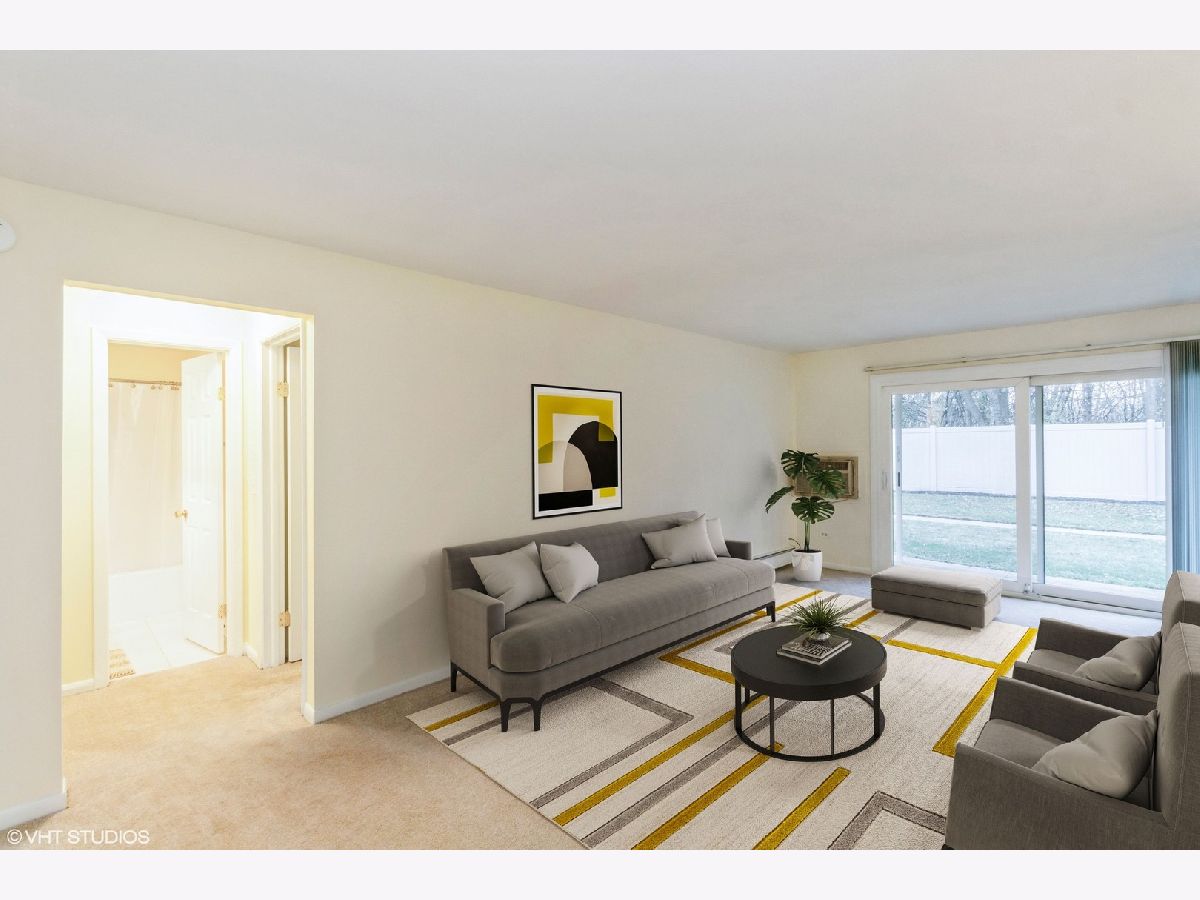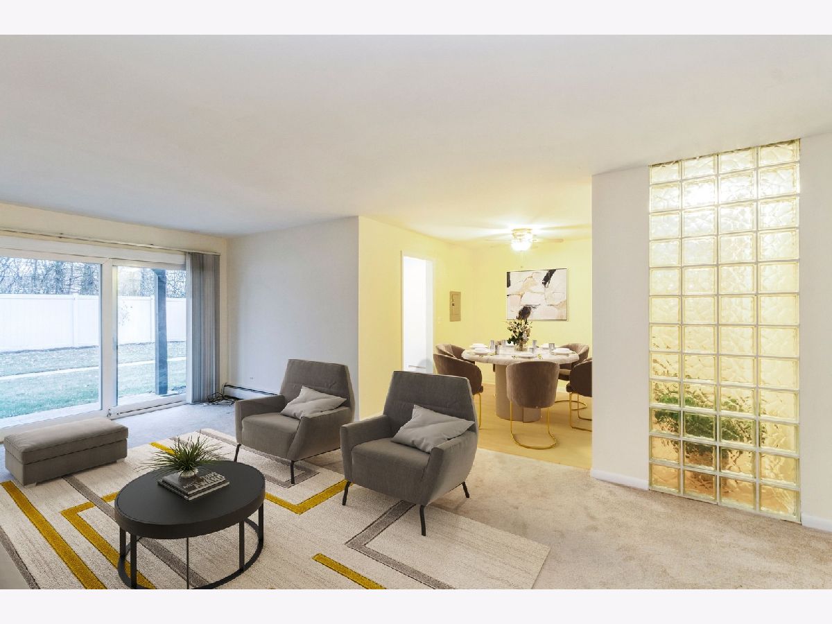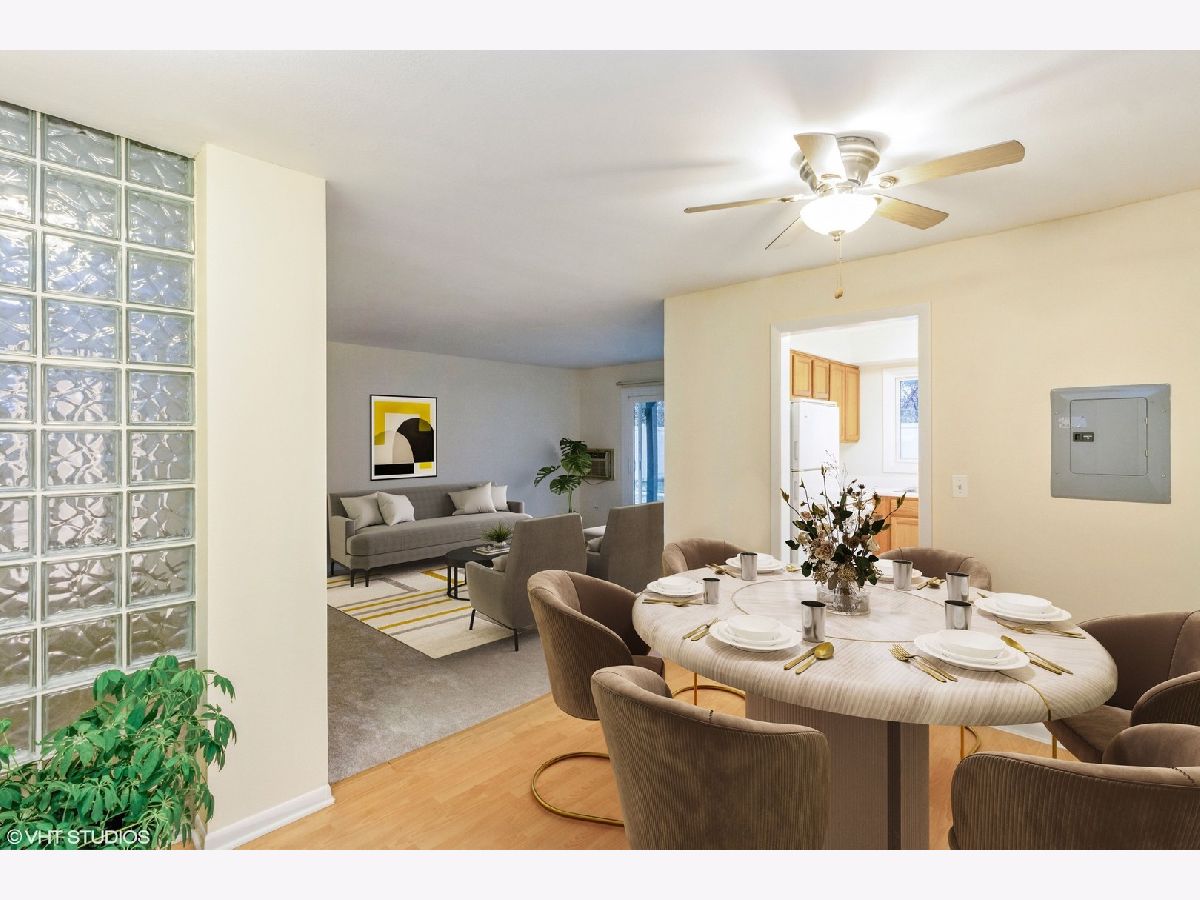 Large FIRST FLOOR condo in desirable Palatine is situated in walking distance to the Metra, restaurants, shops and much more! This clean and well-maintained home is ready for a new owner. Bright, spacious and open floor plan offers a dining area and large living room with an adjacent flex space that makes for a great home office or den. The darling kitchen offers ample counter space and includes space for a small table. The appliances still work just fine because they don't make things like they used to! The home was recently painted and has newer carpets, too. Enjoy the private and expansive view overlooking mature trees as there are no buildings situated behind this offering. Secure building with intercom access and both front and rear entry. There are two outdoor parking spots and plentiful guest parking on the street. Pets are okay and investors are welcome!