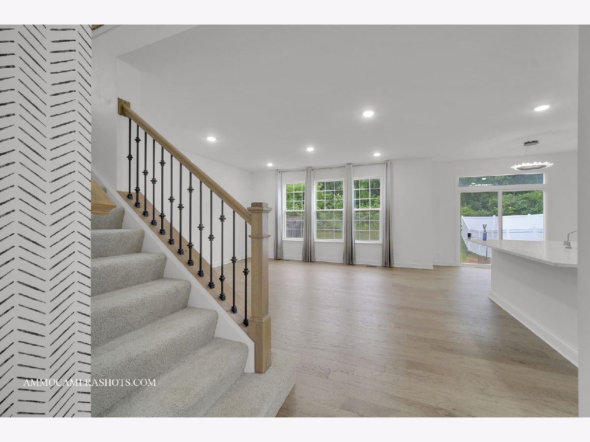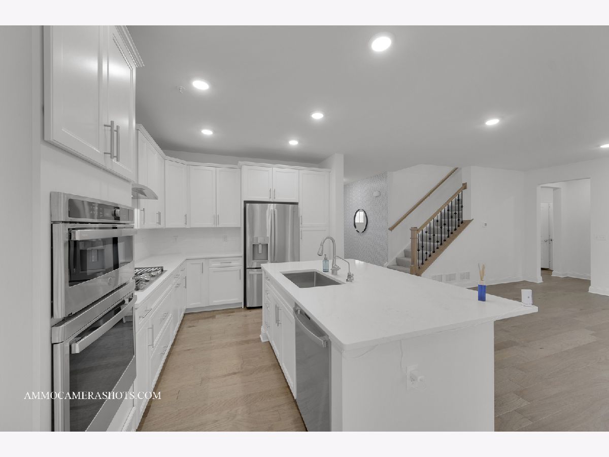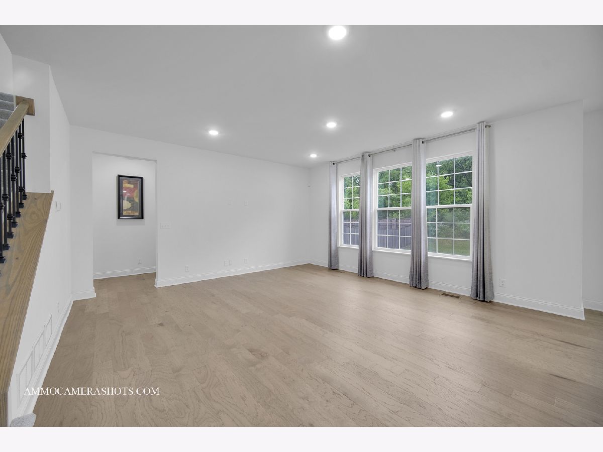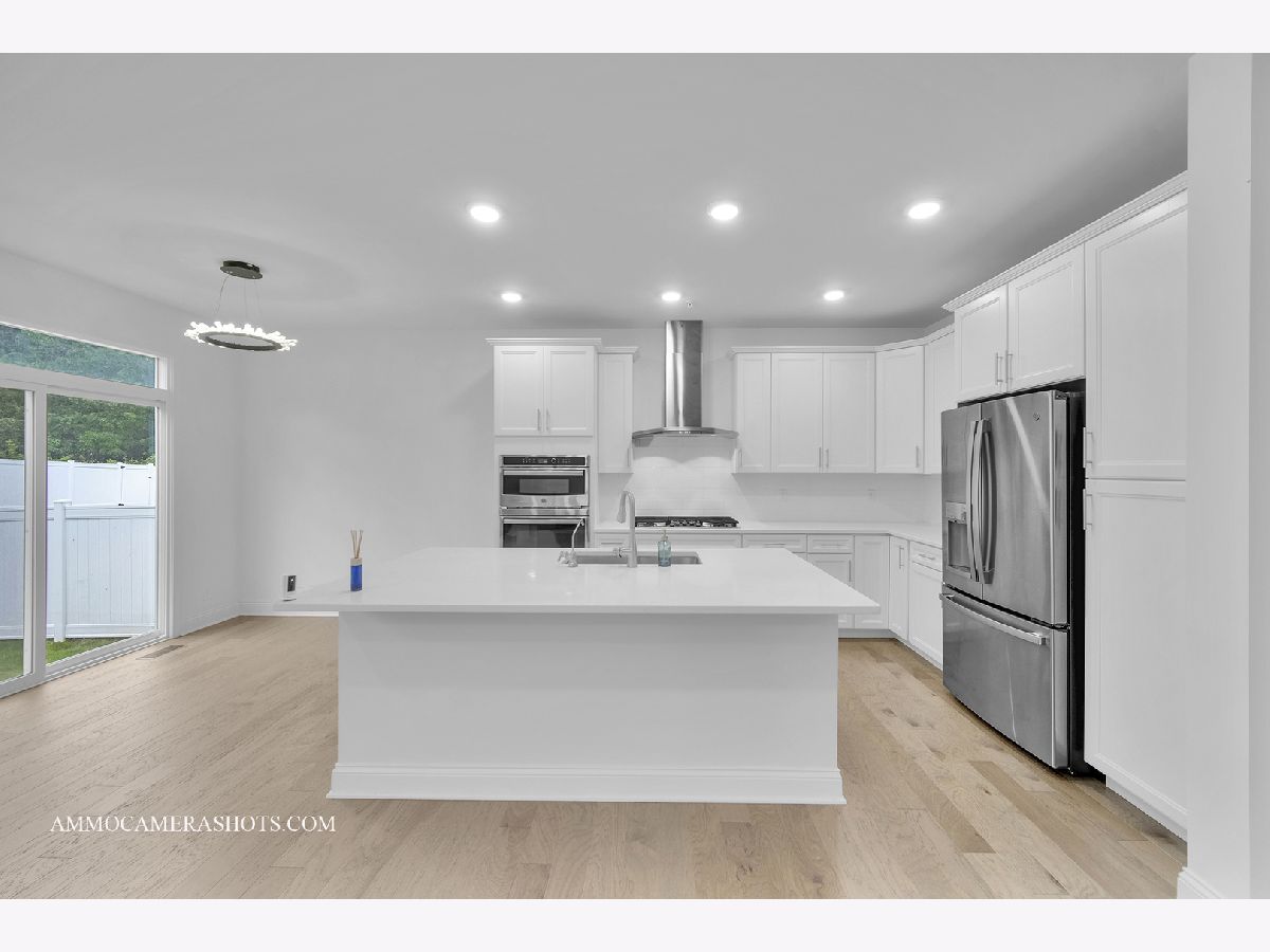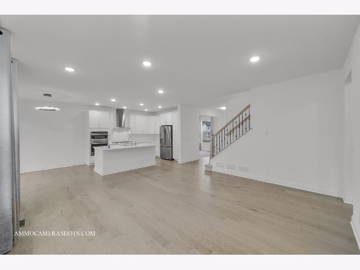 This beautifully designed 4-bedroom plus loft home combines luxury finishes, thoughtful layout, and an unbeatable location-nestled against the scenic Illinois Prairie Path with unobstructed tree-lined views. The expansive open floorplan features a formal dining room perfect for entertaining, a spacious family room, and a gourmet kitchen outfitted with 42" white slow-close cabinetry, quartz countertops, a custom tile backsplash, center island, and premium GE Profile stainless steel appliances including a double oven, cooktop, and vent hood-all included. Gorgeous hardwood floors span the main level, which also offers a bedroom for guests and in-laws and can also be used as a flex room. Upstairs, the luxurious primary suite boasts dual walk-in closets and an upgraded spa-like bath with quartz dual vanities and a walk-in shower. Every bedroom includes its own walk-in closet, and the convenient second-floor laundry adds everyday ease. Enjoy the spacious loft with closet to relax or entertain family and friends & can be easily converted as one additional bedroom. The full basement with rough-in plumbing is ready for your finishing touch. Built with high-quality construction and energy efficiency in mind, this home features a 200 AMP electrical panel, a high efficiency furnace, 13 SEER A/C, and an insulated steel garage door with opener and keypad. Additional features include refrigerator, RO water purifier, whole house water softener, electric vehicle socket, window curtains, and epoxy-coated garage flooring. Truly move-in ready and designed for modern living-don't miss this opportunity to own a home that checks every box!