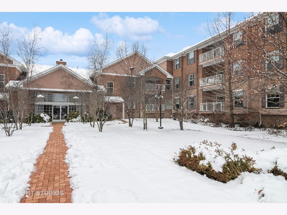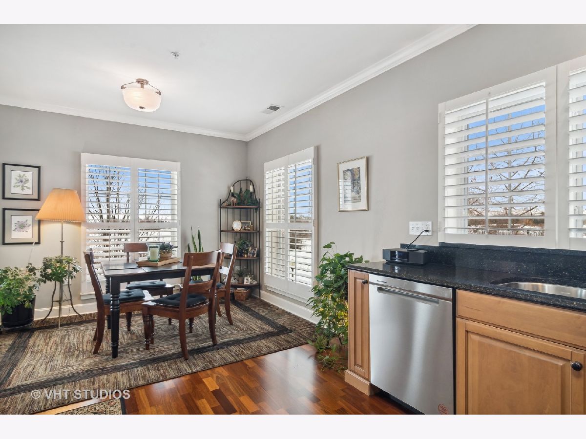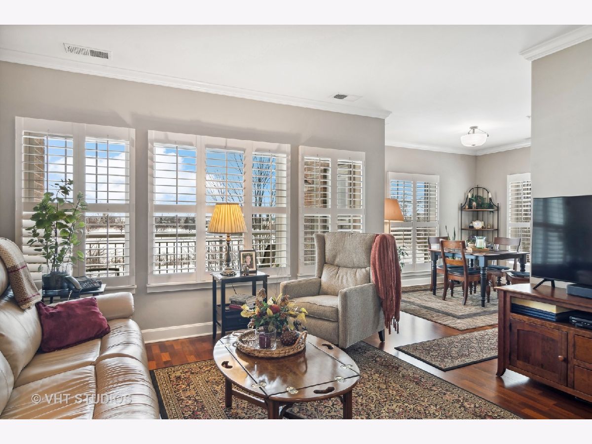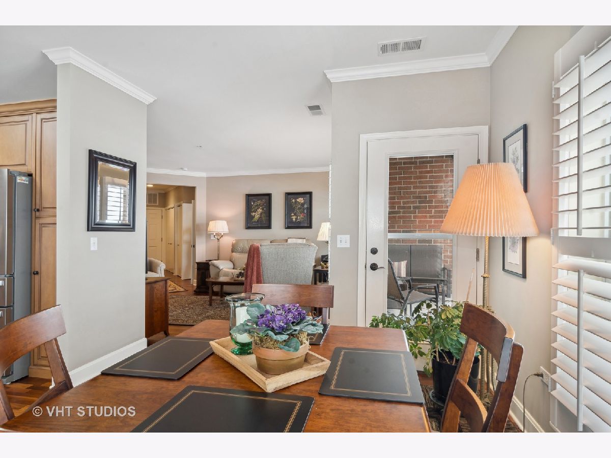 Exquisite end unit condo in highly sought-after THE CROSSINGS OF GENEVA. This 55 and older community boasts immeasurable quality featuring opulent finishes, epitomizing luxury living. This prestigious residence features high-end finishes, impeccable craftsmanship and unparalleled attention to detail. As you enter this beautiful home, you will quickly notice the gleaming Brazilian cherry hardwood floors throughout the living room, dining room and kitchen areas. This living room is truly an inviting space to entertain or relax. Enjoy the balcony patio just outside the eating area. This oversized space is a private and tranquil space to enjoy your morning coffee or relax with a great book. The large, open kitchen has custom maple soft close cabinets, under cabinet lighting, a brand new refrigerator, microwave and dishwasher and all stainless steel appliances. Spacious primary suite with ceiling fan, walk-in closet, built-in shelving unit and gorgeous updated full bath. Convenient laundry room with utility sink, located just off the front door. Second bedroom and en-suite bath offer a great space for an office, exercise room, etc. Plantation shutters in each room. There is a storage locker down the hall from the unit. Enjoy secure parking in the heated garage with an additional storage locker in front of the parking space. Elevate your lifestyle in this refined haven of sophistication. Minutes from shopping, dining, hospital and the METRA. Don't miss this amazing property!
