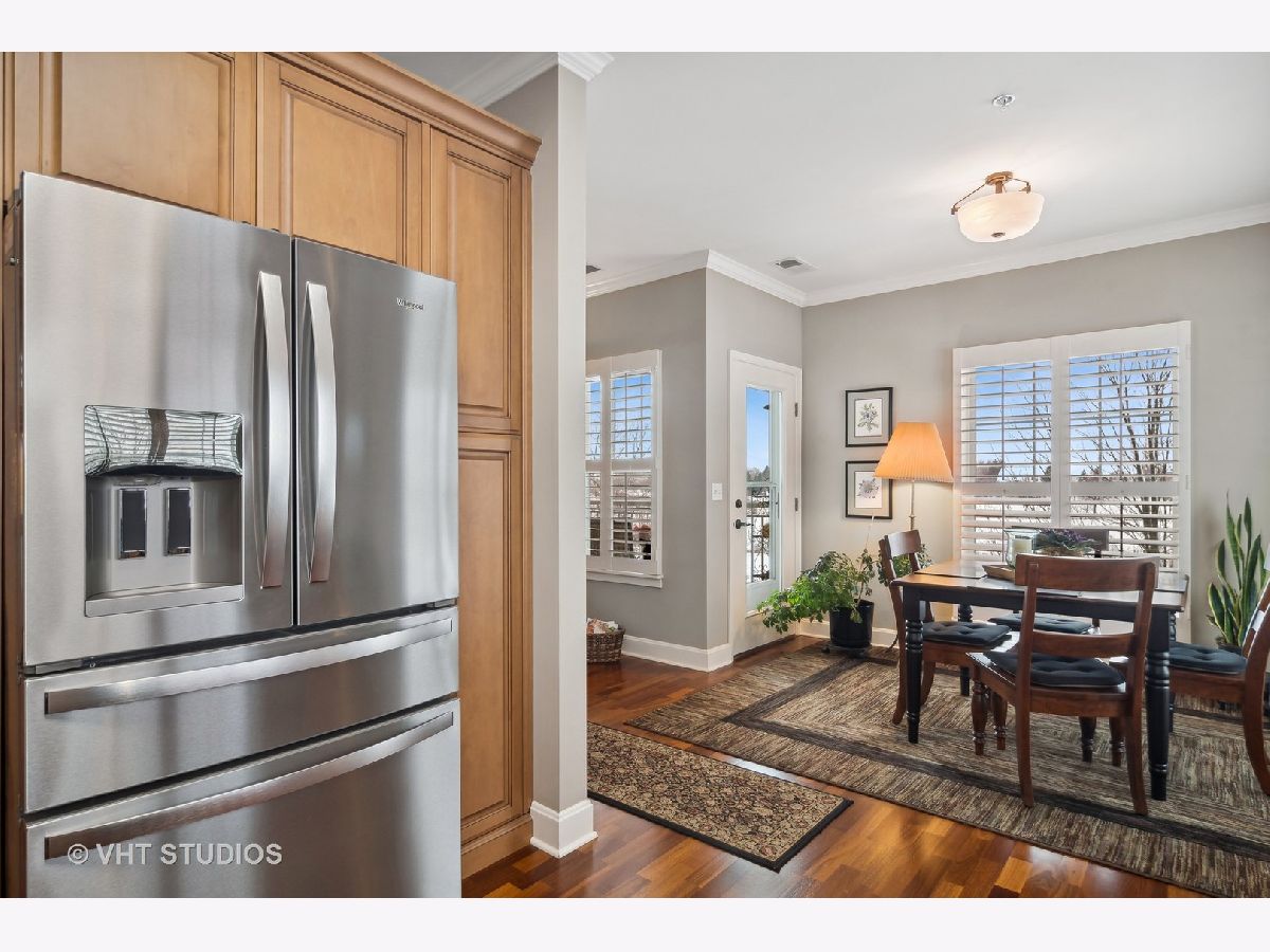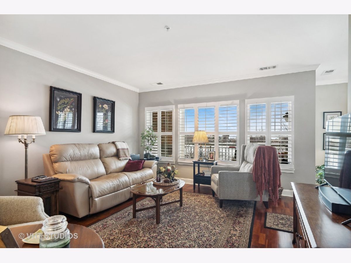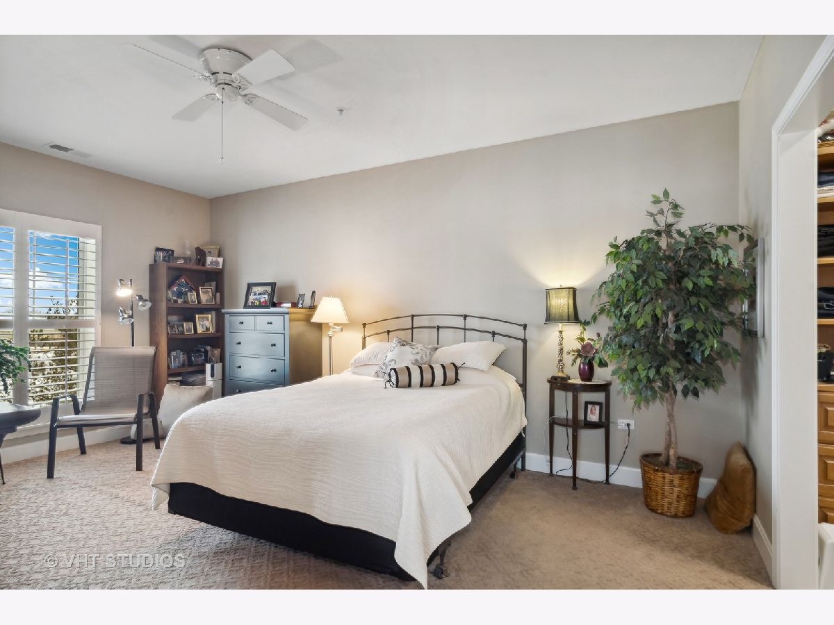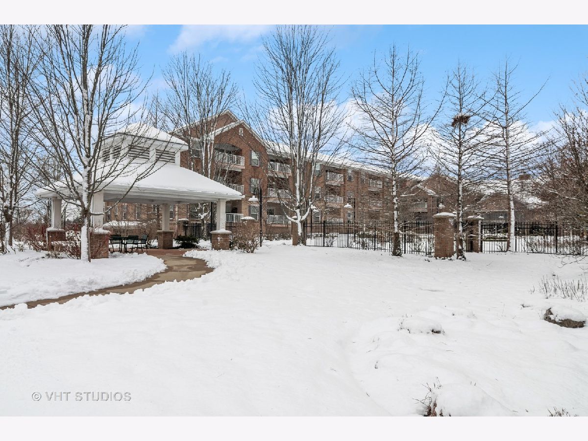 Exquisite end unit condo in highly sought-after THE CROSSINGS OF GENEVA. This 55 and older community boasts immeasurable quality featuring opulent finishes, epitomizing luxury living. This prestigious residence features high-end finishes, impeccable craftsmanship and unparalleled attention to detail. As you enter this beautiful home, you will quickly notice the gleaming Brazilian cherry hardwood floors throughout the living room, dining room and kitchen areas. This living room is truly an inviting space to entertain or relax. Enjoy the balcony patio just outside the eating area. This oversized space is a private and tranquil space to enjoy your morning coffee or relax with a great book. The large, open kitchen has custom maple soft close cabinets, under cabinet lighting, a brand new refrigerator, microwave and dishwasher and all stainless steel appliances. Spacious primary suite with ceiling fan, walk-in closet, built-in shelving unit and gorgeous updated full bath. Convenient laundry room with utility sink, located just off the front door. Second bedroom and en-suite bath offer a great space for an office, exercise room, etc. Plantation shutters in each room. There is a storage locker down the hall from the unit. Enjoy secure parking in the heated garage with an additional storage locker in front of the parking space. Elevate your lifestyle in this refined haven of sophistication. Minutes from shopping, dining, hospital and the METRA. Don't miss this amazing property!