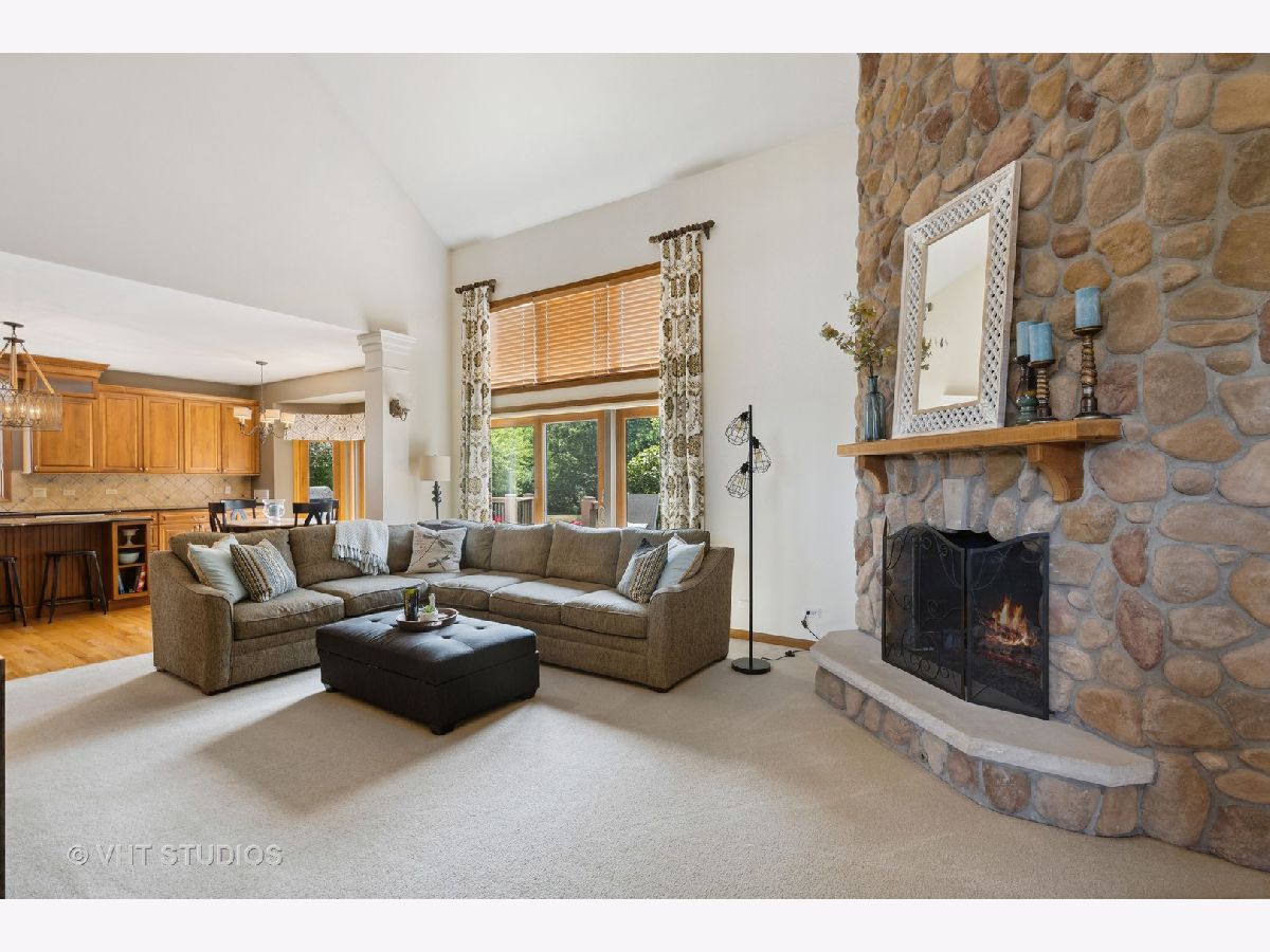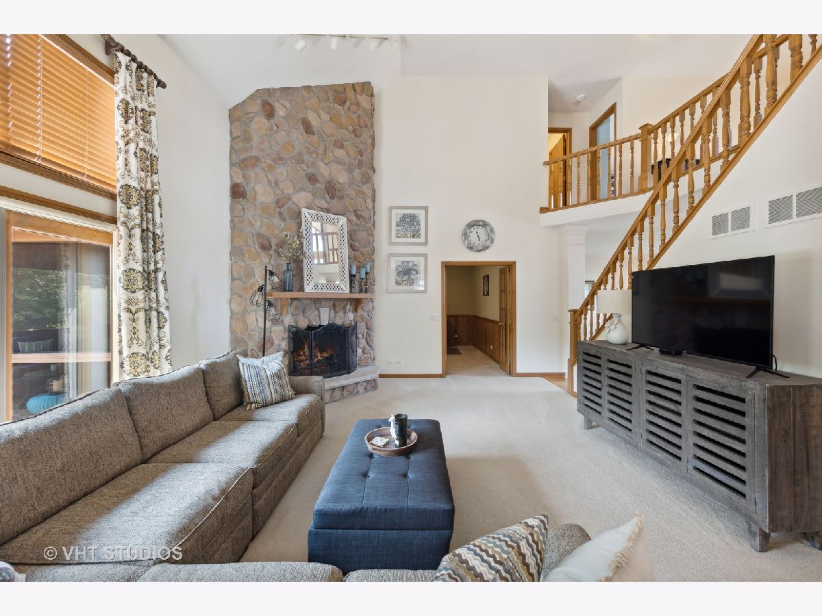 A must-see in person, as pictures just don't do this home justice! Situated in a friendly and quiet neighborhood with easy access to shopping, schools, and entertainment, sits your new home, proudly displaying its impressive curb appeal. Greet your guests in your foyer, where vaulted ceilings create that airy and expansive feeling of magnificence. The high ceilings really set this home apart, giving it unlimited potential! A soaring stone fireplace in the family room is immediately visible and inviting, reflecting the home's grand appeal and enhancing the beautiful space around it. (Imagine what adding wood floors to this room would do!) The traditional living room and dining room at the front are complimented by large windows facing the front yard. Open to the Family Room is your kitchen, with large island, double oven, newer appliances, and the eat-in area next to large glass doors leading to the deck. Your serene summers will likely be spent on this deck overlooking the huge expanse of green grass in the back yard, or in the screened-in porch where string lights will enhance that perfect evening atmosphere. The main floor is complete with a powder room and the laundry room, as well as an office. Upstairs, the large master bedroom is graced with a vaulted ceiling and an updated bath with luxury shower. You will also love the huge walk-in closet!! Three more bedrooms and a bathroom complete this floor. The basement provides a great rec area with quality entertainment made available through the included movie projector, screen, and surround sound! There are two more flex rooms and bathroom here as well! A home that has so much potential for added value, yet is so comfortable and beautiful just as it is, is ready and waiting for you!