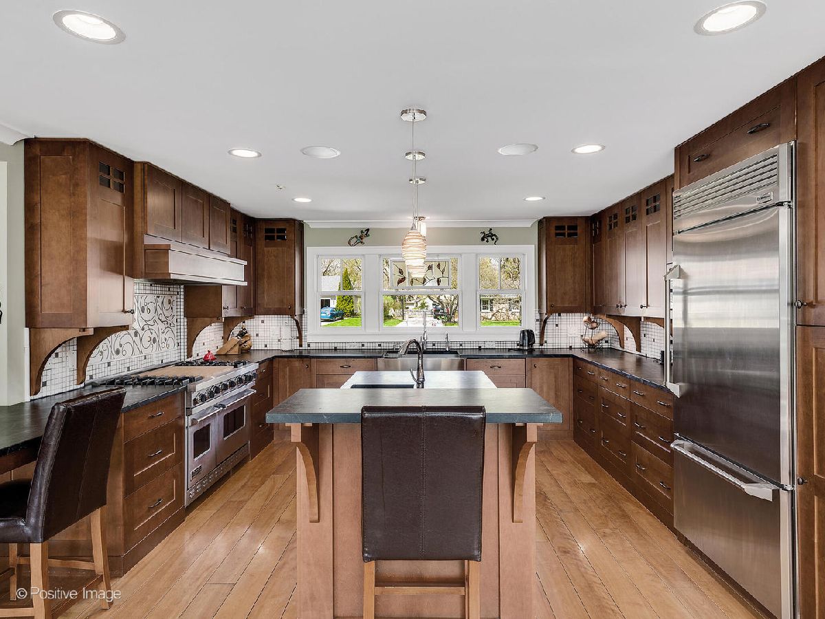 One of a kind home in desirable Arrowhead. Completely renovated and added onto in 2009-everything was touched- inside and out! Owners built the home of their dreams. Over 4300 square feet of living space. Hardwood floors on both 1st and 2nd levels. 4 bedrooms up.5th bedroom on the first floor with a full bath, connects to front den - could be used as an in law suite. Wide open oversized Dining room is open to kitchen and LR/FR. Gourmet kitchen has counterspace for everything, enormous center island, custom maple, prairie style cabinets with practical and beautiful soapstone counters. Marble backsplash, high end appliances, large farm sink plus a vegetable sink. Inviting living room/family room with coffered ceilings, beautiful stone fireplace with mantle and raised hearth. Built ins for media and storage. Sliding doors open to pergola covered patio overlooking mature landscaped lot with privacy fence. Mud room with cubbies and another office space. 2nd floor has not only a Master suite with walk in closet and master bath - but 2 more bedrooms with ensuite baths. Total of 4 bathrooms on the 2nd floor - no need to share. Full finished basement - includes a cozy rec room, exercise room with steam shower, pool/game room, gallery long hall with room for more storage and another work space. So many breakout spaces - where was this last year! Indoor outdoor sound system .A great location -Only a block to the grade school, blocks to the high school and a short bus ride to the middle school. Close to town, train, shopping and recreation The attention to detail is everywhere you look - you must see to really appreciate. Truly a unique home that has been enjoyed and loved - looking for its new forever family.