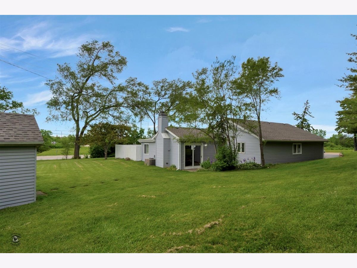 Fabulous ranch with brand new roof, freshly painted inside and out. Four bedrooms and two full baths on almost three fourths of an acre! Spacious living room with new hardwood laminate floors. Separate dining room with sliding door flows out to the private patio and fenced in portion of the backyard. Kitchen boasts brand new white shaker cabinets, countertops and stainless steel appliances with garden box window. Master bedroom features double closets and new hardwood laminate flooring. Master bath has new vanity and countertop. Bedrooms two and three also have new hardwood laminate floors. Fourth bedroom could also be used as a great sunfilled office. Awesome family room is great for entertaining with dry bar and gas fireplace, with new gas logs for those chilly evenings and another sliding door that leads to a more intimate patio. Air ducts have been professionally cleaned. Pull down attic stairs with flooring for additional storage. Storage shed in the back of the yard. Dual zoned furnace and air conditioning. Water heater 2019. Two and half car garage with a very long driveway for guest parking. School bus service for Elementary and Junior High Schools. Short distance to I-355, restaurants and shopping.