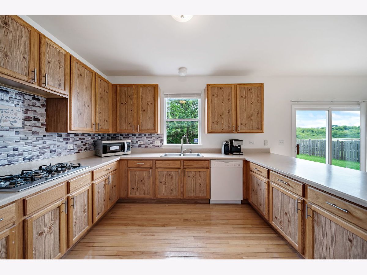 In the heart of Algonquin Lakes subdivision, where Nature meets Home, sits a 4-bed, 3 1/2 bath retreat Summerhill model single-family home. Nestled by a tranquil lake, offering a picturesque backdrop that will steal your heart. An open concept living space with high ceilings, large windows and plenty of natural light. Step inside and be greeted by a stunning 2-story foyer, setting the tone for elegance throughout. The kitchen is a true delight, featuring beautiful 42" cabinets, sleek Corian countertops, a convenient double oven, and inviting hardwood floors. Enjoy meals at the breakfast bar or in the cozy eat-in area, which leads to a charming patio where you can take in the peaceful lake views. Relax in the spacious family room, complete with a cozy gas fireplace and more of those gorgeous hardwood floors. A versatile room on the first floor is perfect for an office or playroom, providing flexibility to suit your needs. Upstairs, the master suite is a dream come true. Tray ceilings add a touch of luxury, while the sitting room offers a quiet escape. The master bath is a spa-like oasis, featuring a soaking tub, a separate shower, and a double vanity. The fully finished basement is a haven of entertainment, with a large rec room, a handy wet bar, a game room, and even a bonus room that could be an office or storage space. Outside, the fenced yard offers privacy and space to play. Recent upgrades include a newer roof replaced in 2018, ensuring peace of mind for years to come. This home is a true gem in an unbeatable location, and opportunities like this don't last long. Don't miss out on making this wonderful property your own!