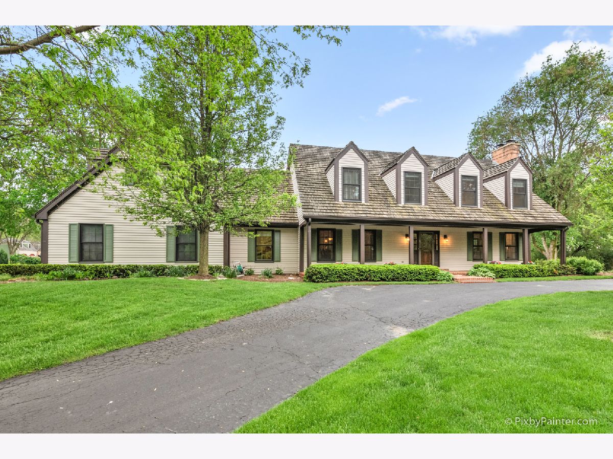 Beautiful Cape Cod style home with circular drive on gorgeous 1 acre site surrounded by mature trees in desirable Country Club Estates. 4 Bedrooms plus first floor office. Huge bonus room with private bath (could be 5th bedroom suite). Gorgeous newer wide plank hardwood flooring. Remodeled island kitchen with high end appliances including commercial grade 6 burner Wolf stove w/griddle. Master suite with his & her walk-in closets and remodeled bath 2016 with double sinks and separate shower. Full basement includes really cool art deco/retro style bar, full bath and tons of storage. Front and back staircase. Spacious room sizes throughout. Large 1st Floor laundry room. 3C side load Garage. Enjoy relaxing on the huge front porch or expansive rear deck overlooking private backyard. Newer wooden windows throughout. Zoned HVAC 2010. Award winning district #220 including blue ribbon Elementary. Voluntary membership to Tower Lakes amenities include: lake w/life gaurded beach & tennis courts